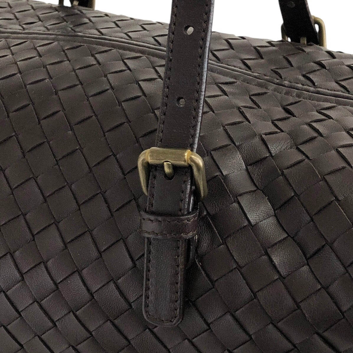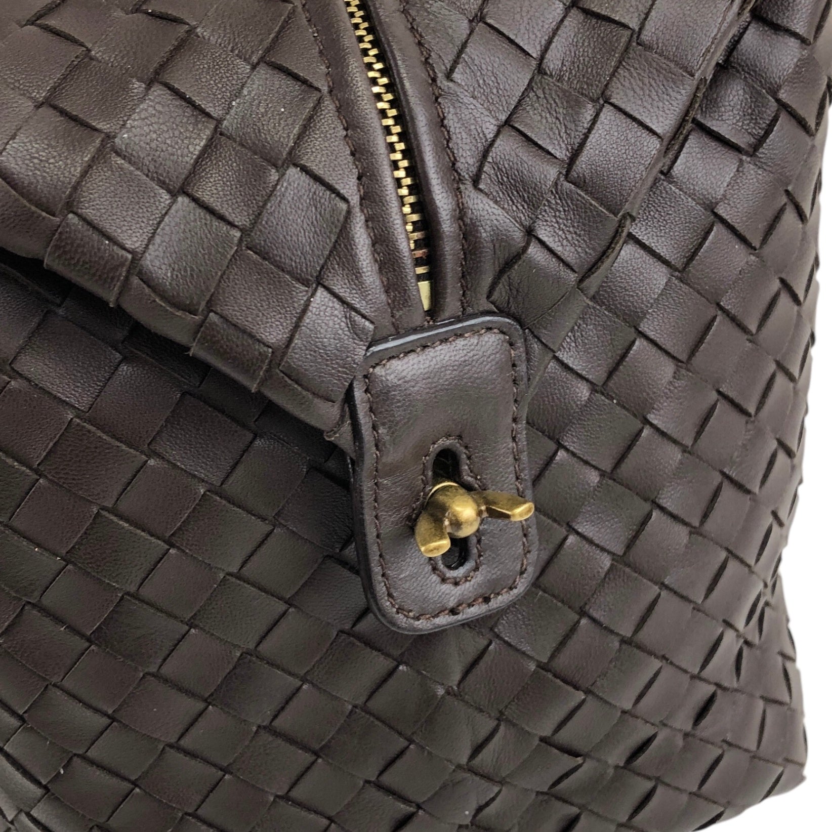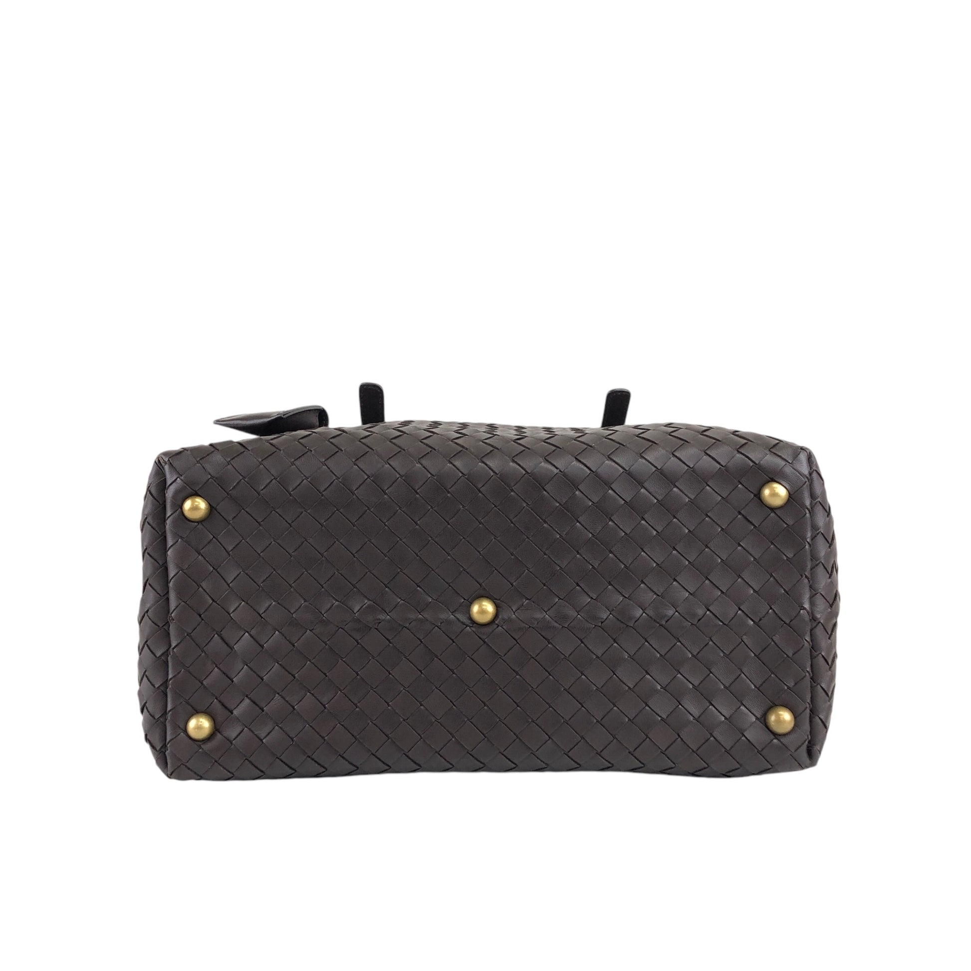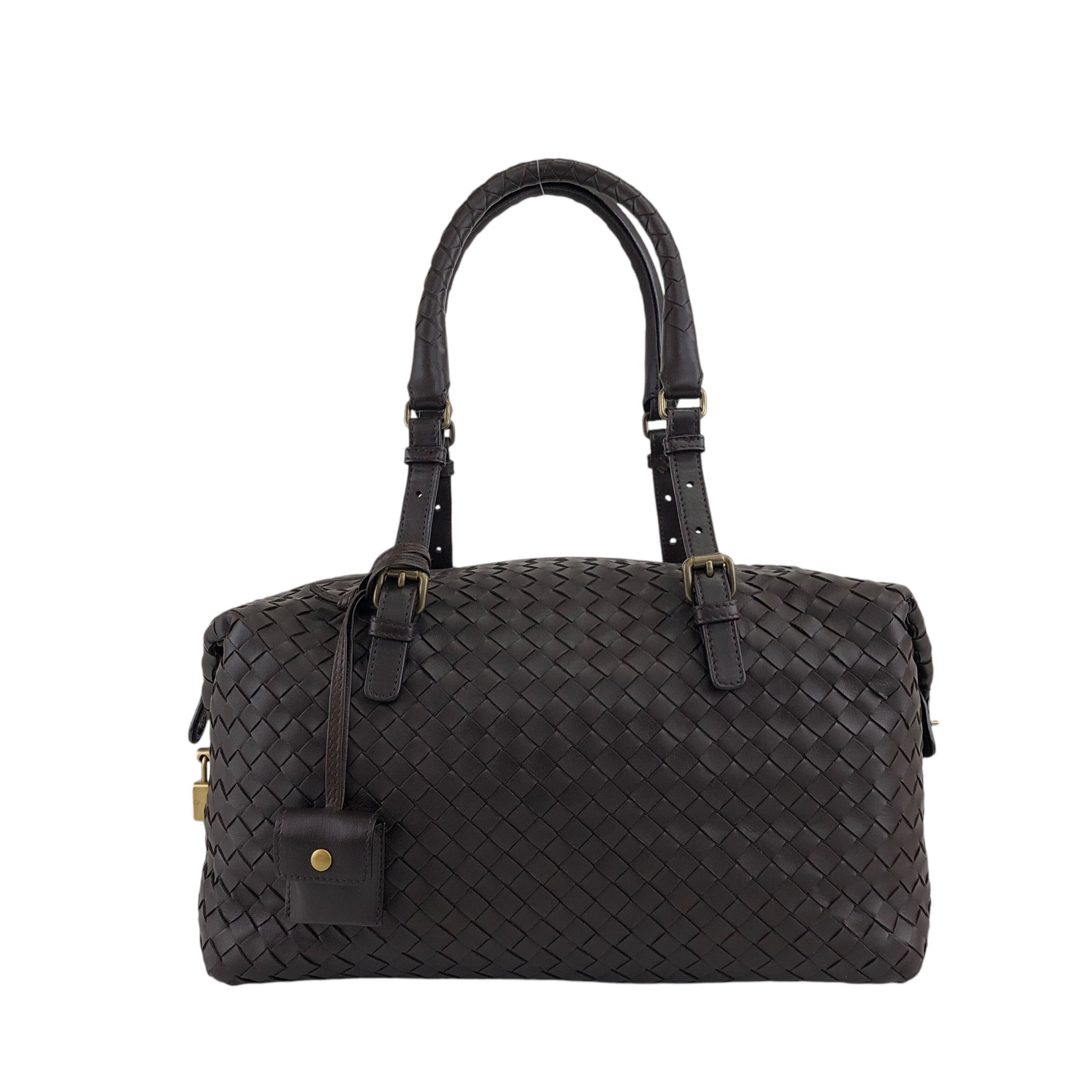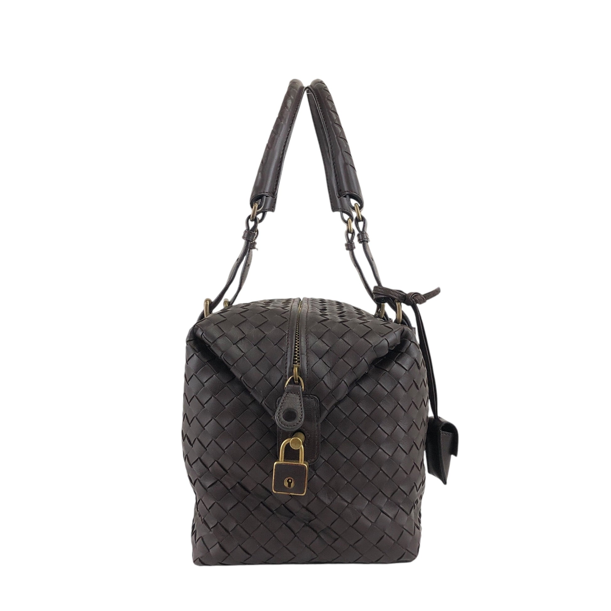Bottega Veneta Intrecciato Padlock Boston bag Handbag Brown Vintage 2knttm