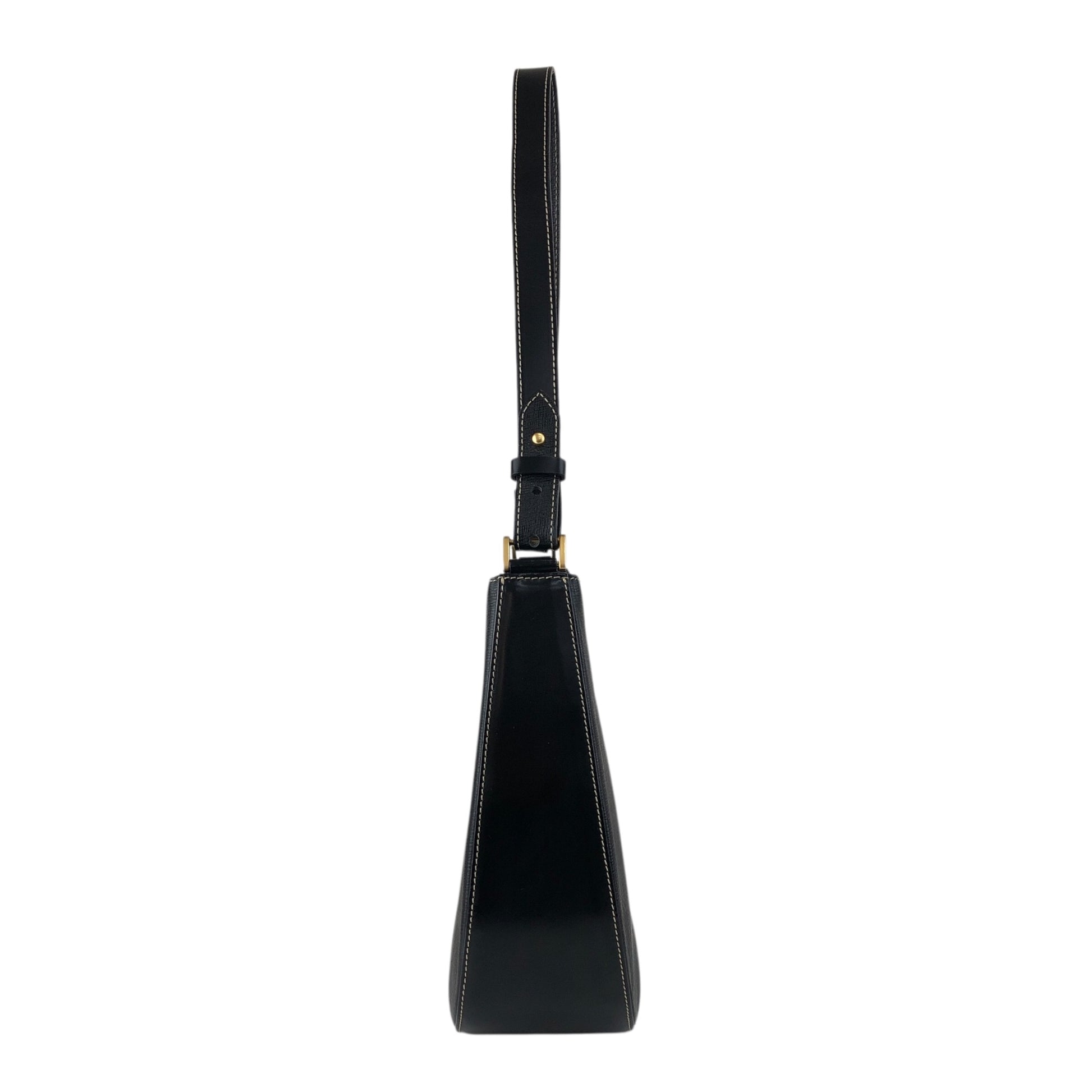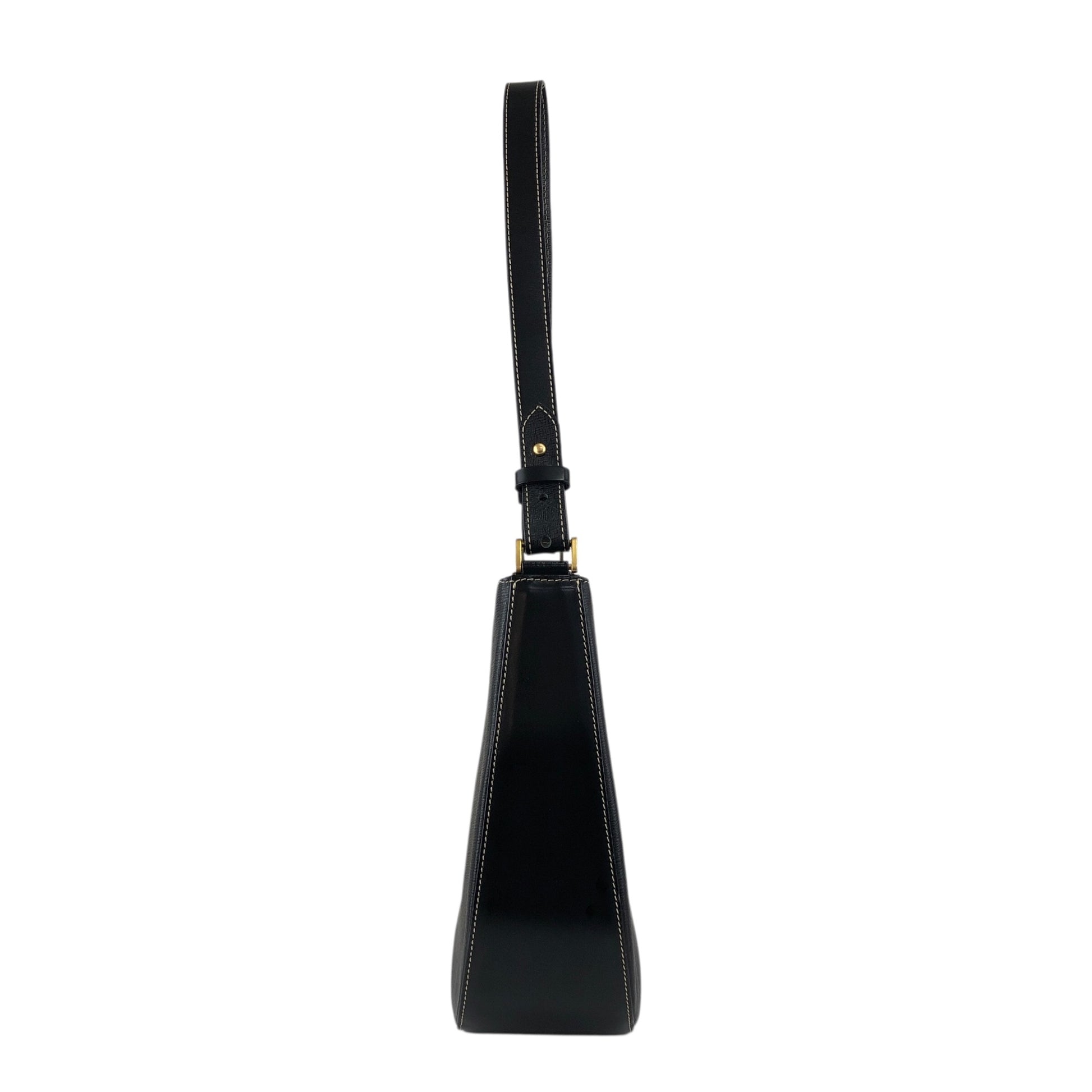 BURBERRY Logo Shoulder bag Hobobag Black Vintage xfbinh