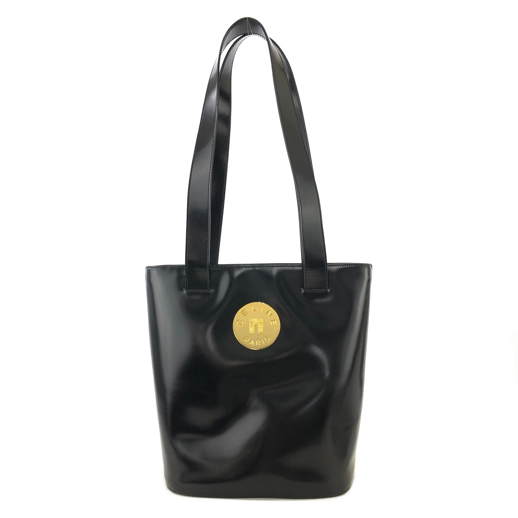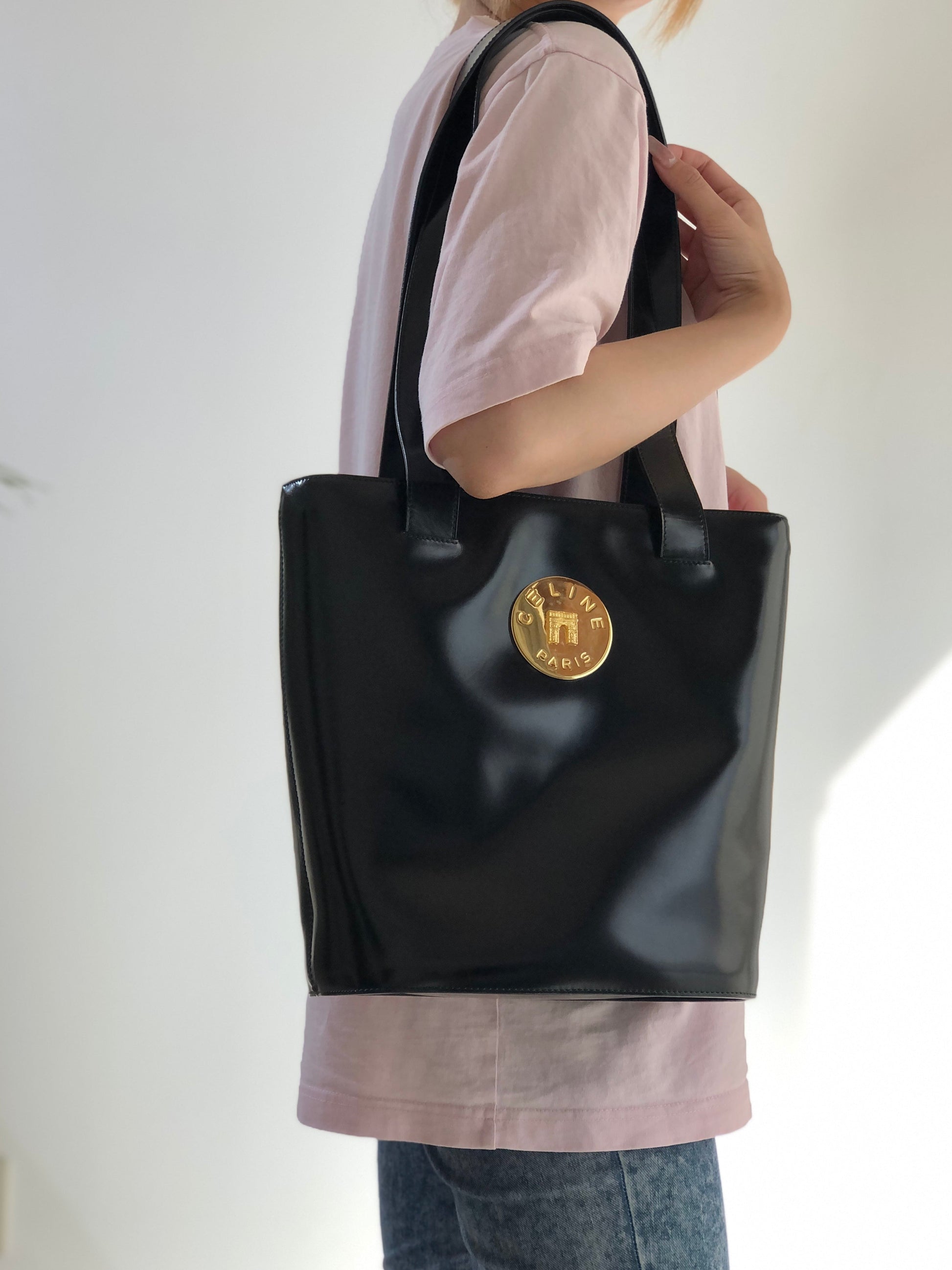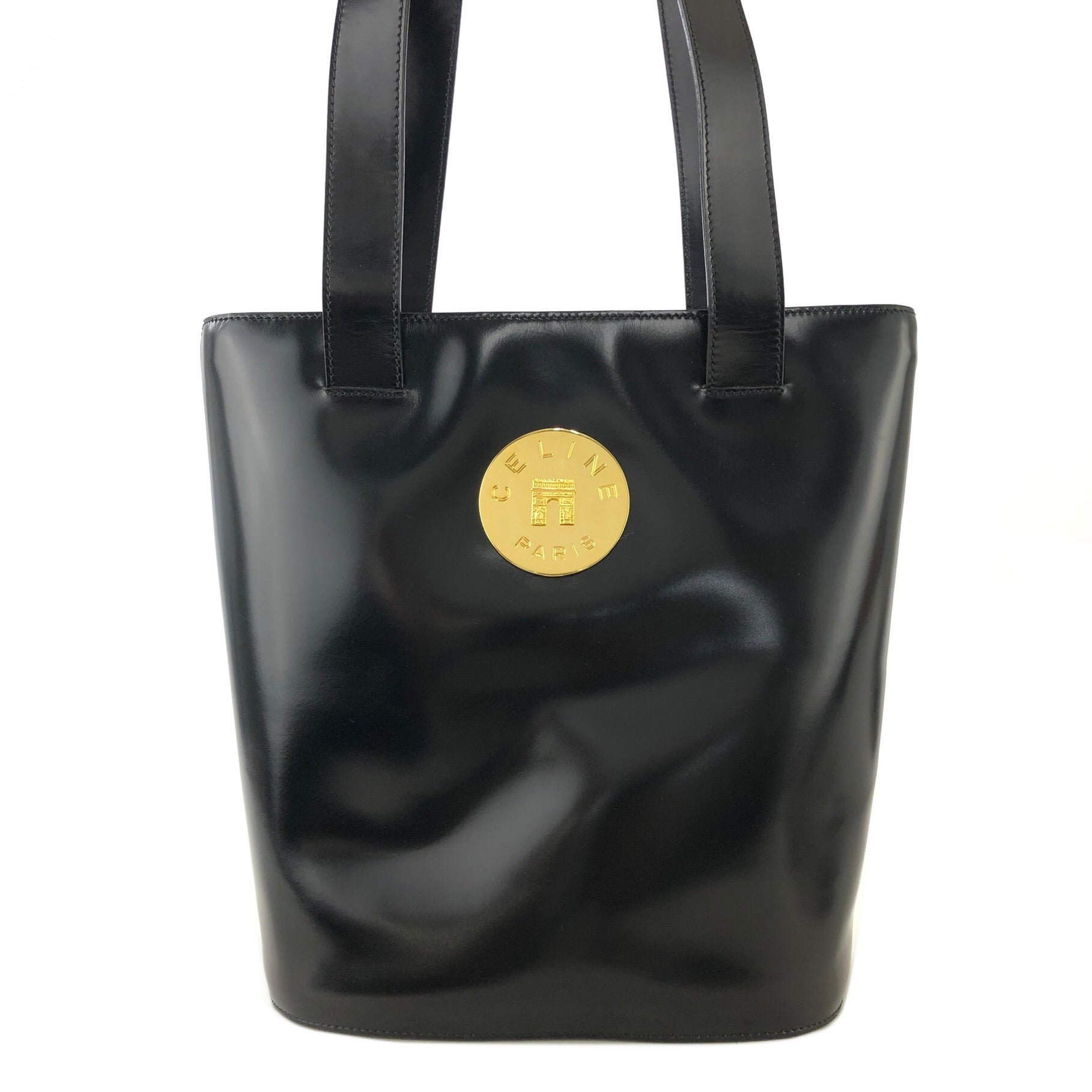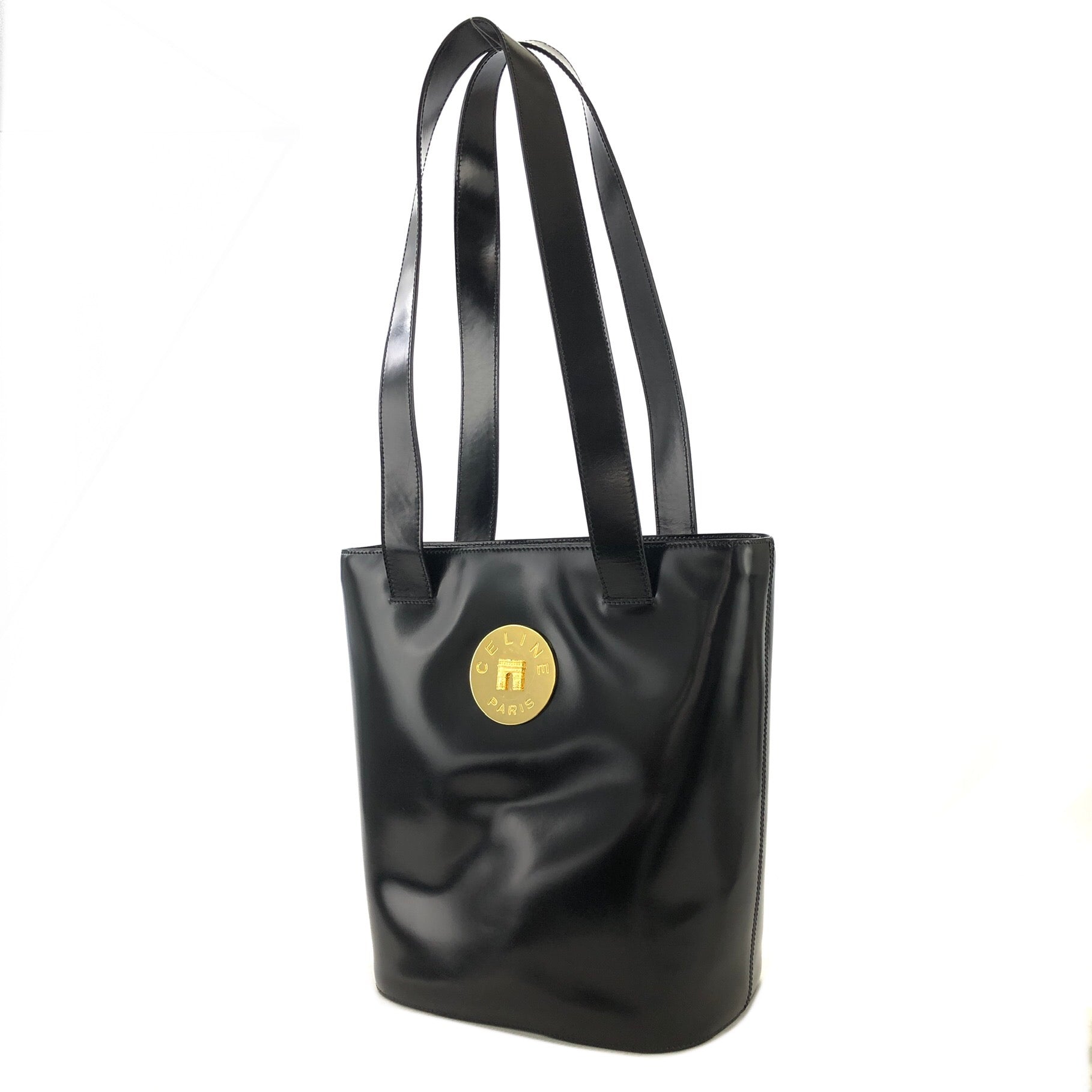 CELINE Arc de Triomphe Plate Leather Tote Bag Black Gold Vintage Old Celine xr32dw