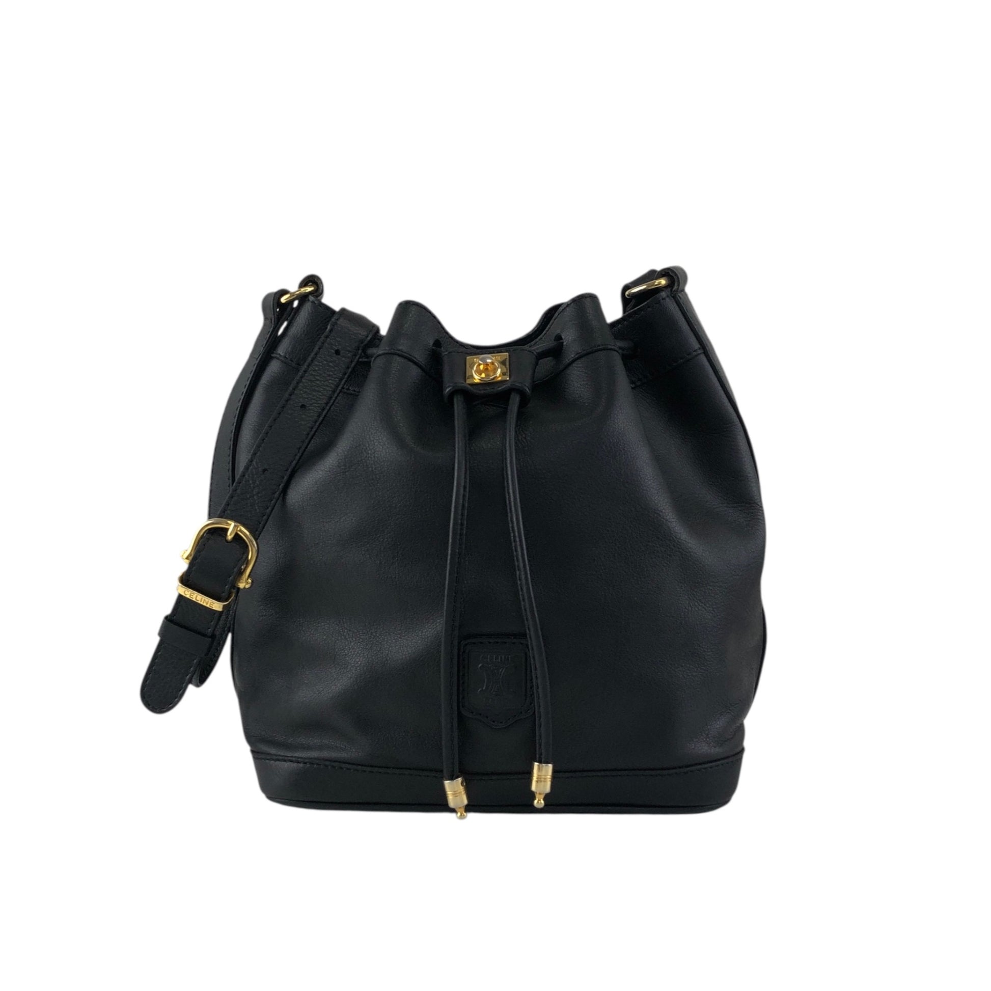 CELINE Blason Gancini Drawstring Shoulder bag Black Vintage 3zj4mf