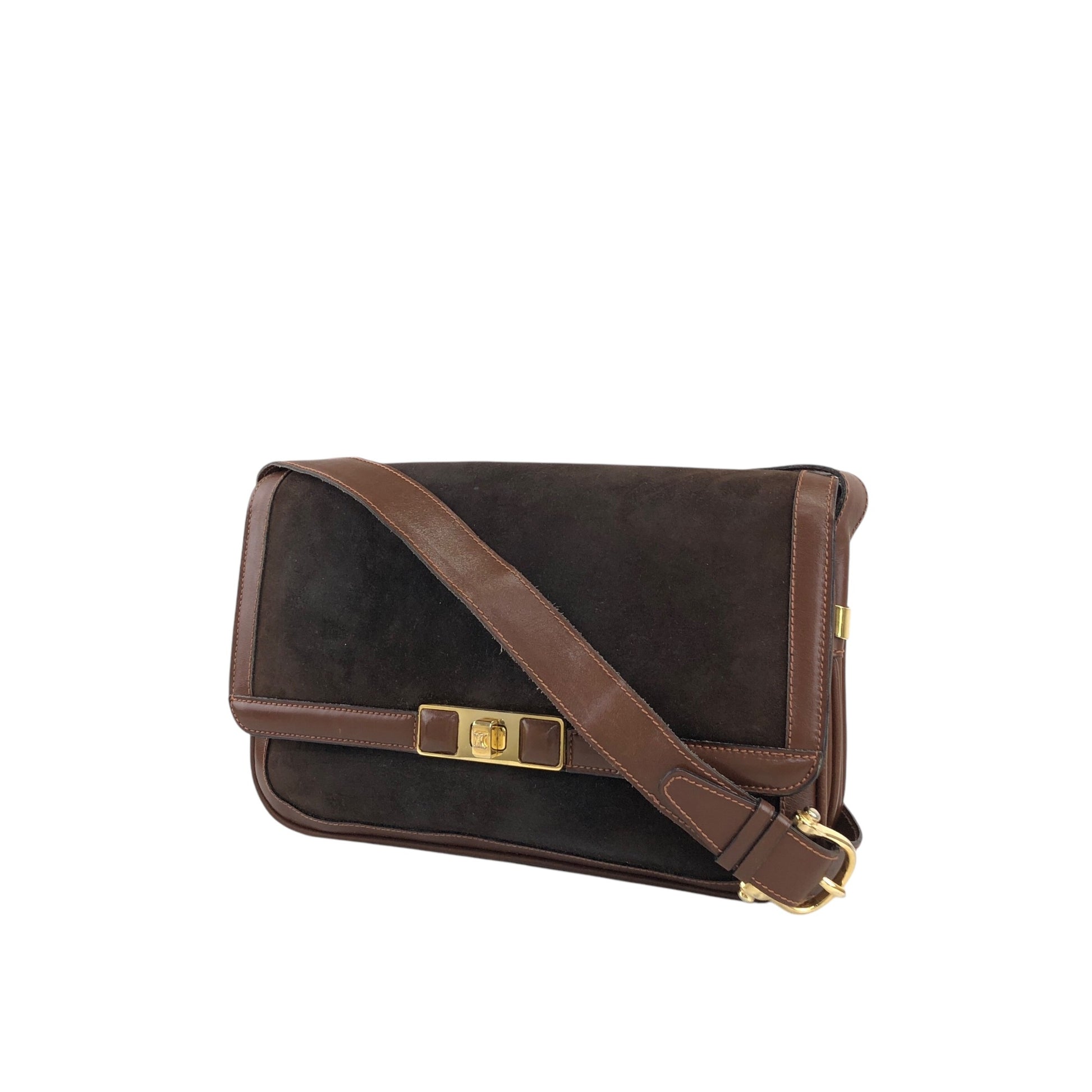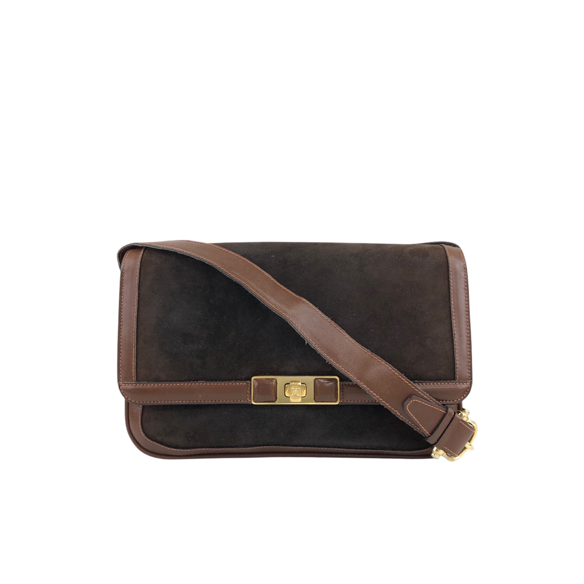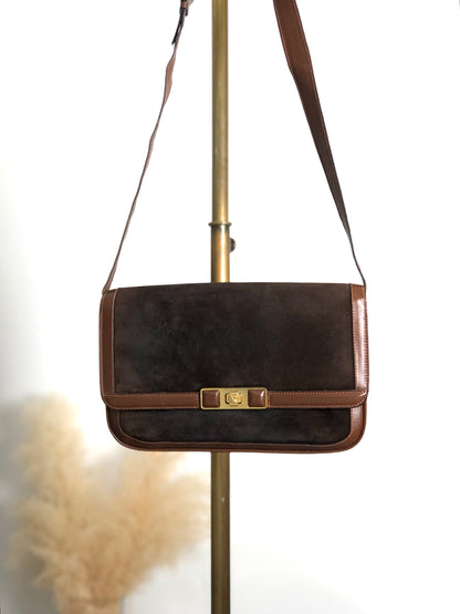 CELINE Blason Turn Lock Shoulder bag Brown Vintage j6d53x