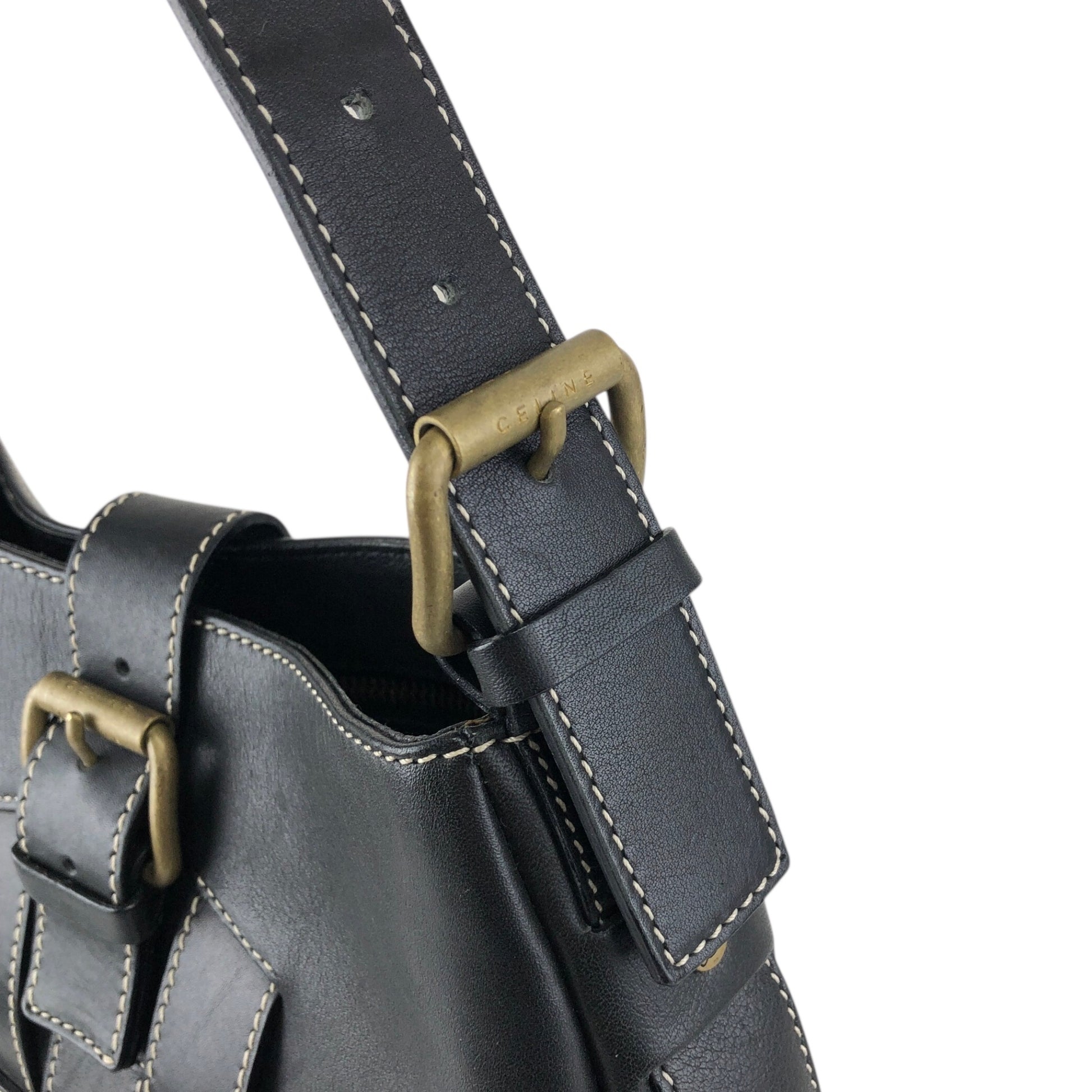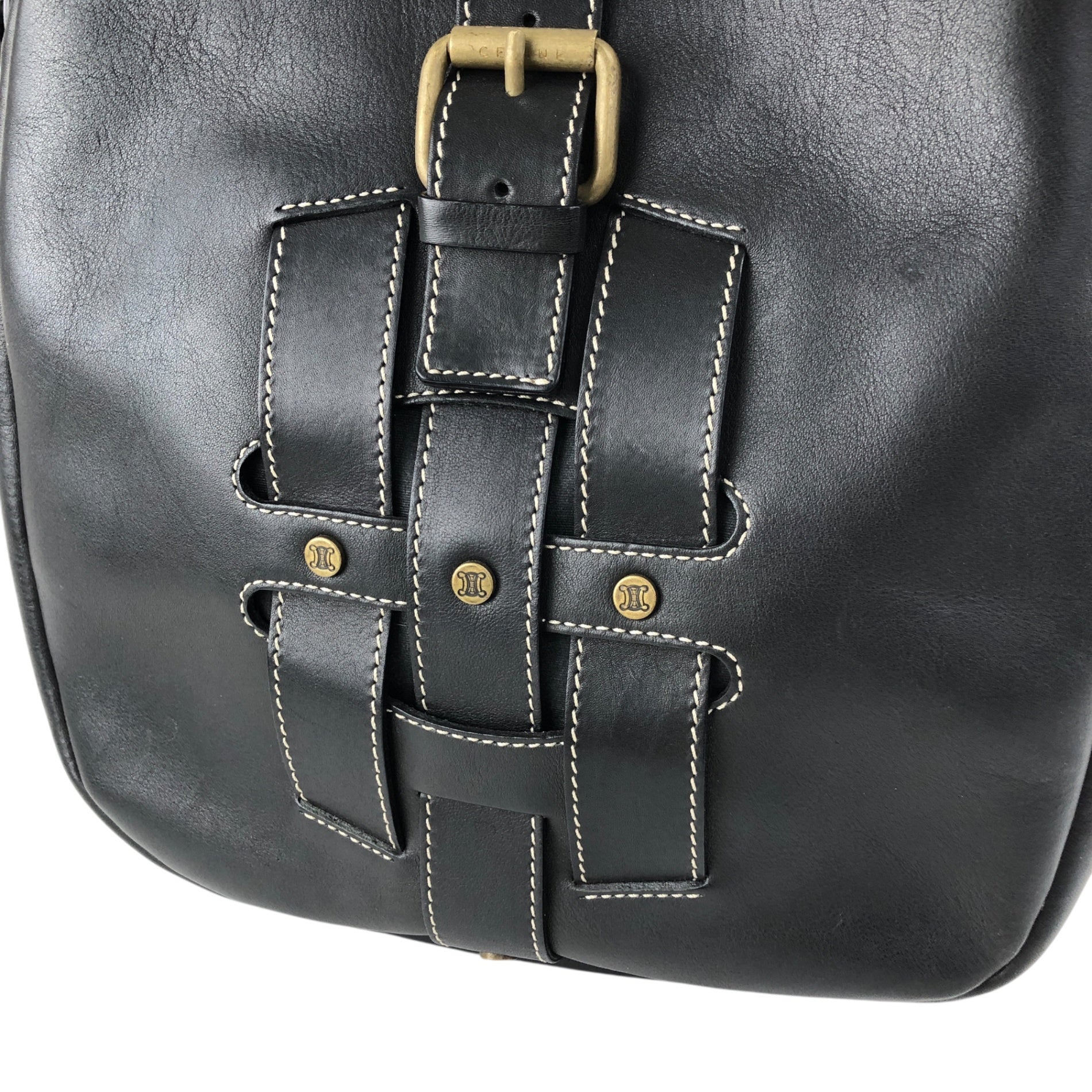 CELINE Front Buckle Shoulder bag Black Vintage f5ds3s