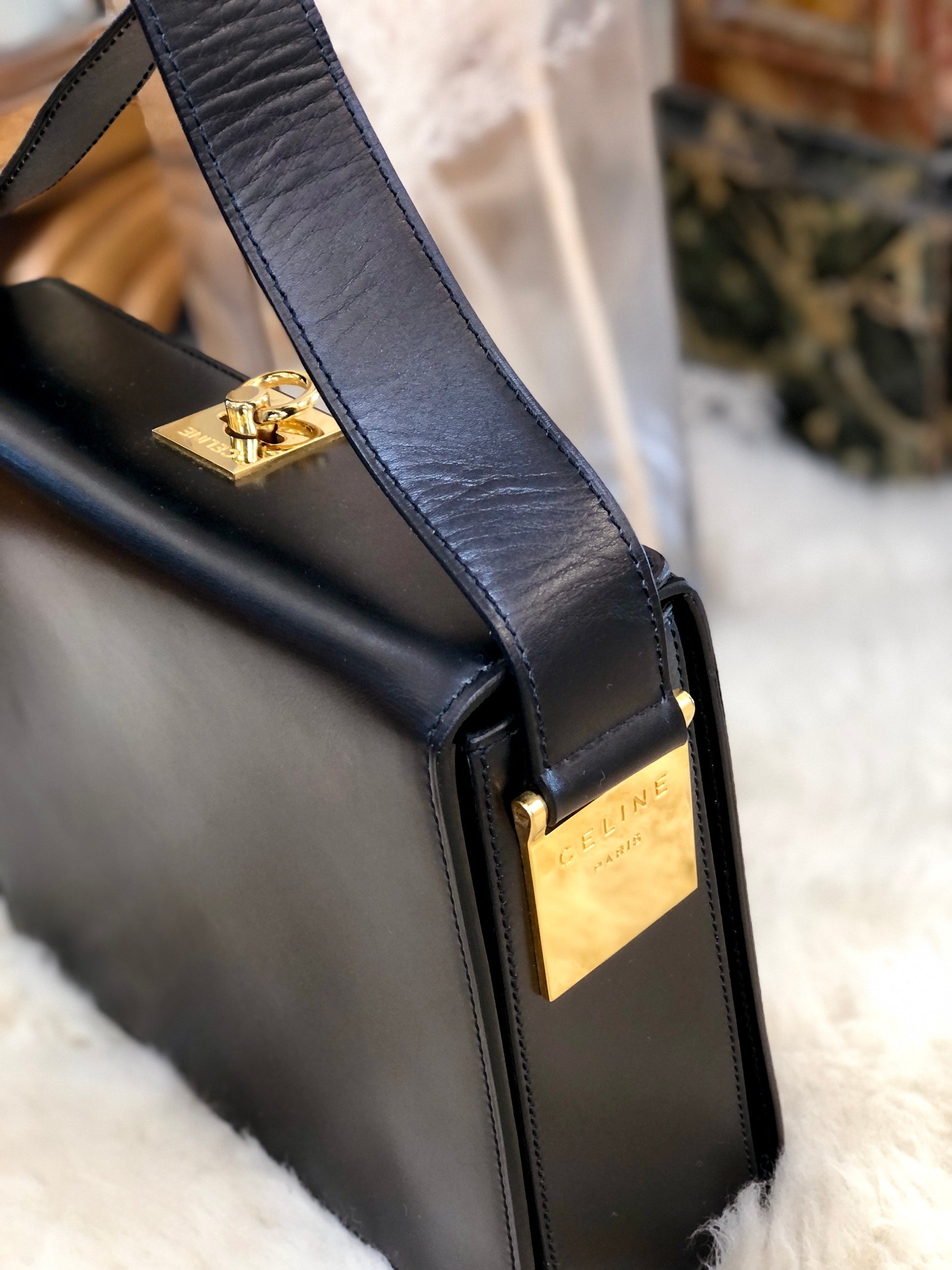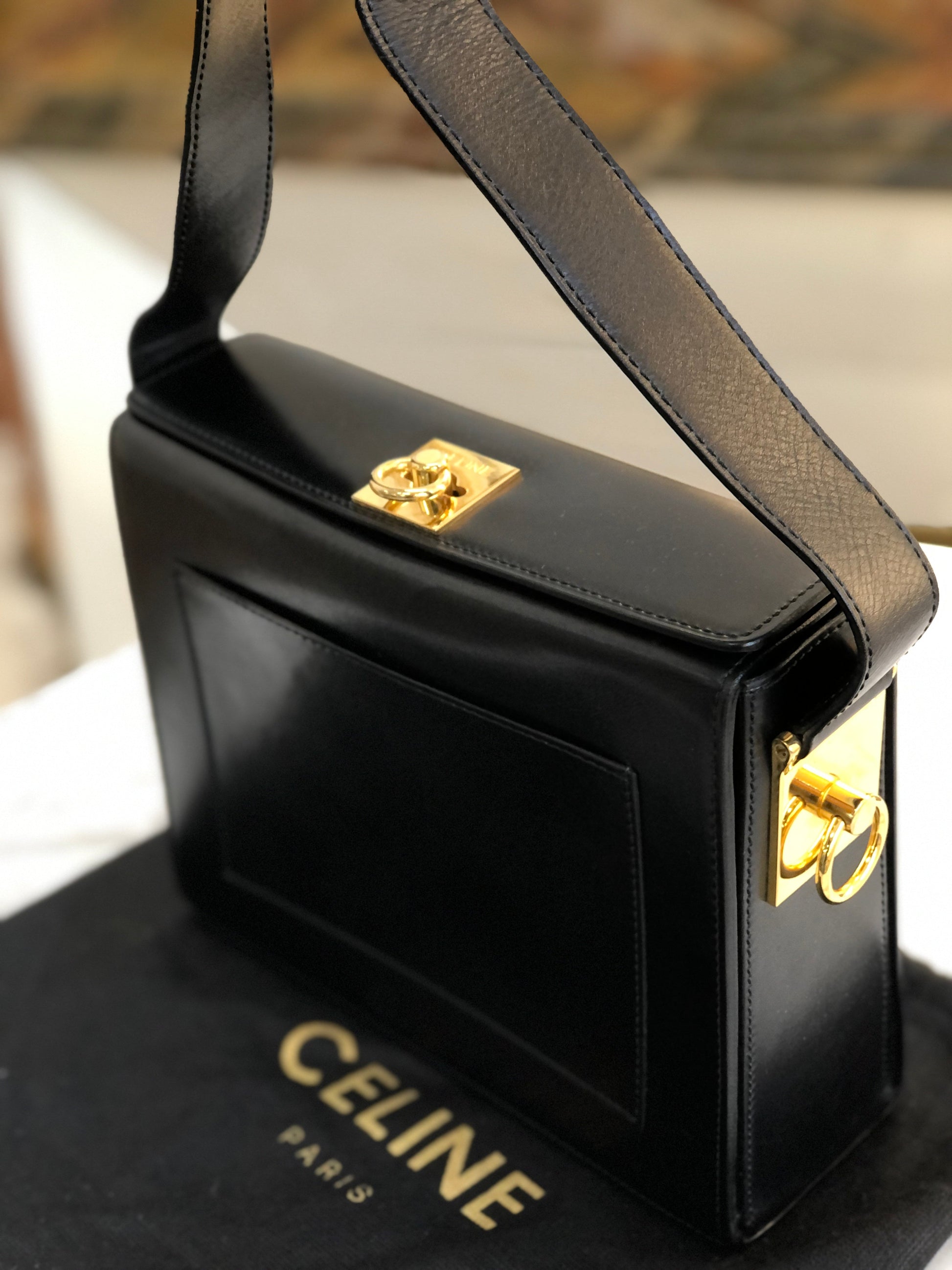CELINE Gancini Crossbody Box Shoulder bag Black Vintage Old Celine w6vekz