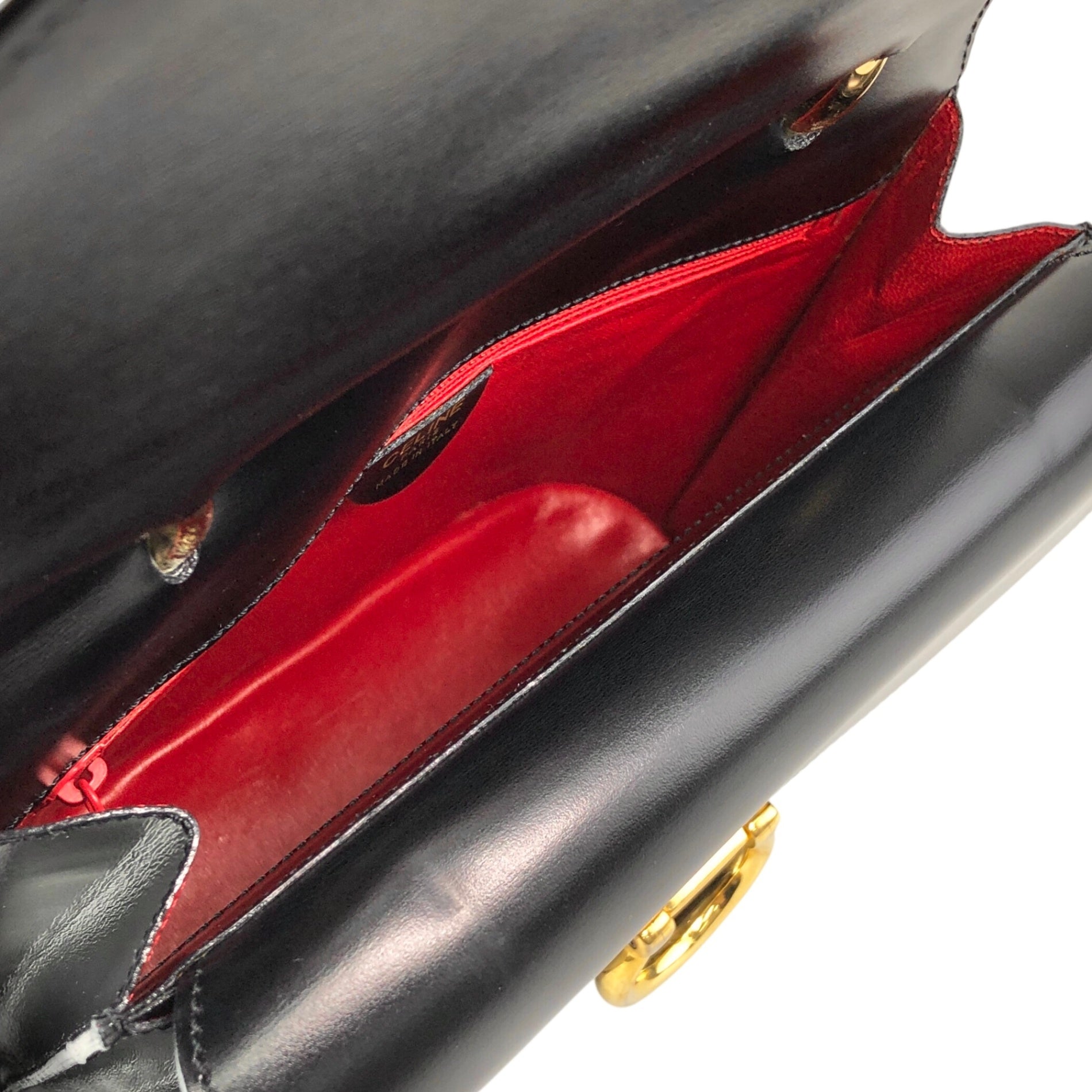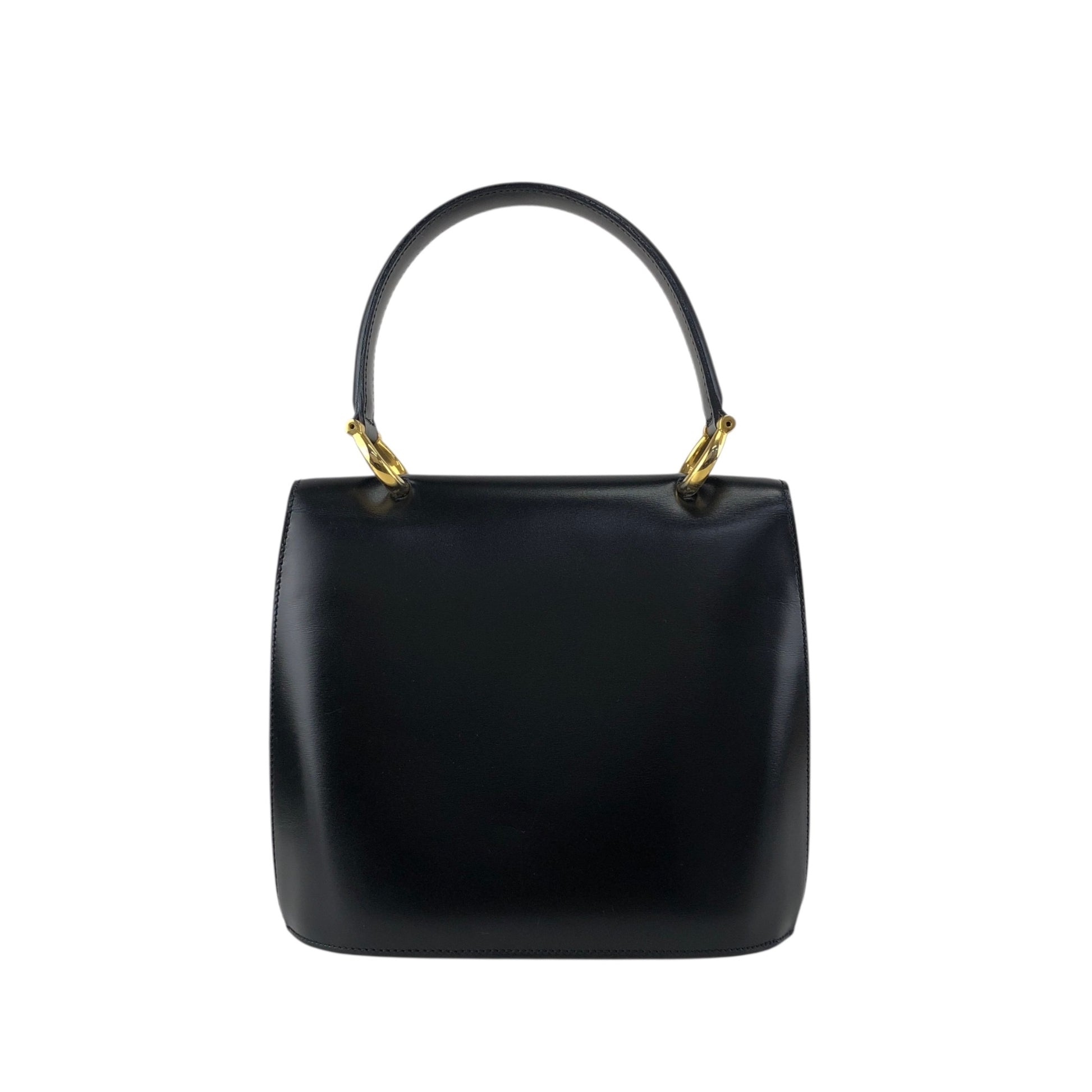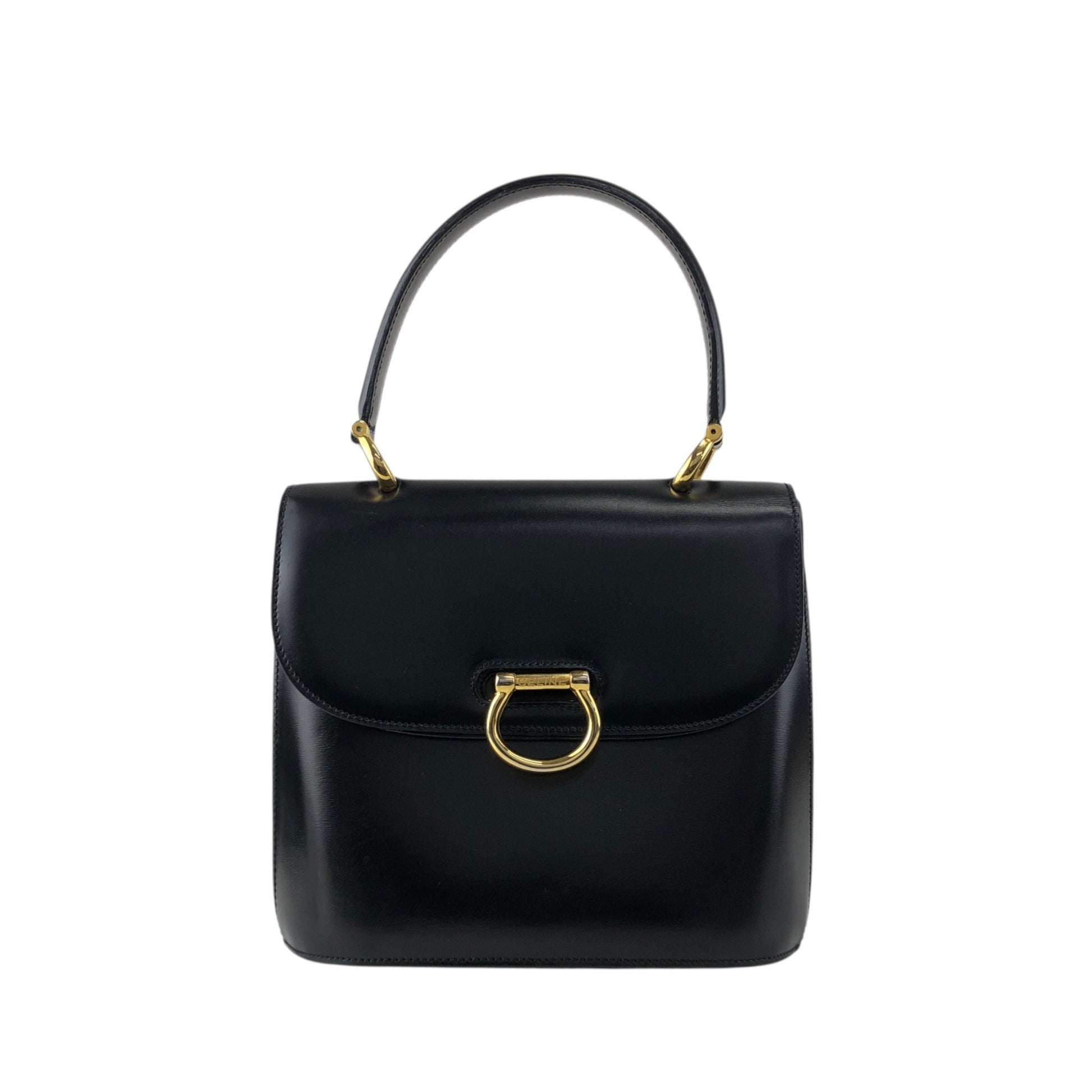 CELINE Gancini Double Flap Handbag Black Vintage j7dwju