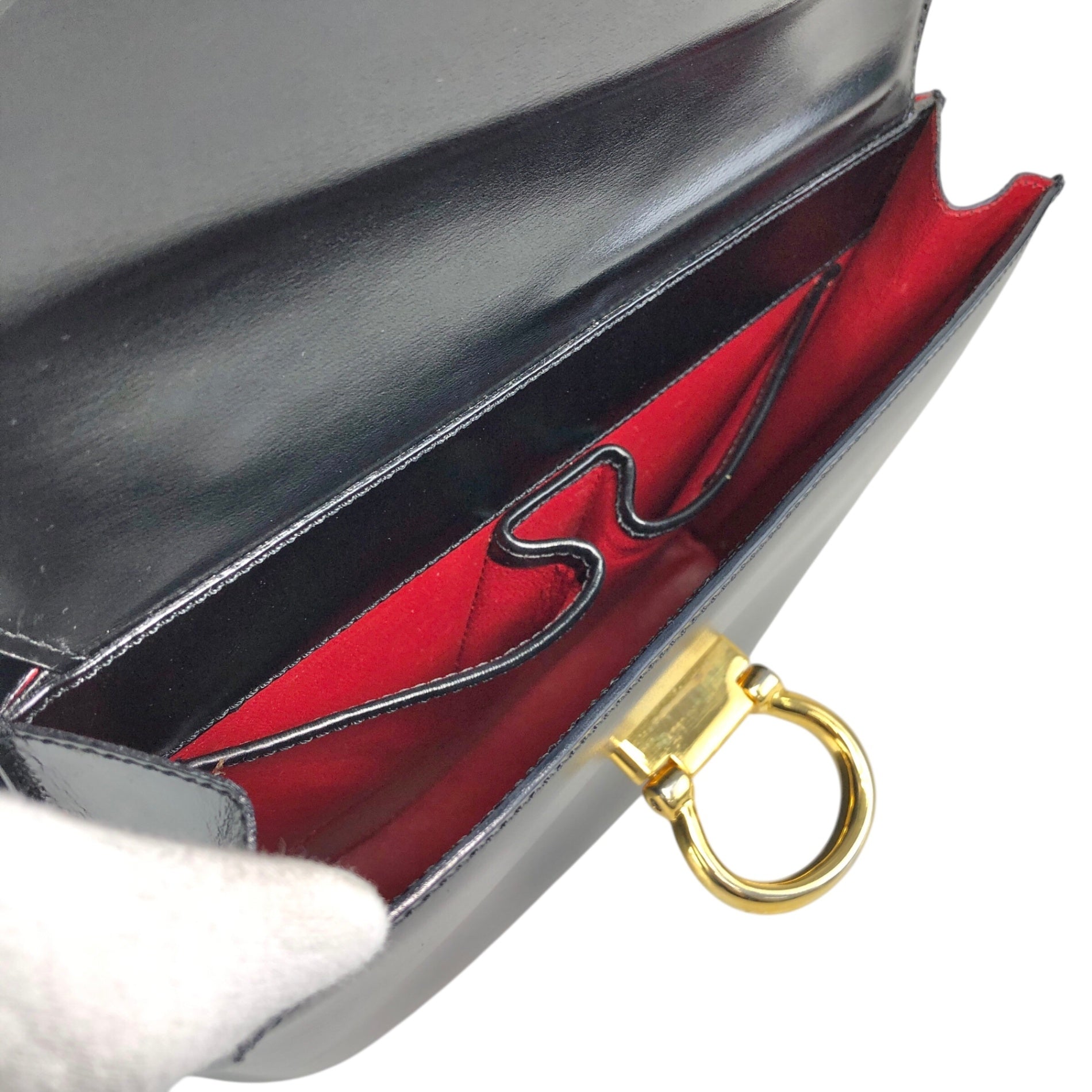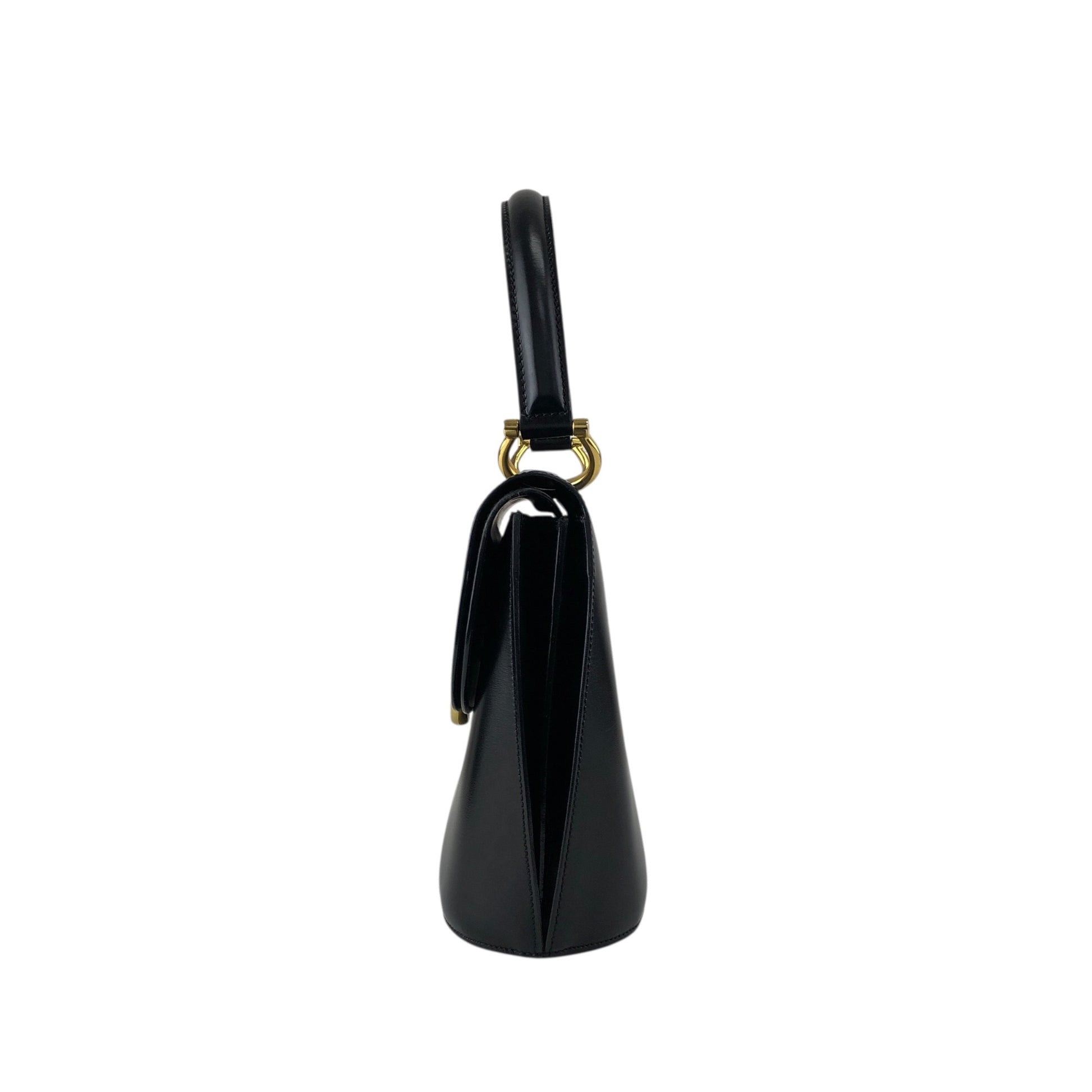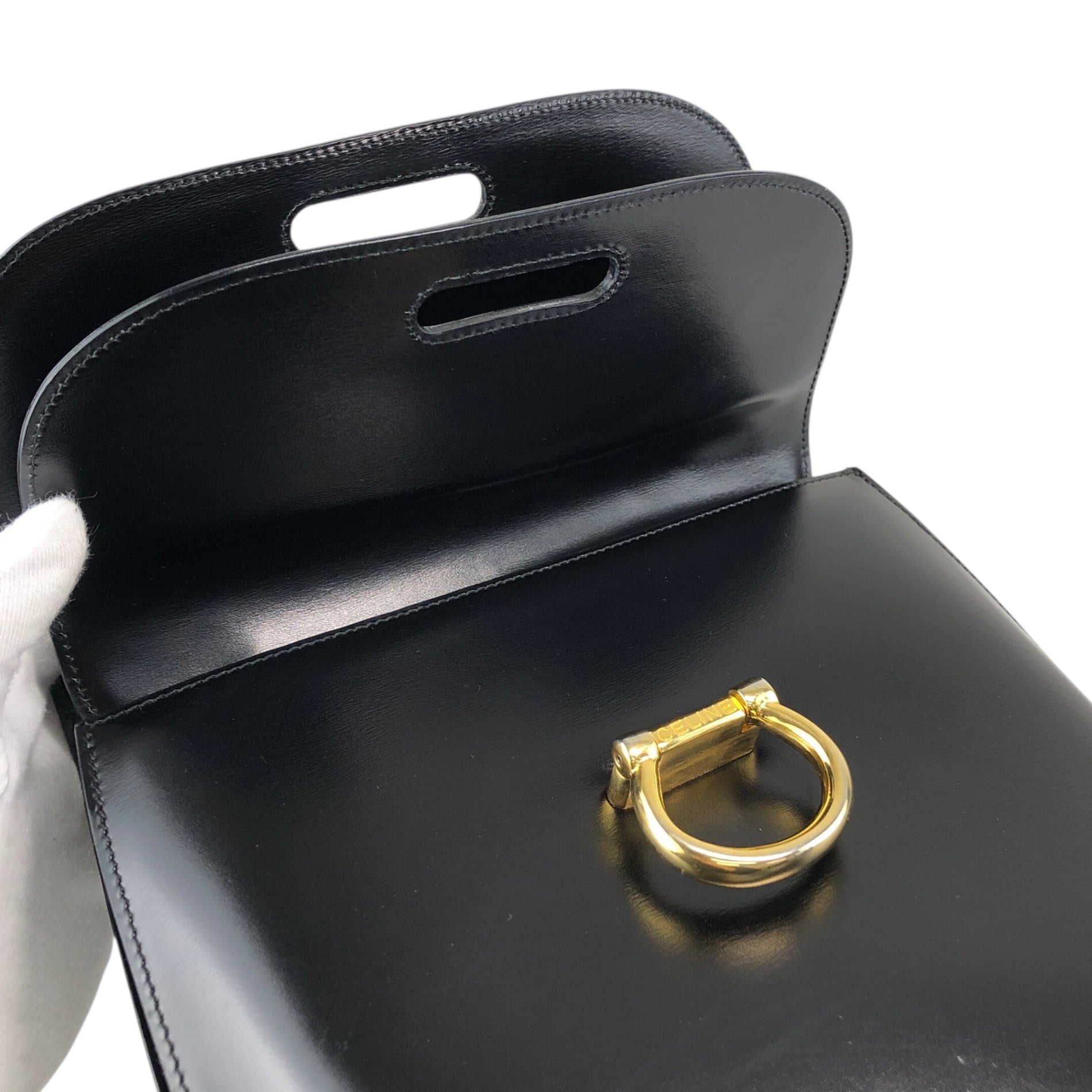 CELINE Gancini Double Flap Handbag Black Vintage j7dwju