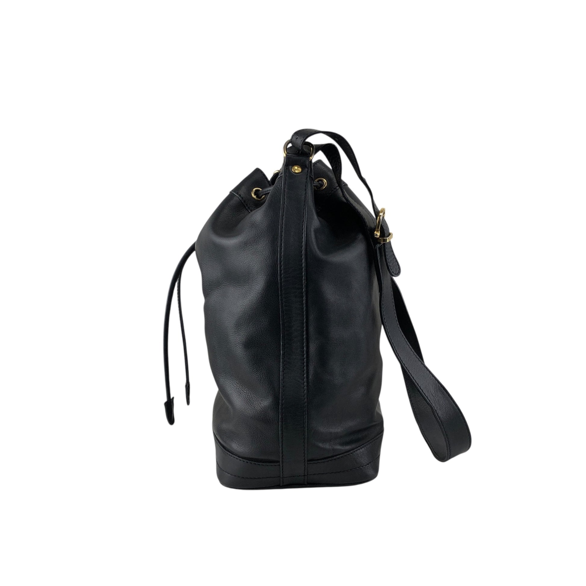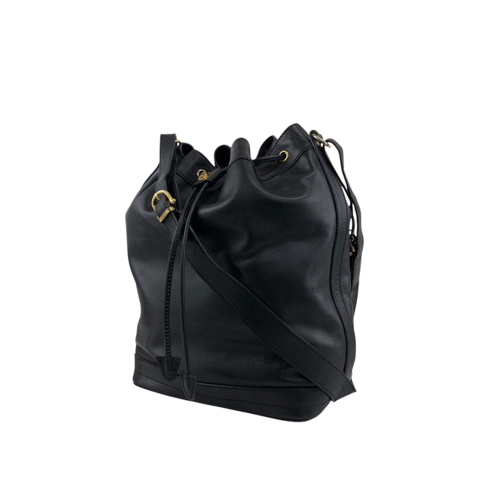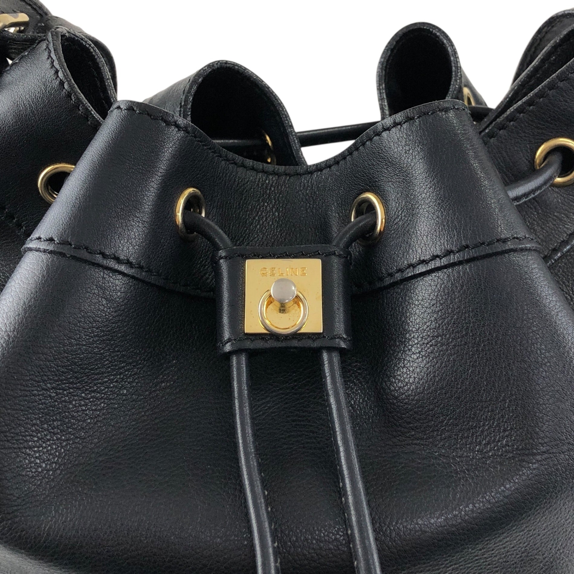 CELINE Gancini Drawstring Shoulder bag Black Vintage 4g3rt5