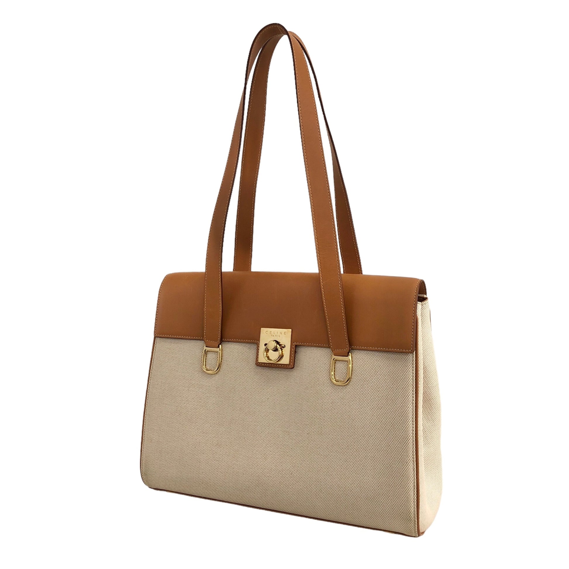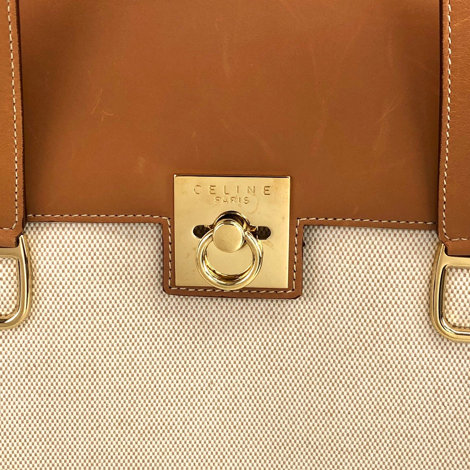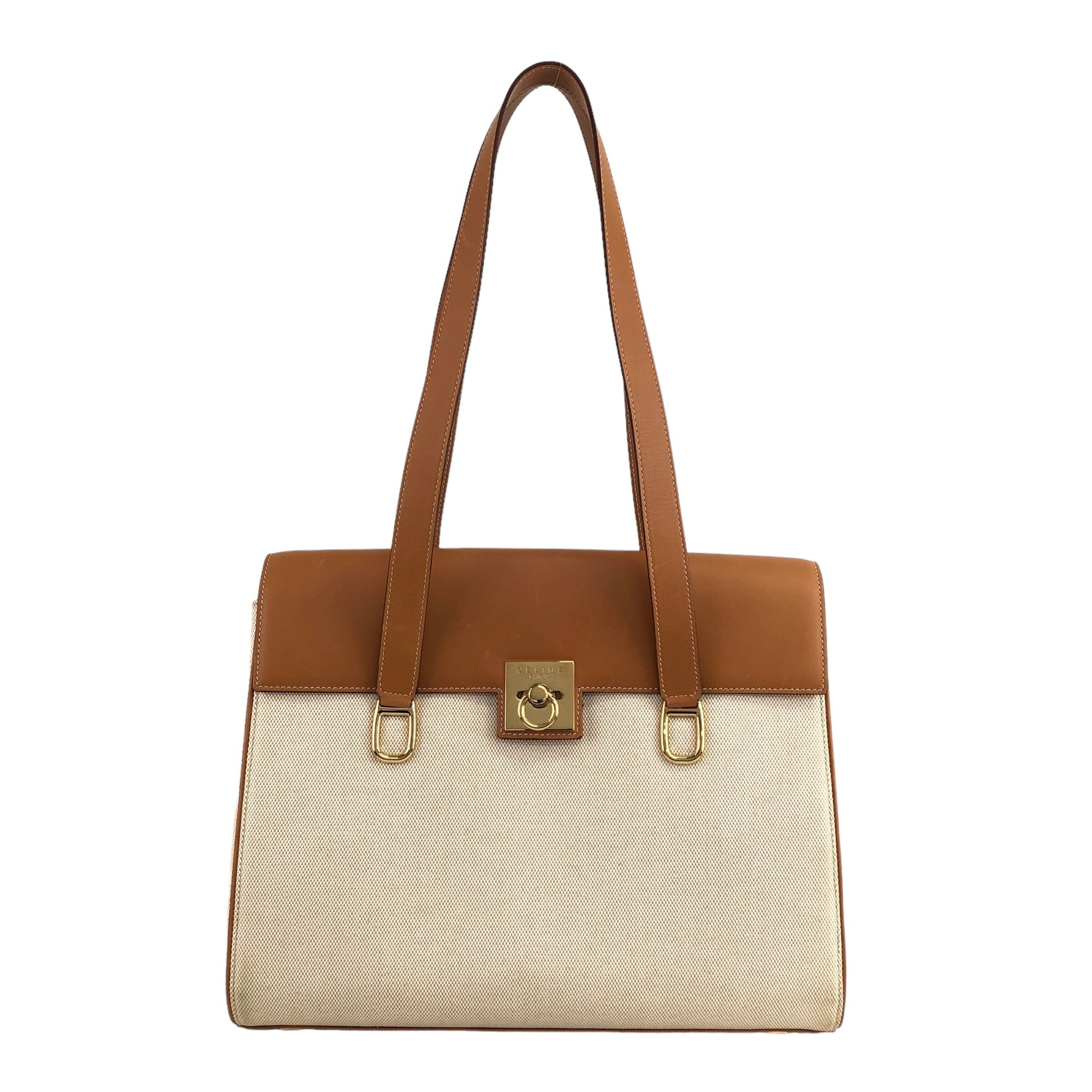 CELINE Gancini Handbag Beige×Brown Vintage hzaany