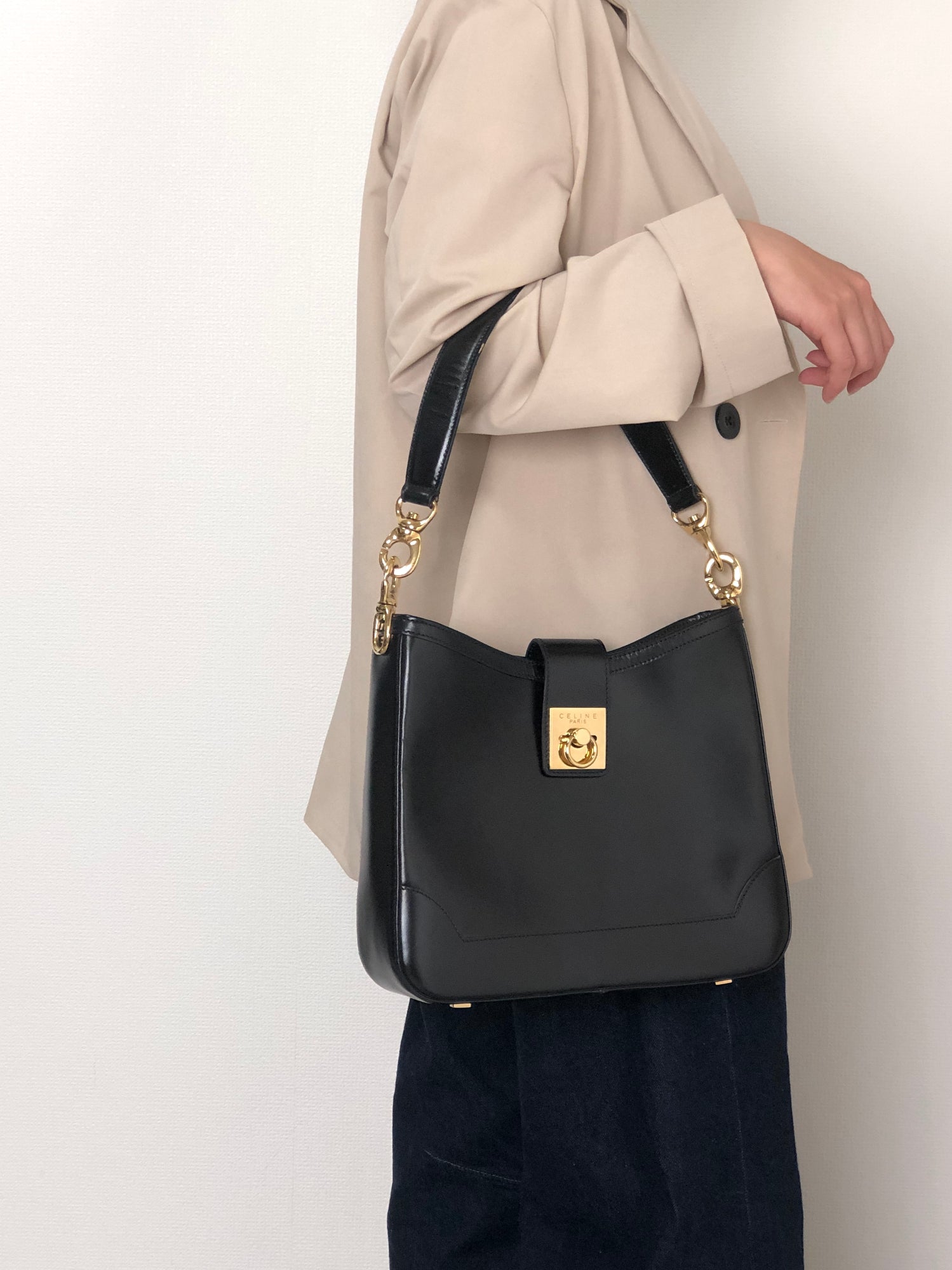 CELINE Gancini Shoulder bag Black Vintage t5y5fb