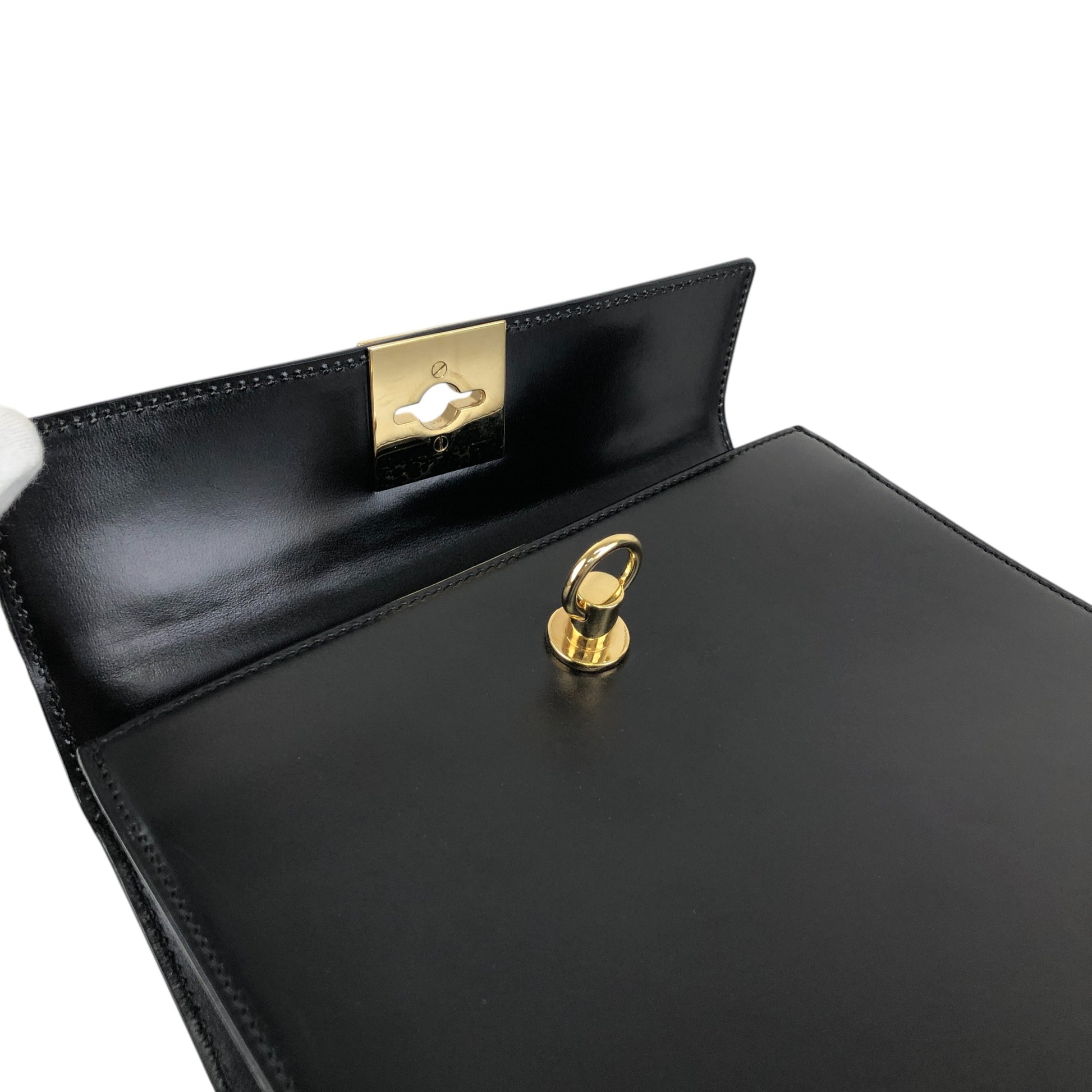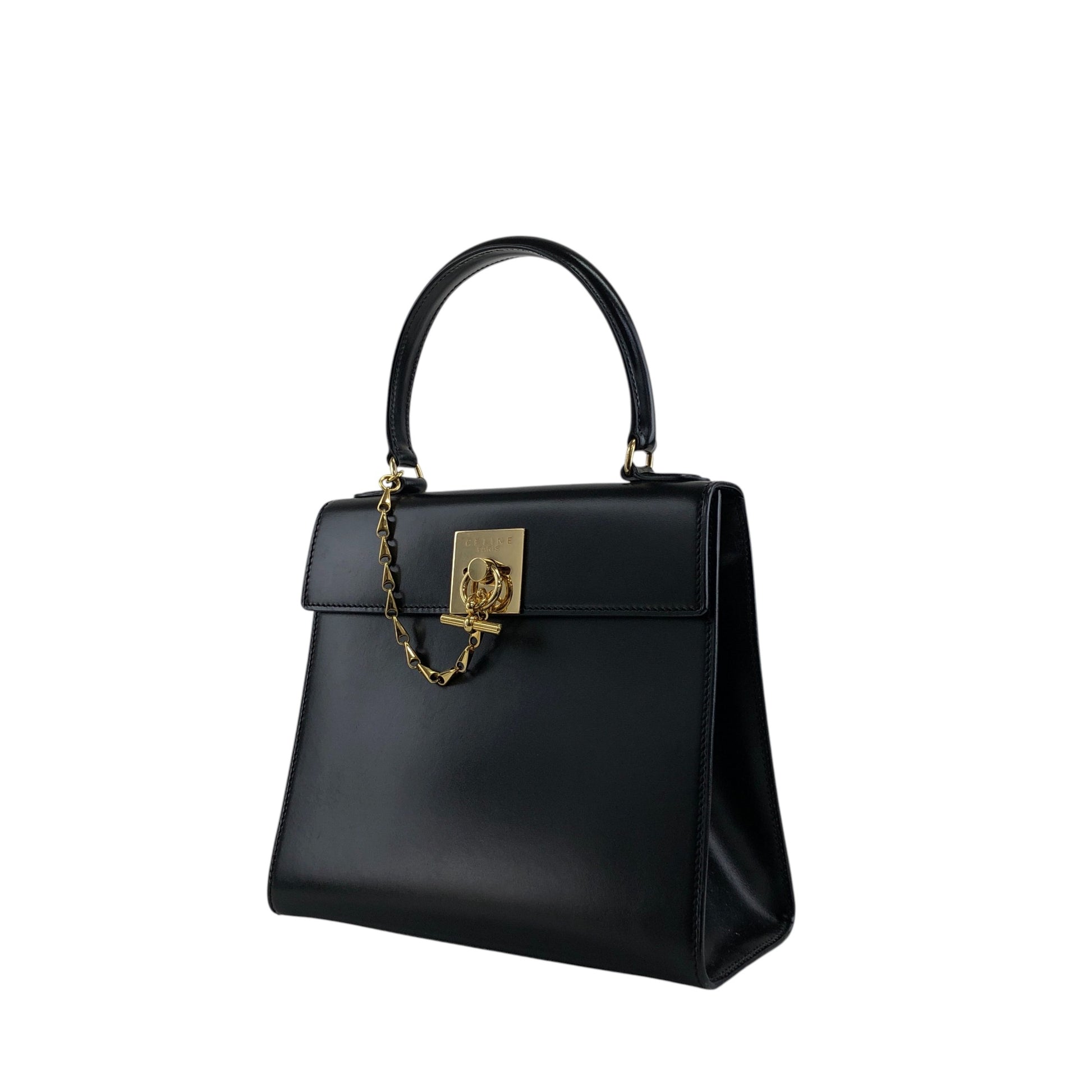 CELINE Gancini Two-way Handbag Shoulder bag Black Vintage r5552p