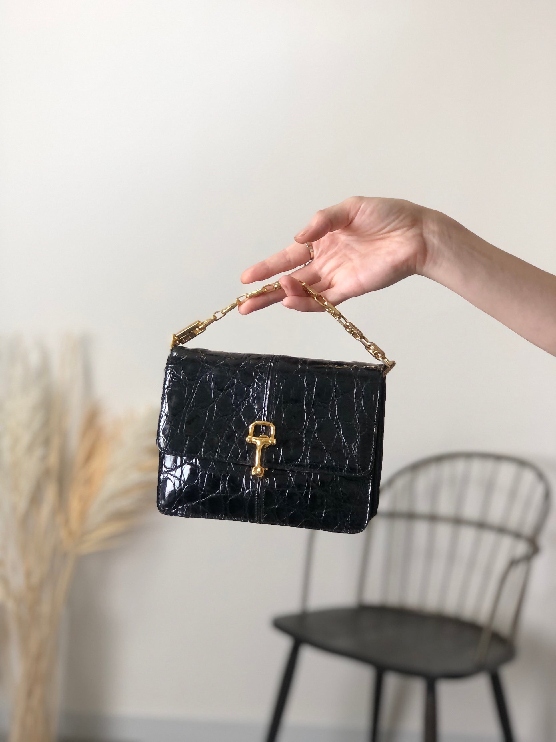 CELINE Horse Bit Chain Shoulder bag Black Vintage pu7w2k
