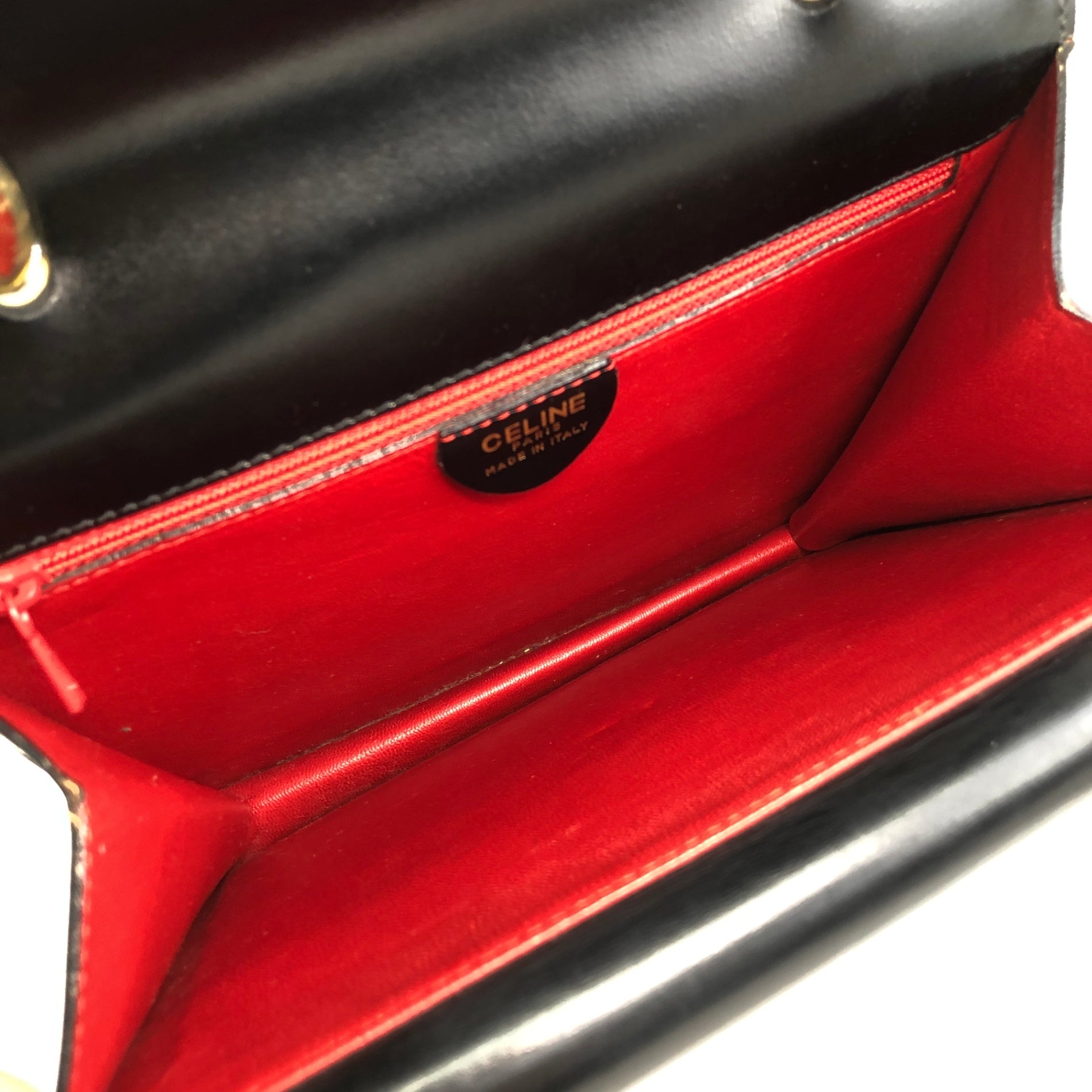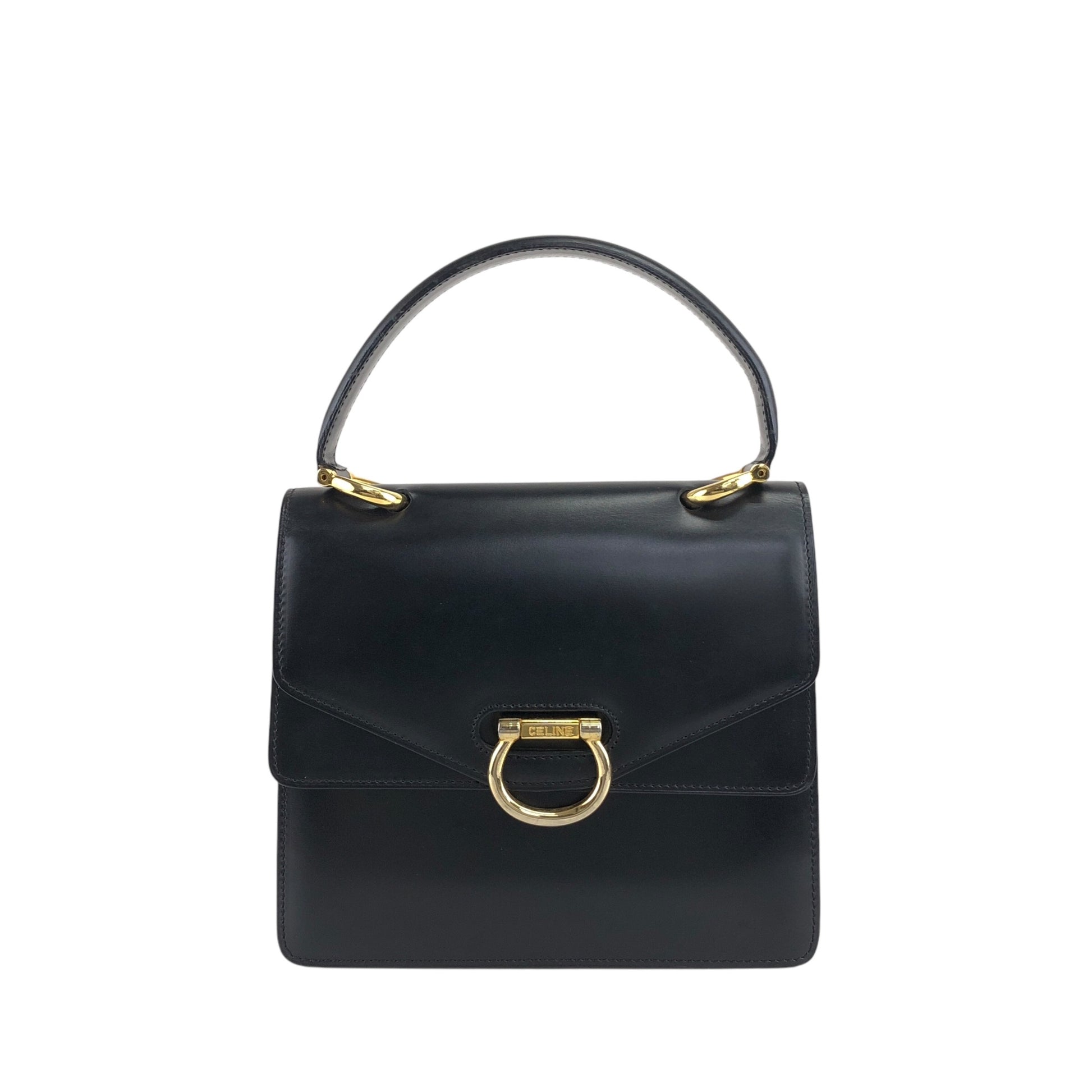 CELINE Horse Bit Double Flap Handbag Black Vintage eysscs