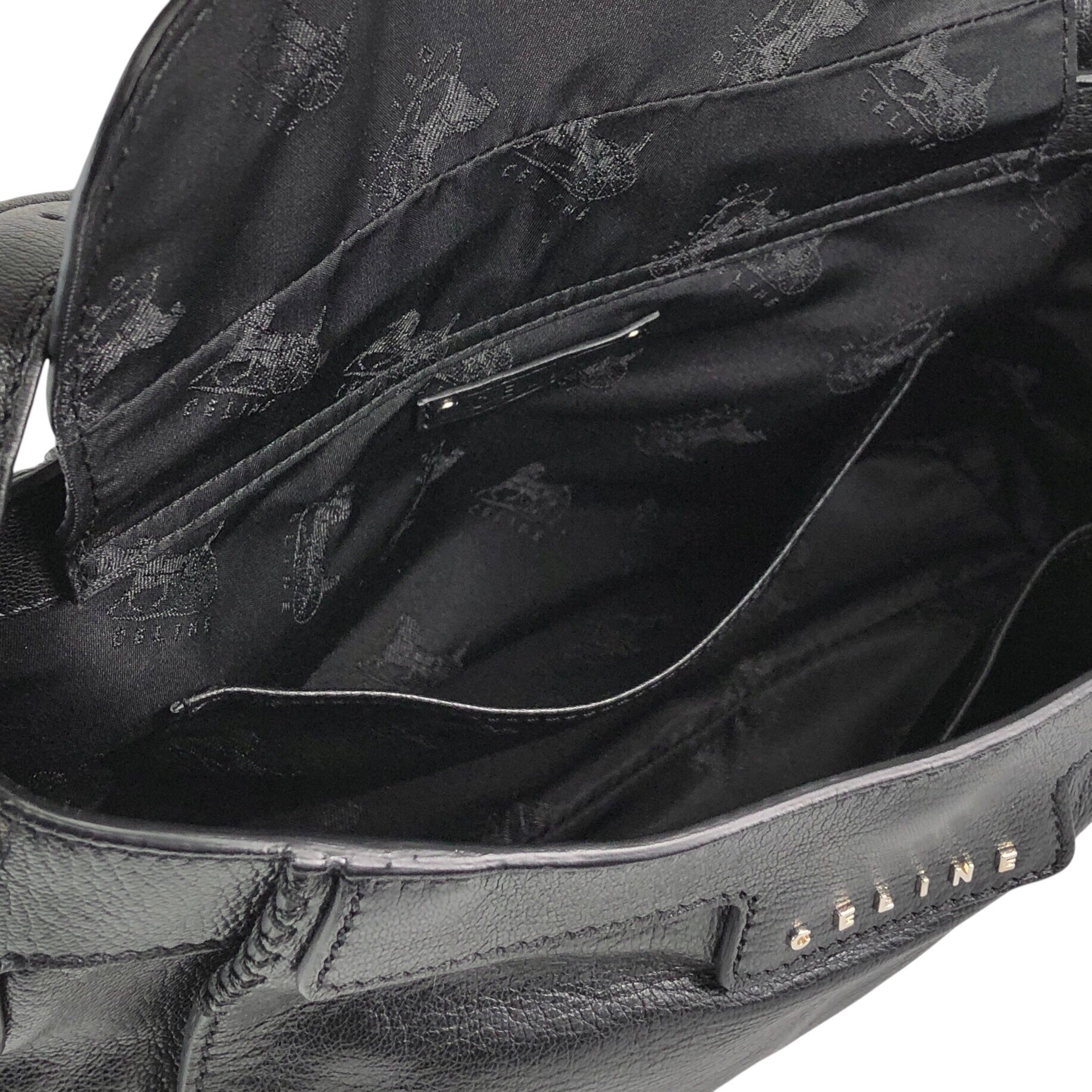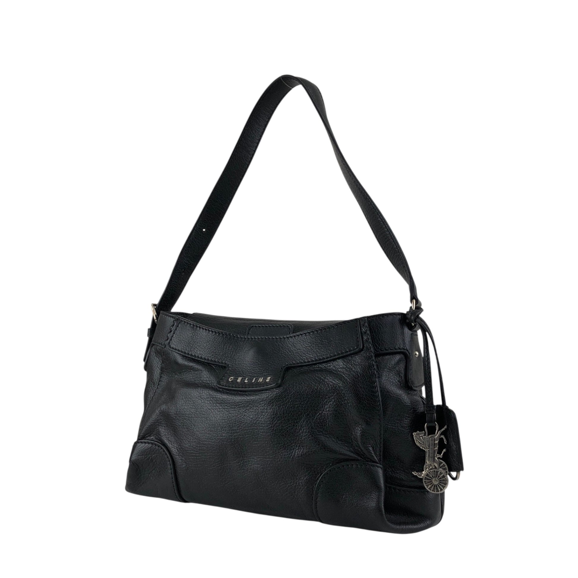 CELINE Horse Carriage Shoulder bag Black Vintage 6inwsp