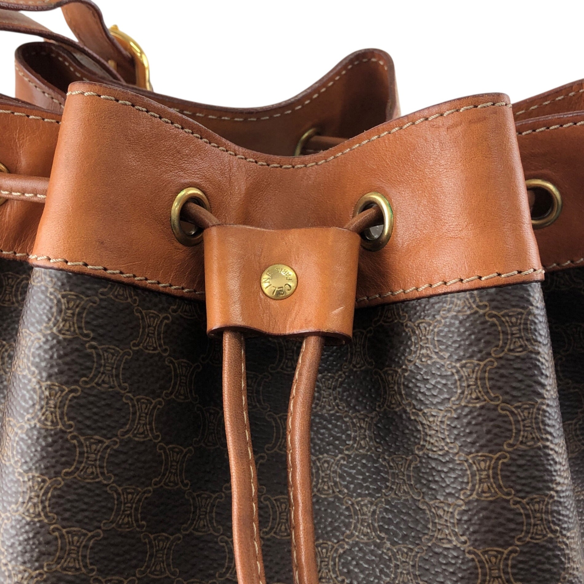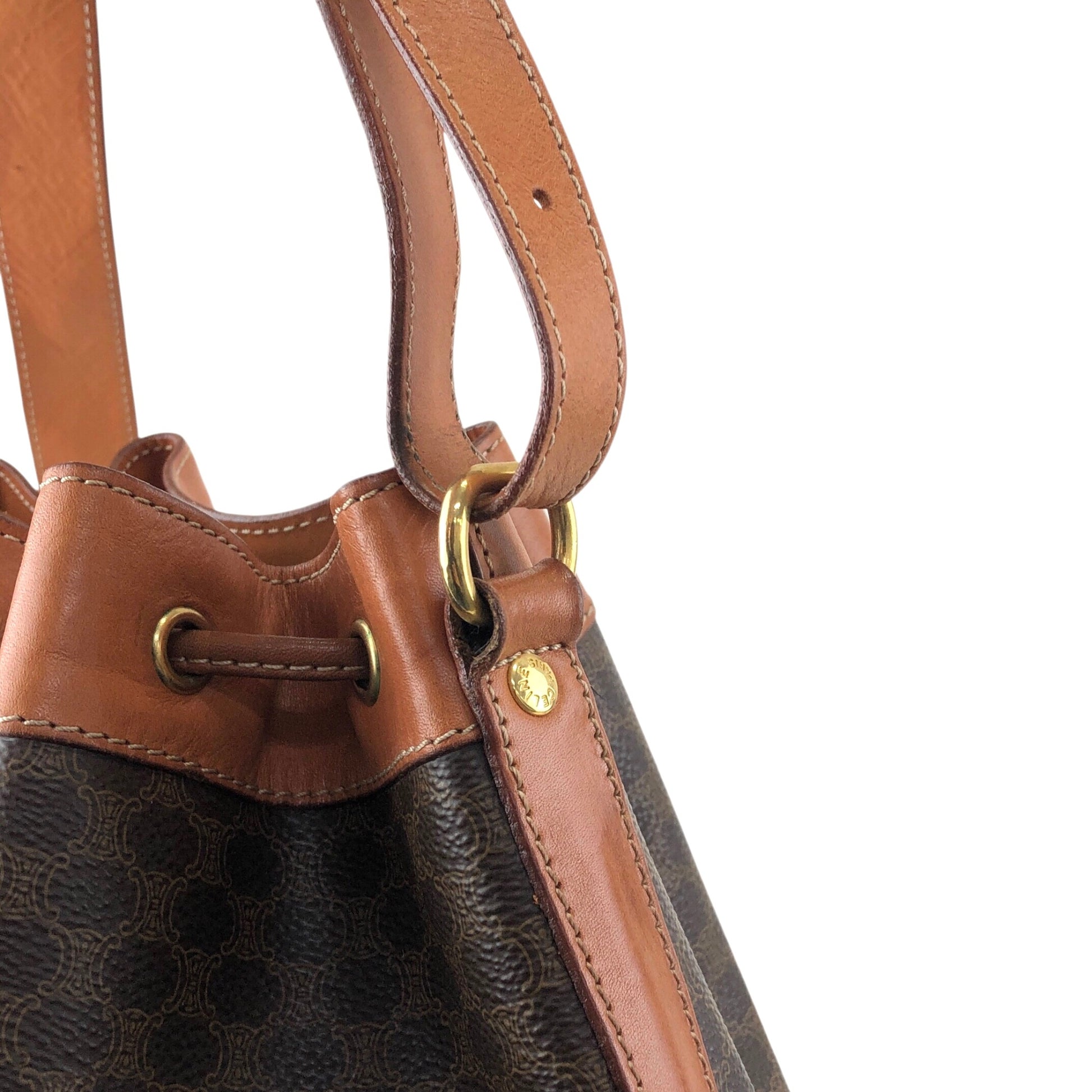 CELINE Macadam Blason Drawstring Shoulder bag Brown Vintage epwjhg