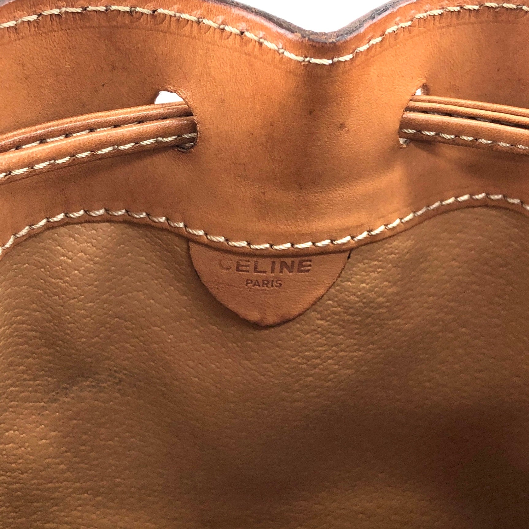 CELINE Macadam Blason Drawstring Shoulder bag Brown Vintage twzgft