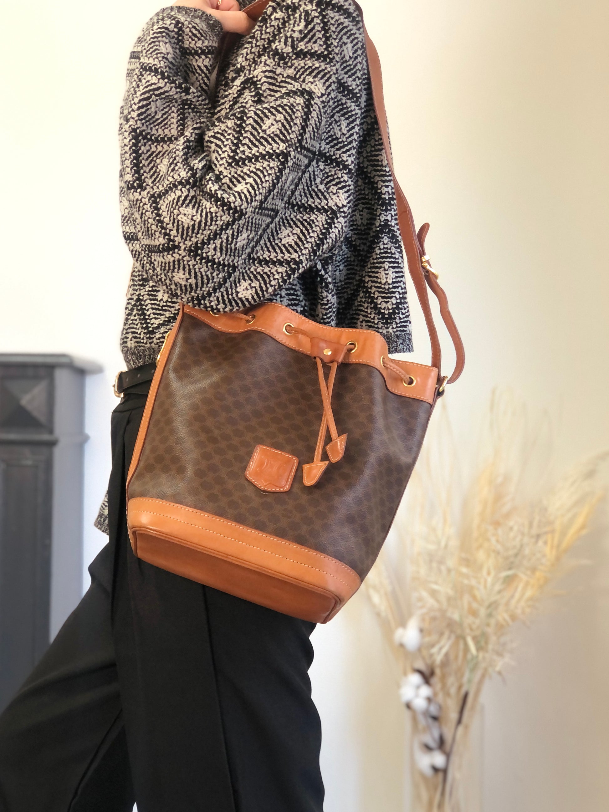 CELINE Macadam Blason Drawstring Shoulder bag Brown Vintage y4ma84