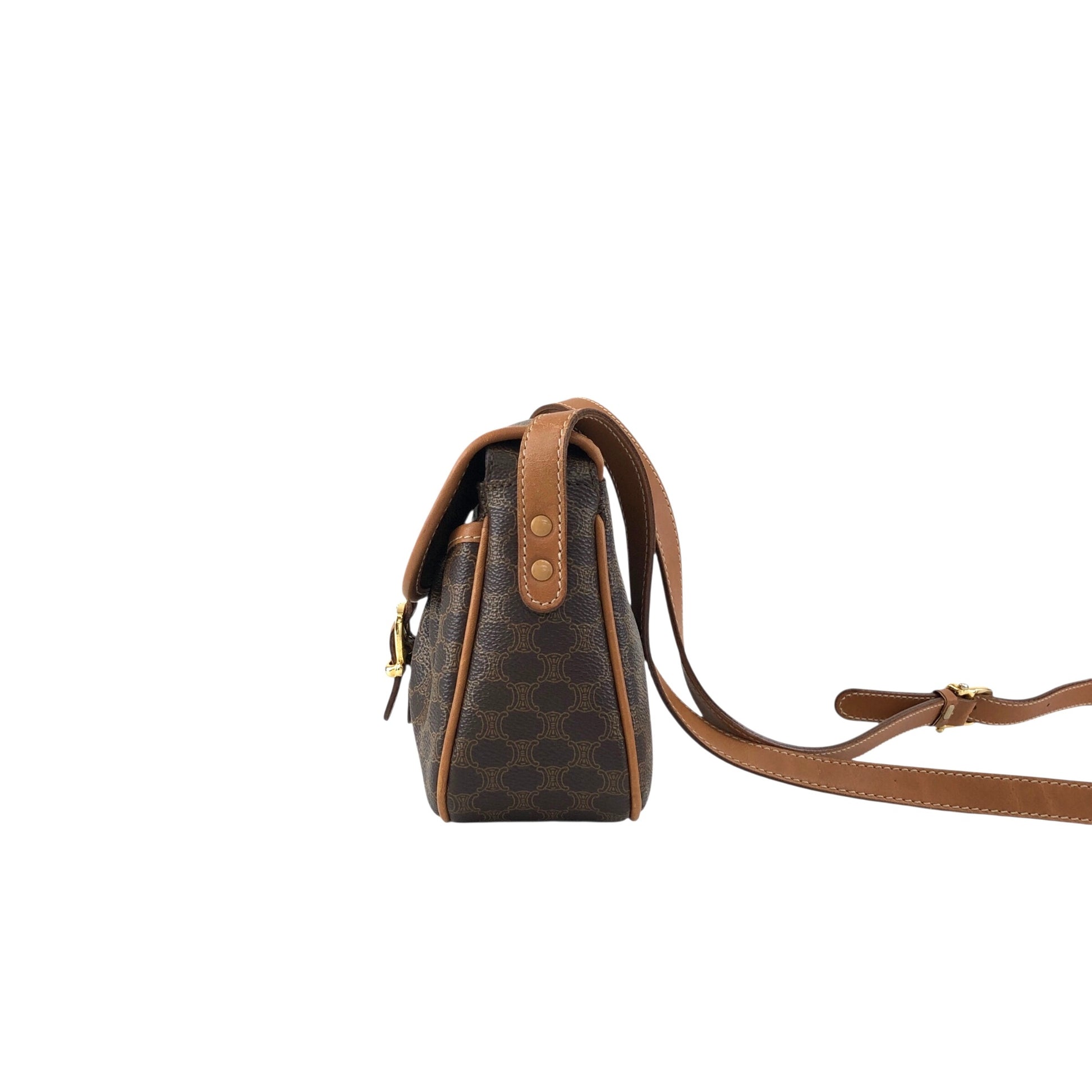 CELINE Macadam Blason Front Buckle Shoulder bag Brown Vintage 8vwf72