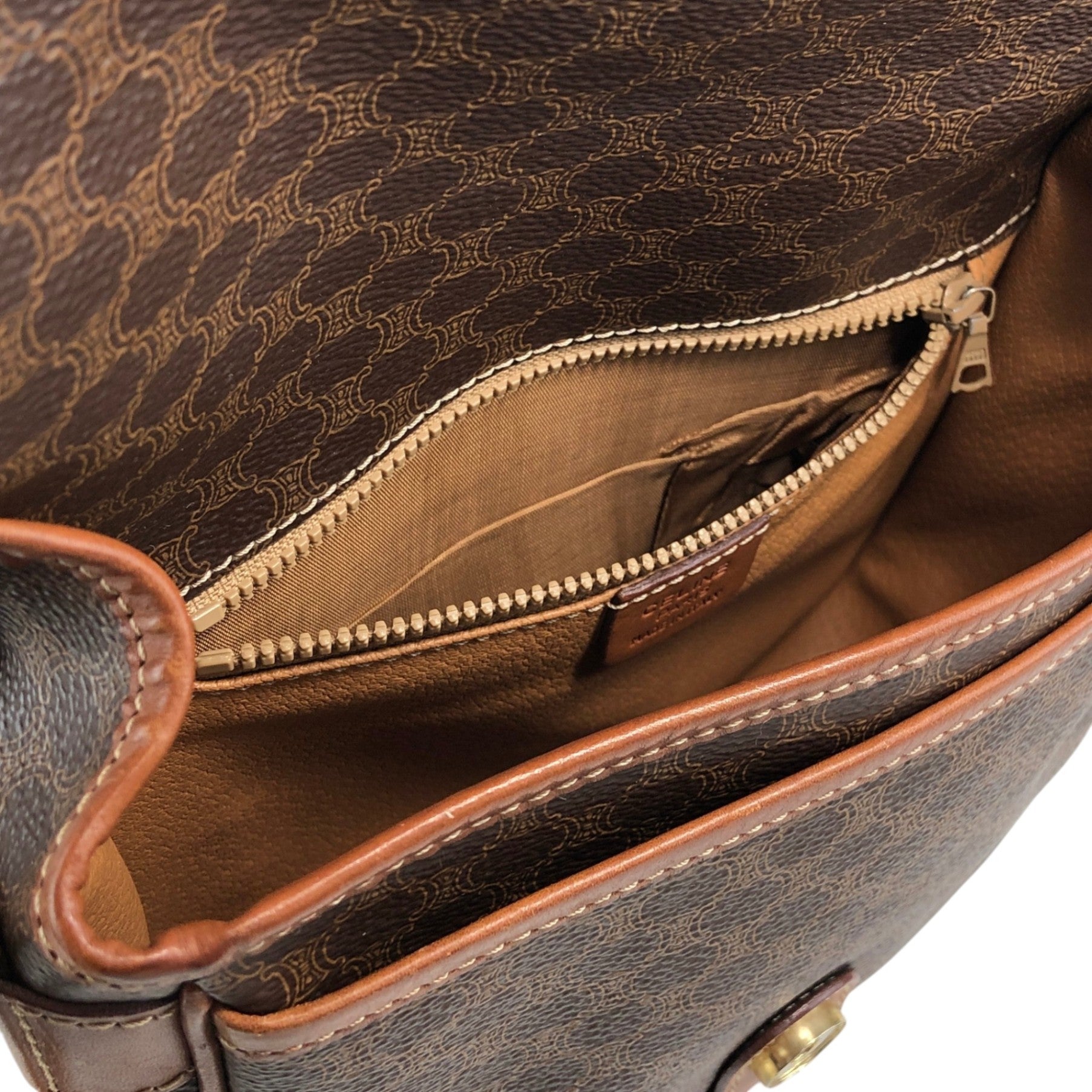CELINE Macadam Blason Front Buckle Shoulder bag Brown Vintage ketsrv