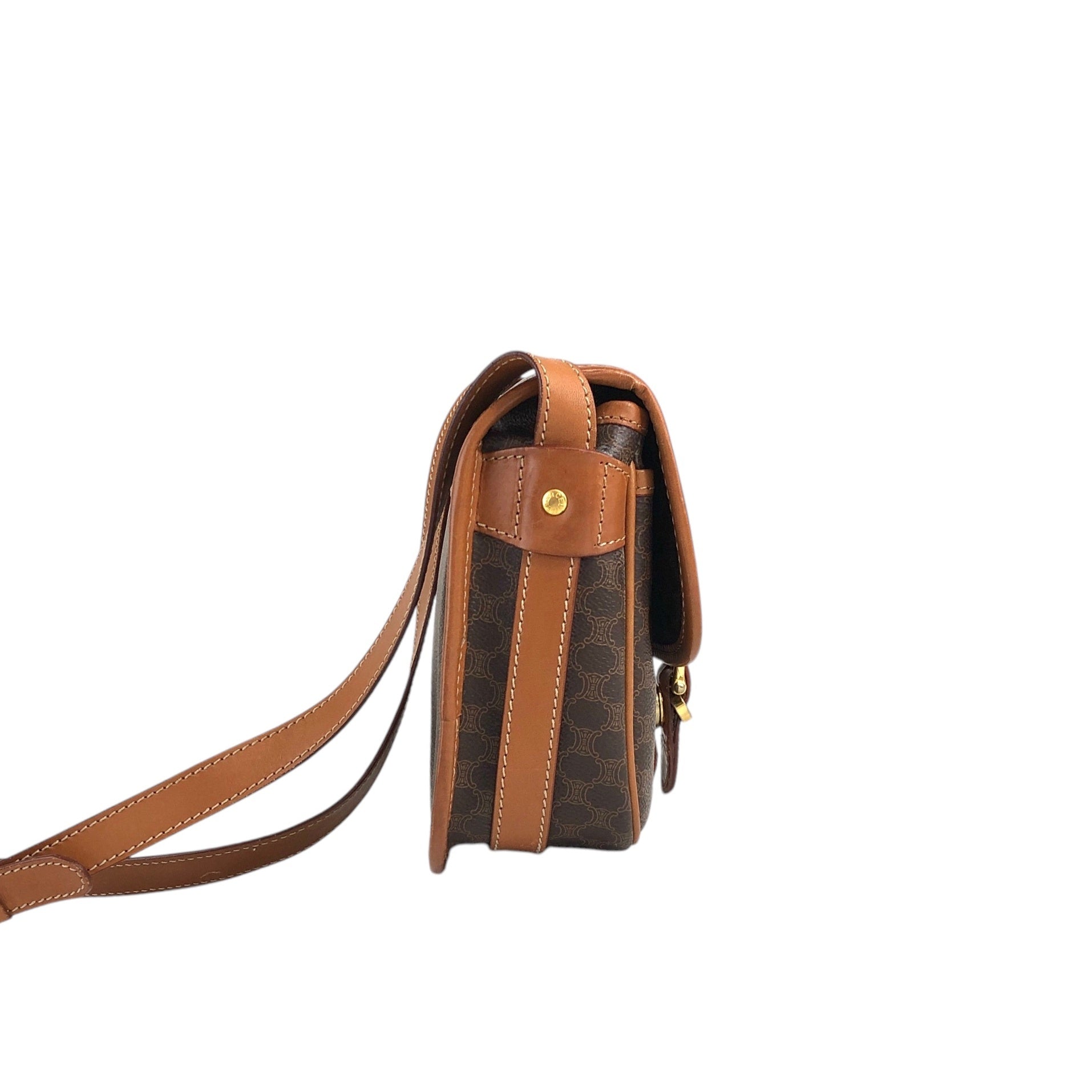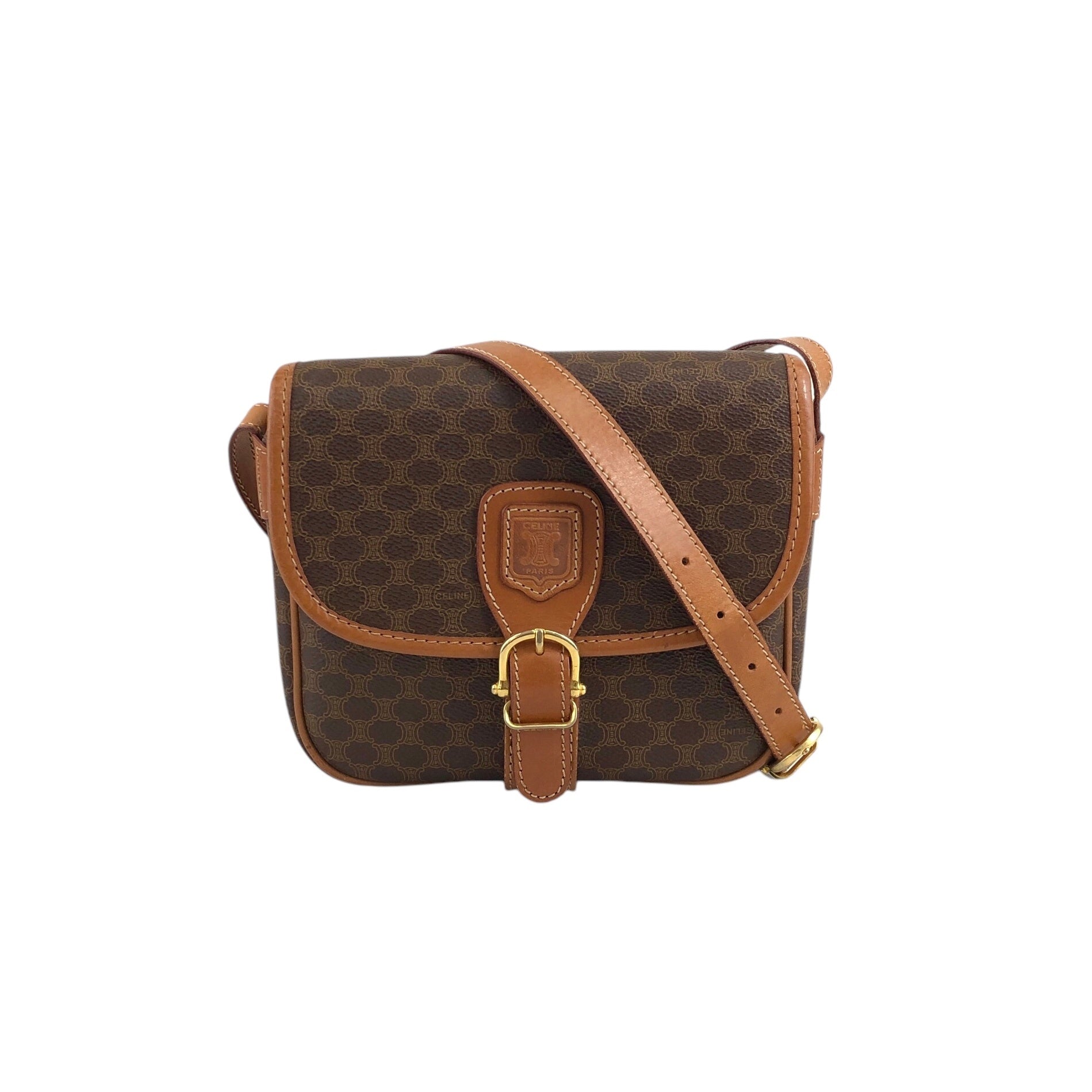 CELINE Macadam Blason Front Buckle Shoulder bag Brown Vintage z5ucpb