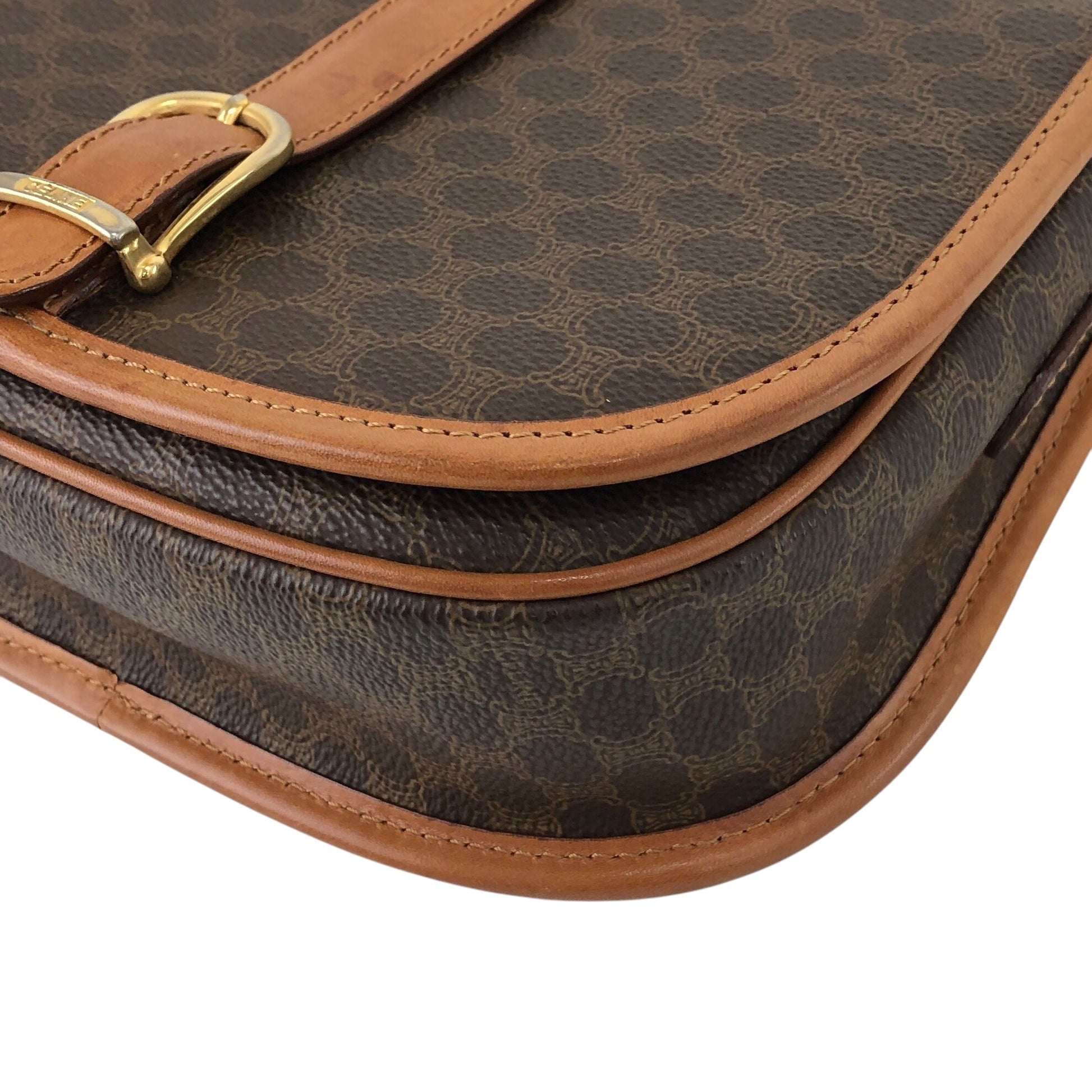 CELINE Macadam Front Buckle Shoulder bag Brown Vintage cabjde