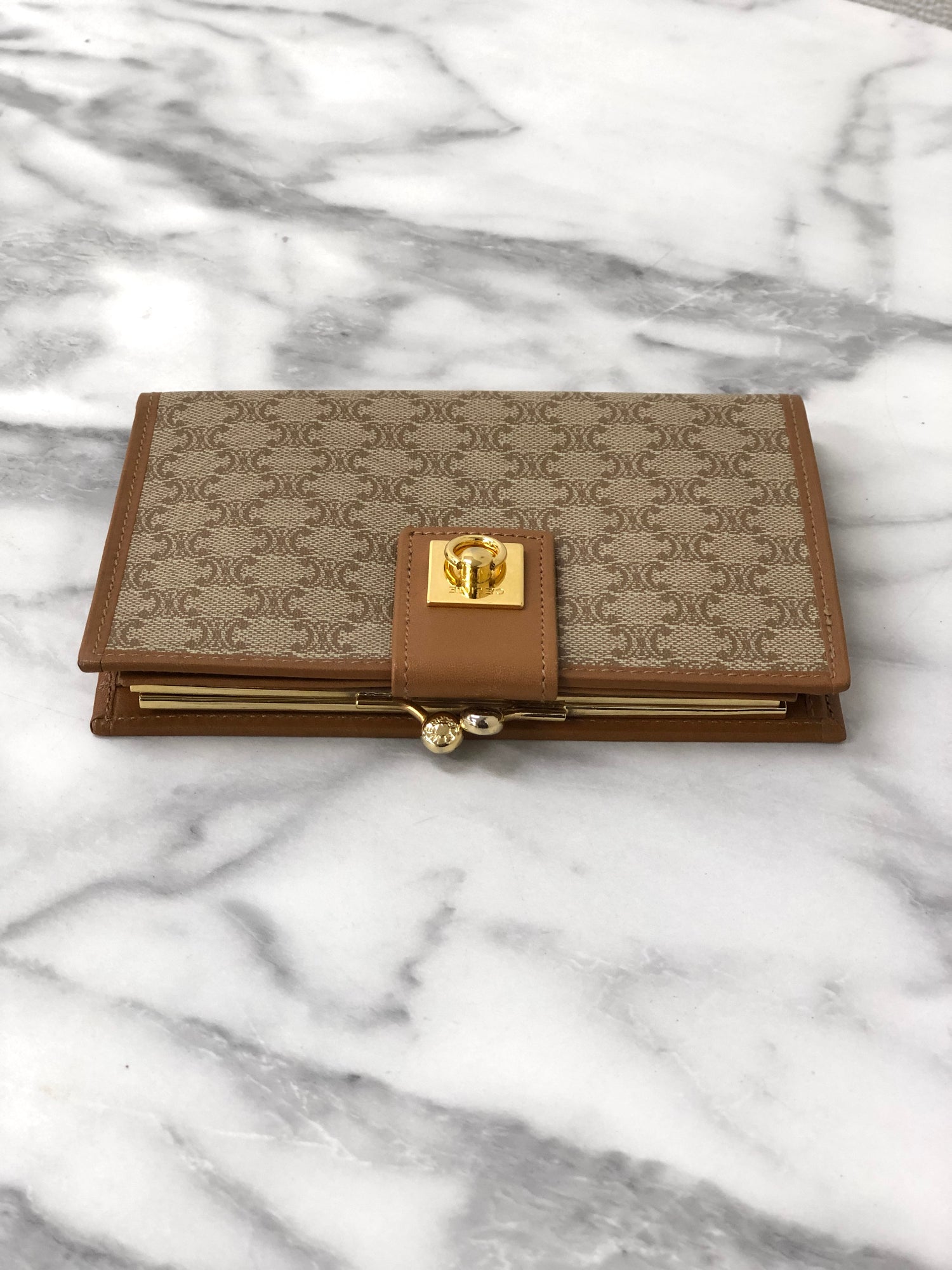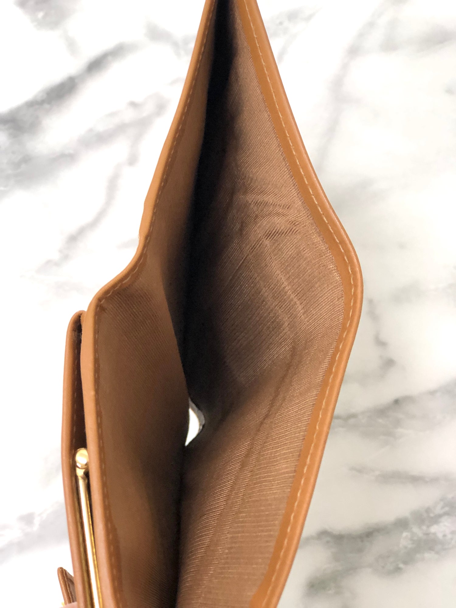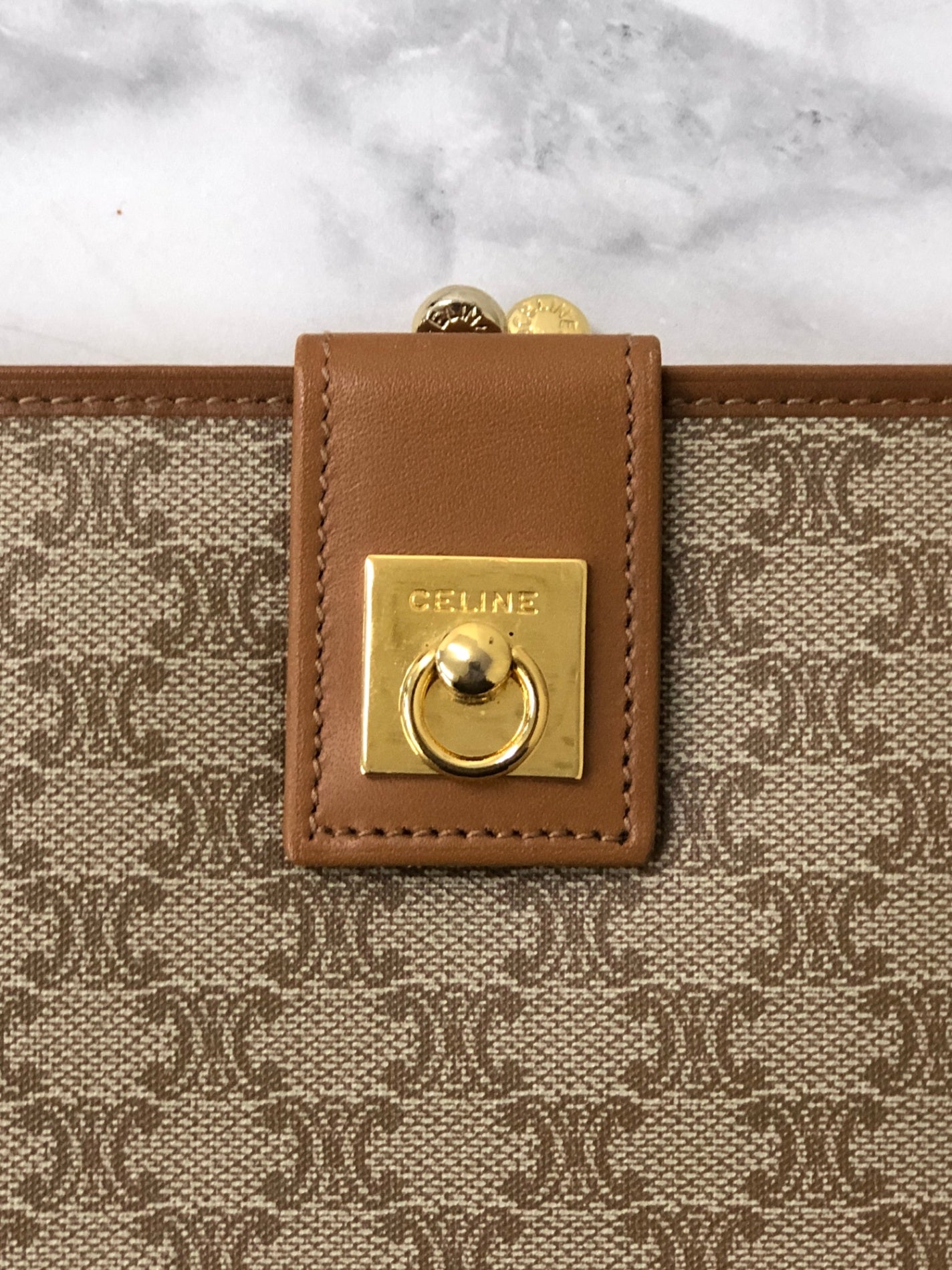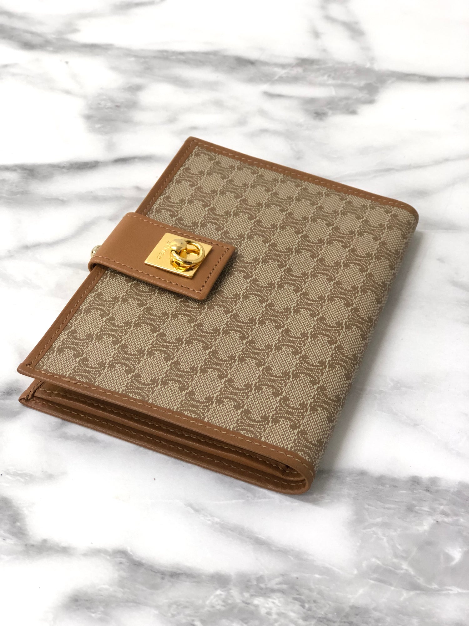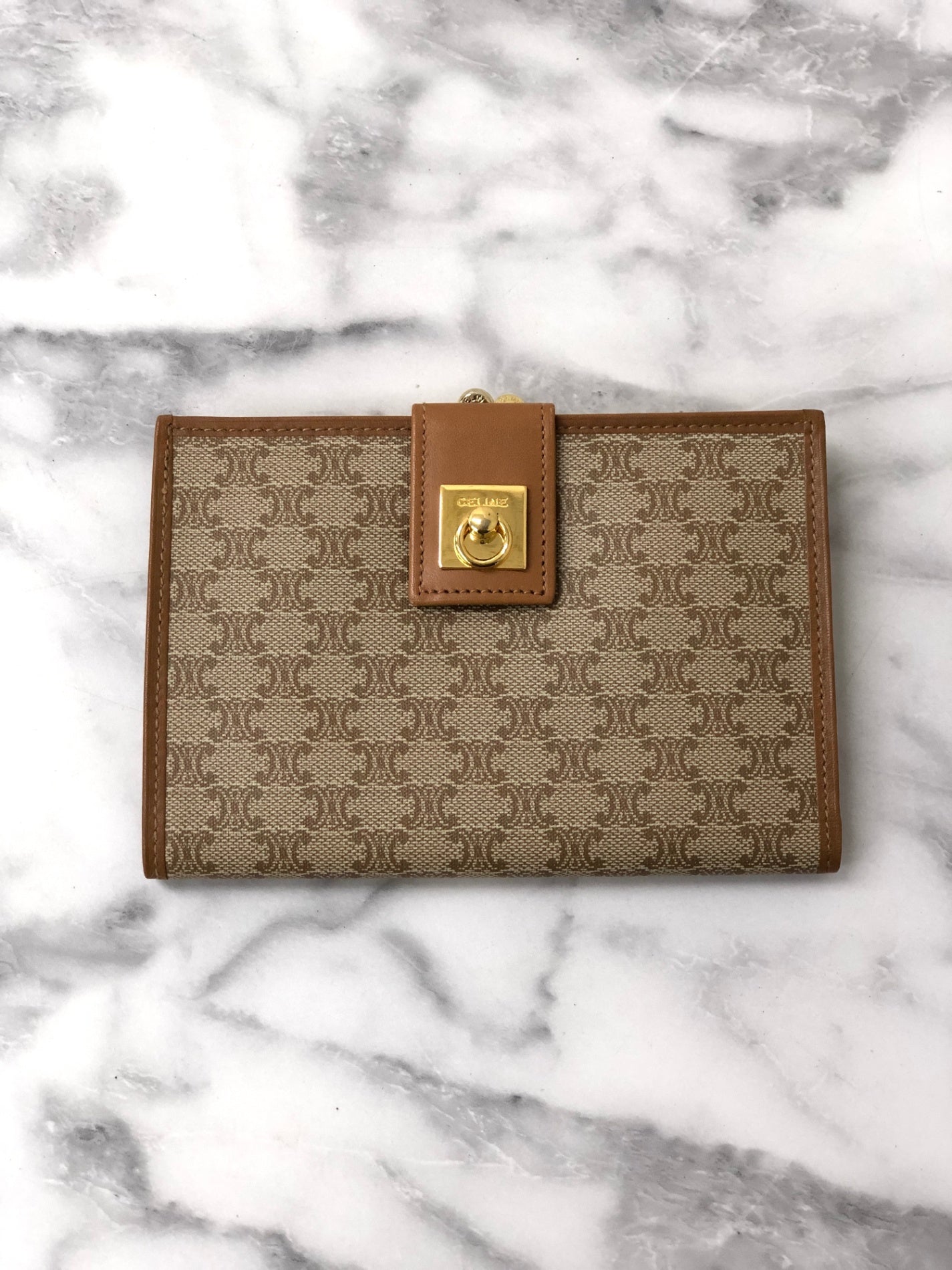 CELINE Macadam Gancini Metal Clasp Folded Wallet Beige Vintage 68d5ek