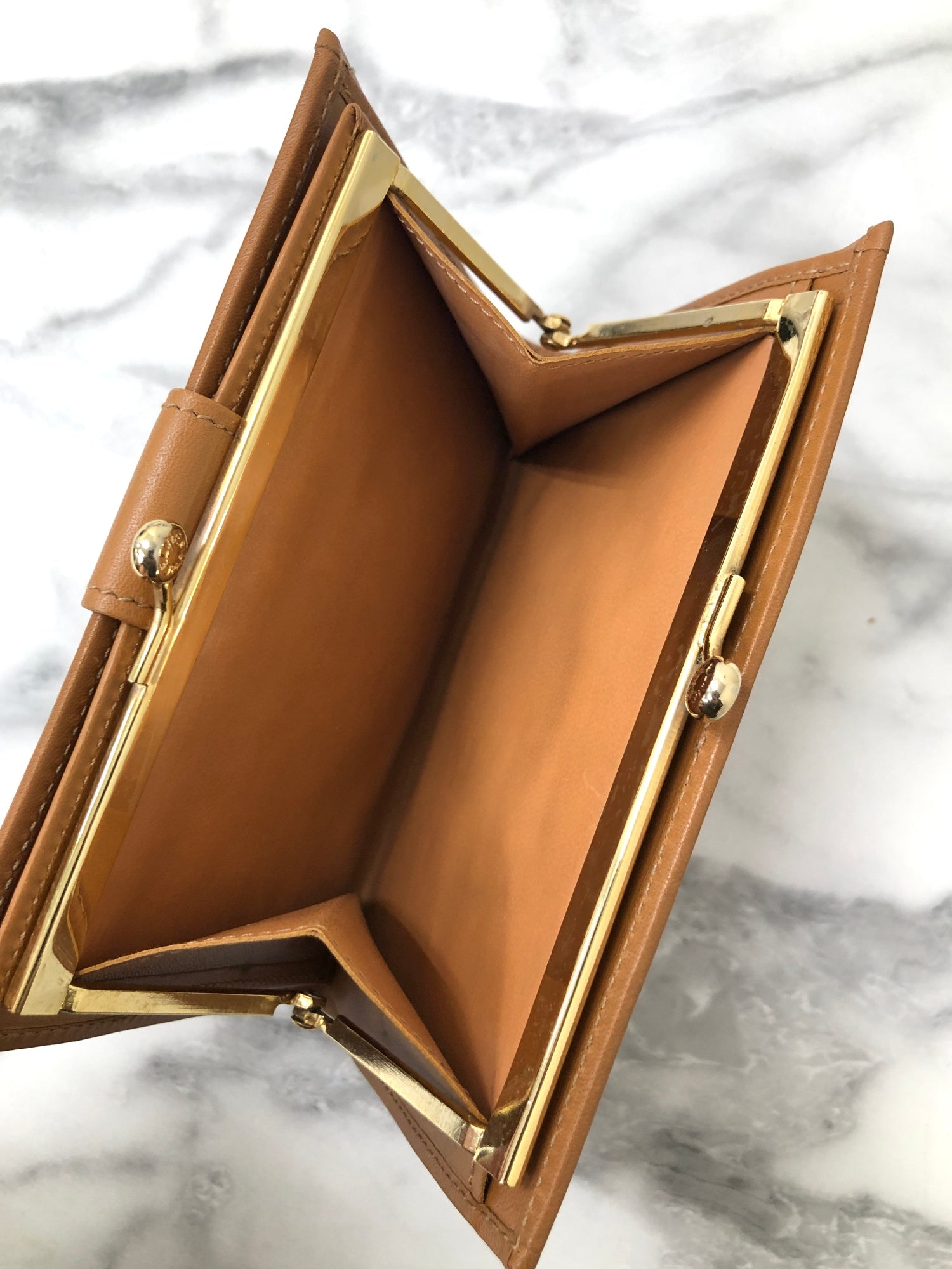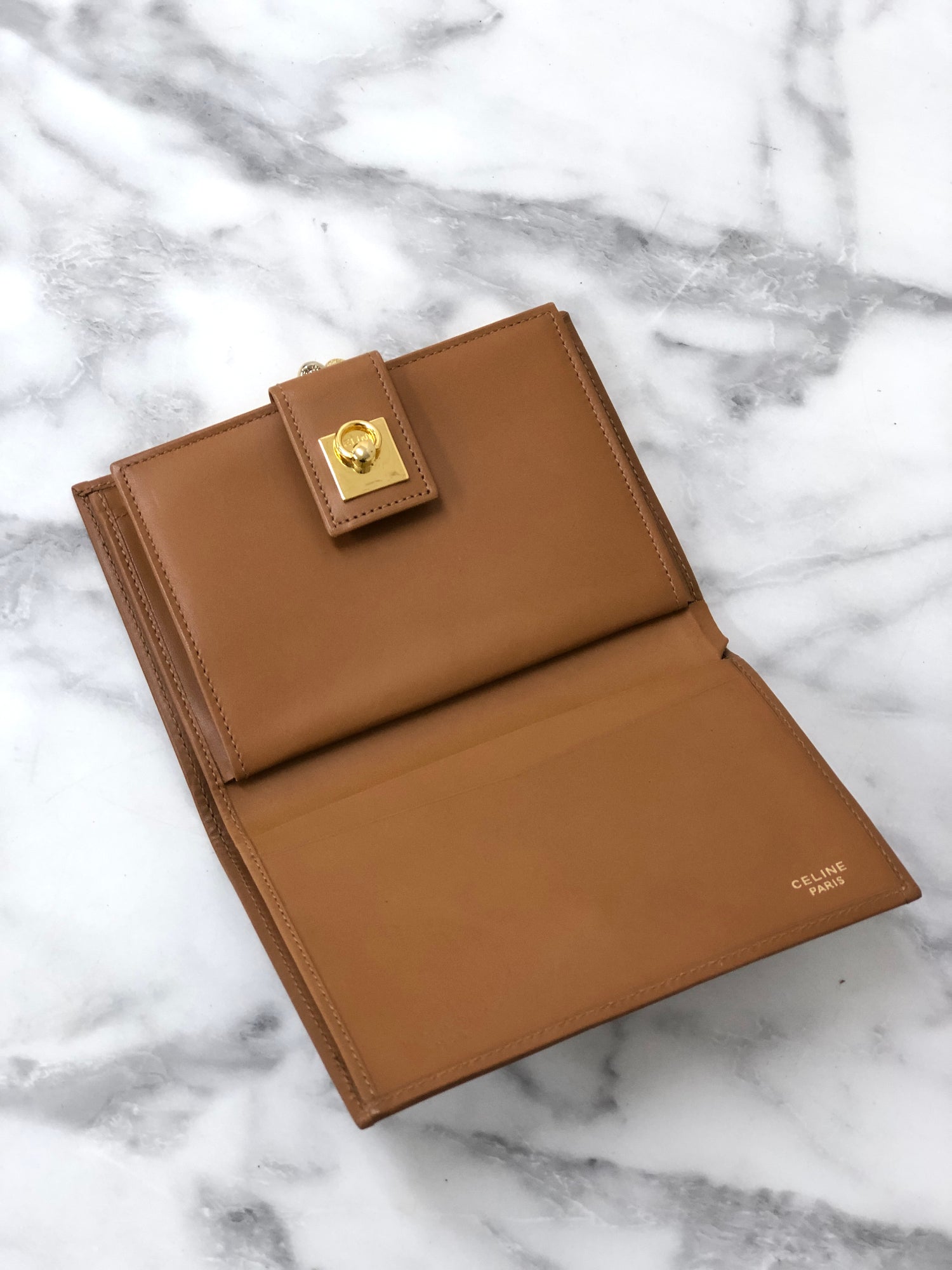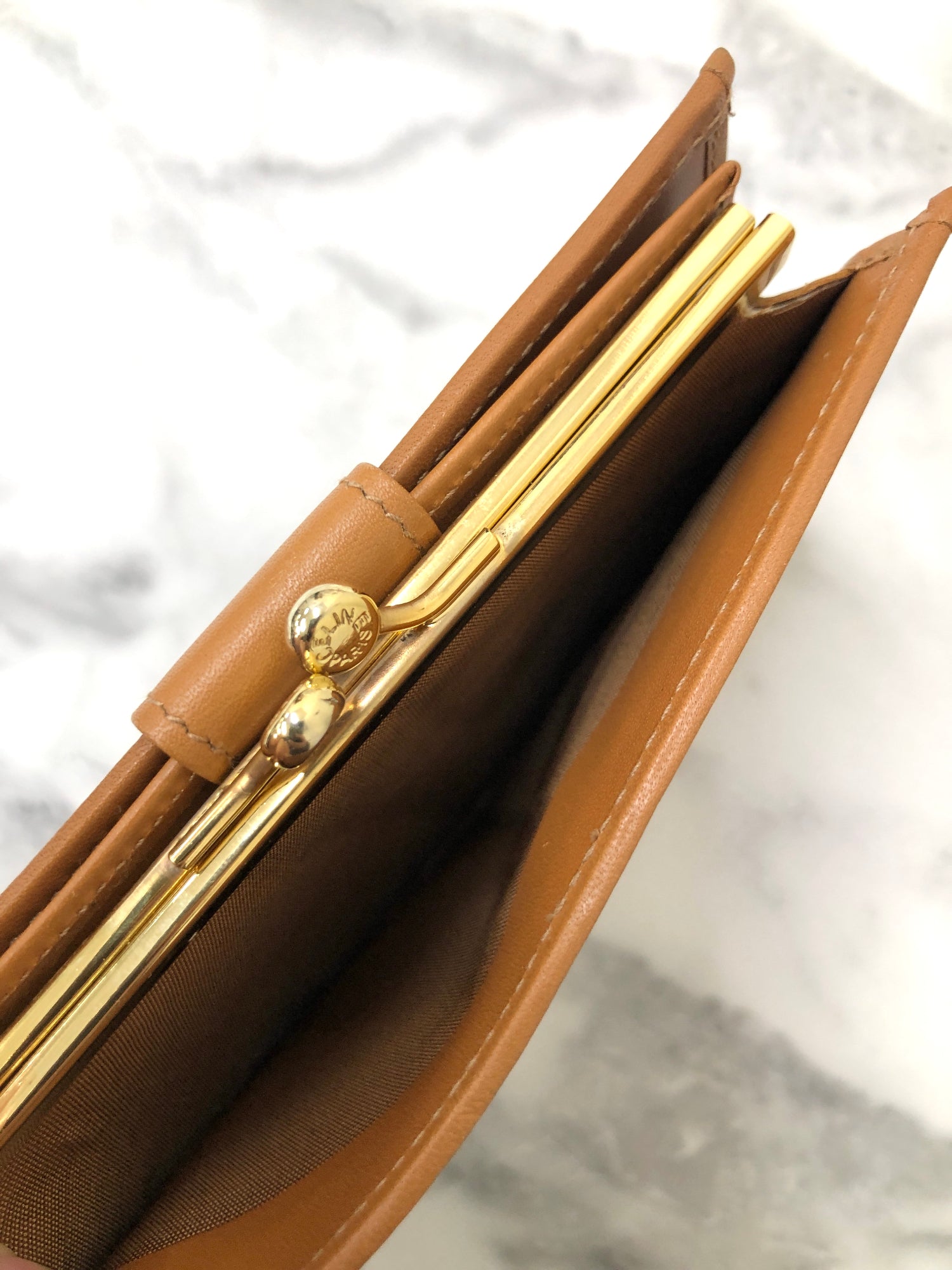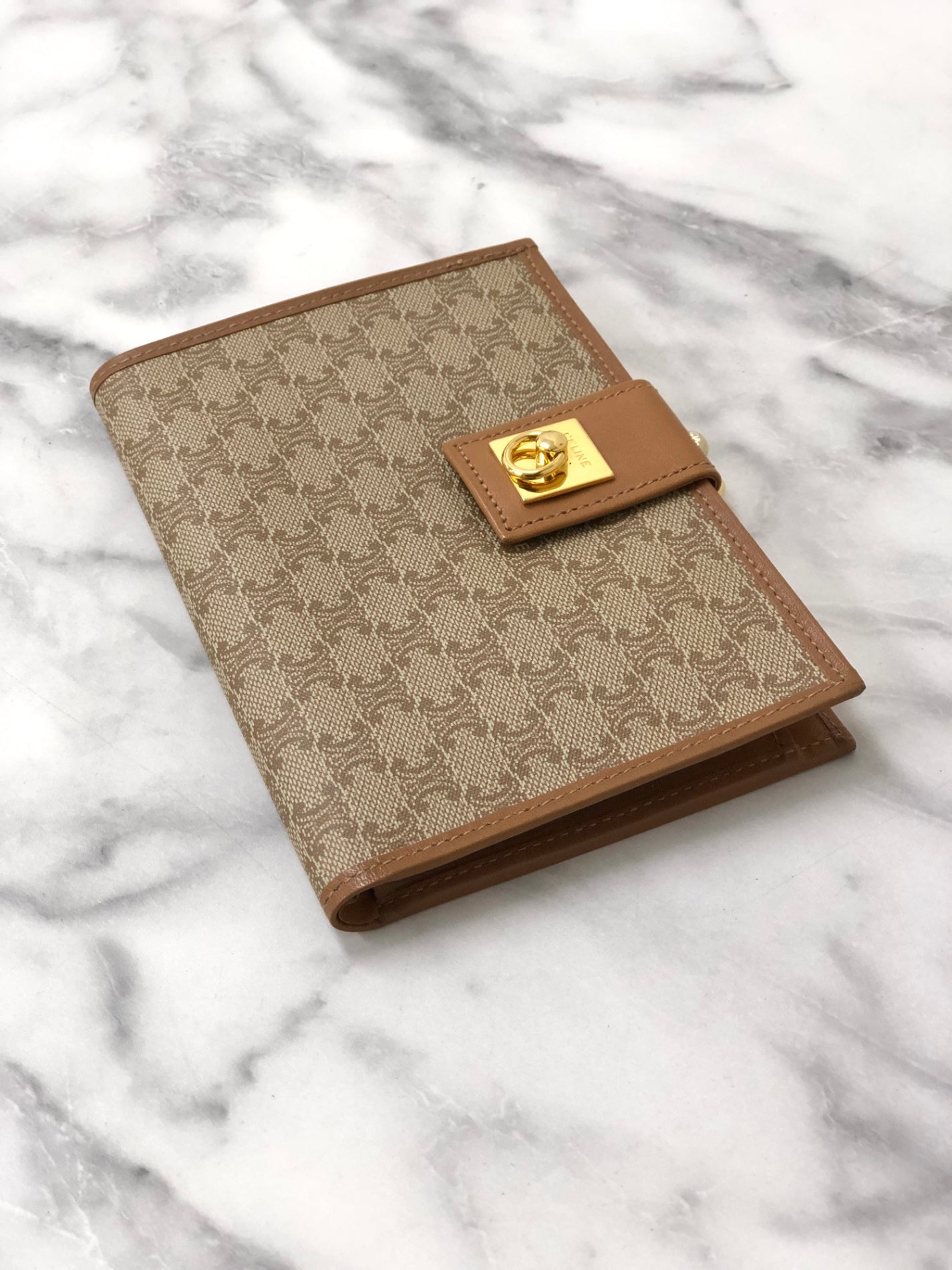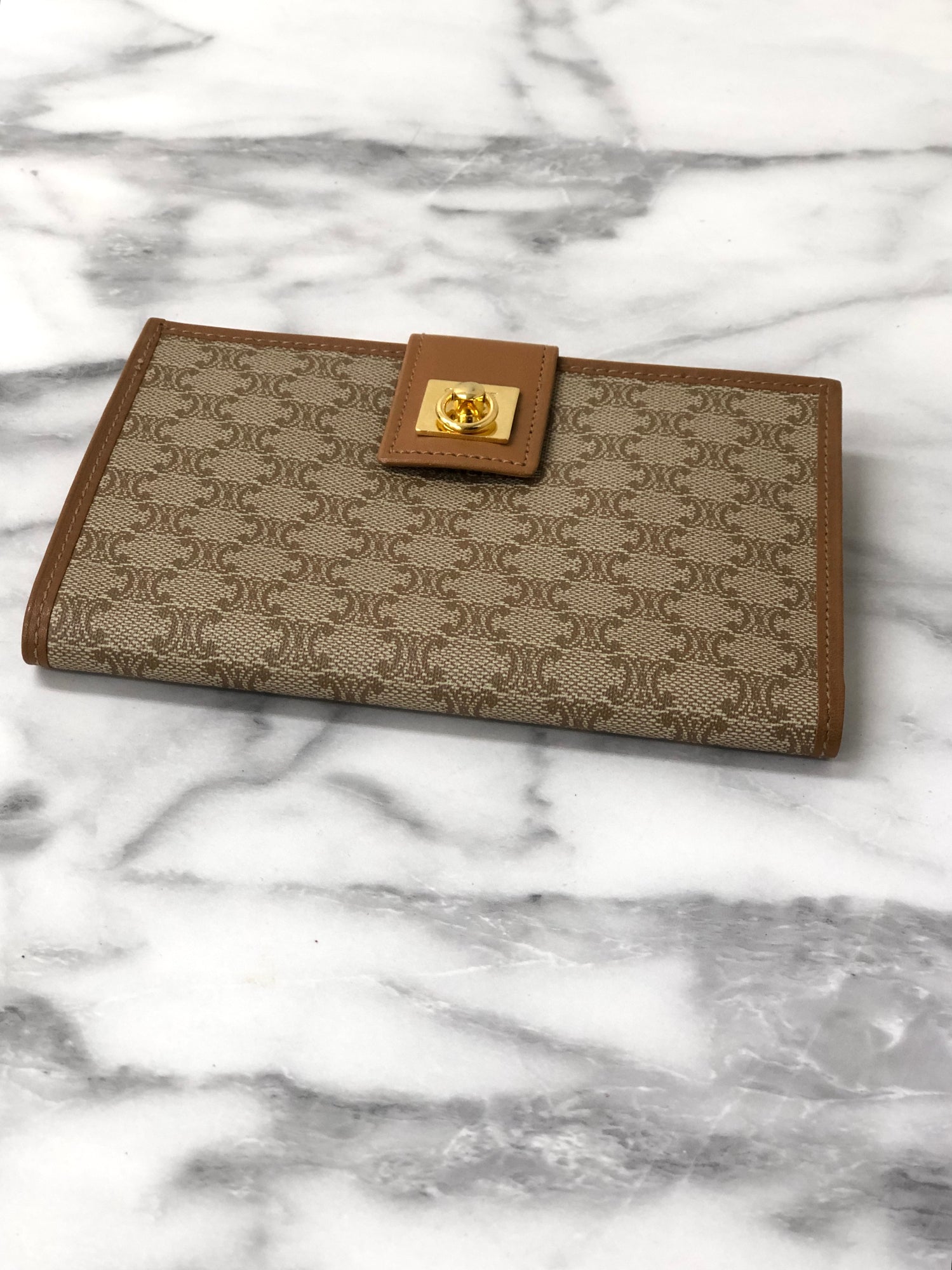 CELINE Macadam Gancini Metal Clasp Folded Wallet Beige Vintage 68d5ek