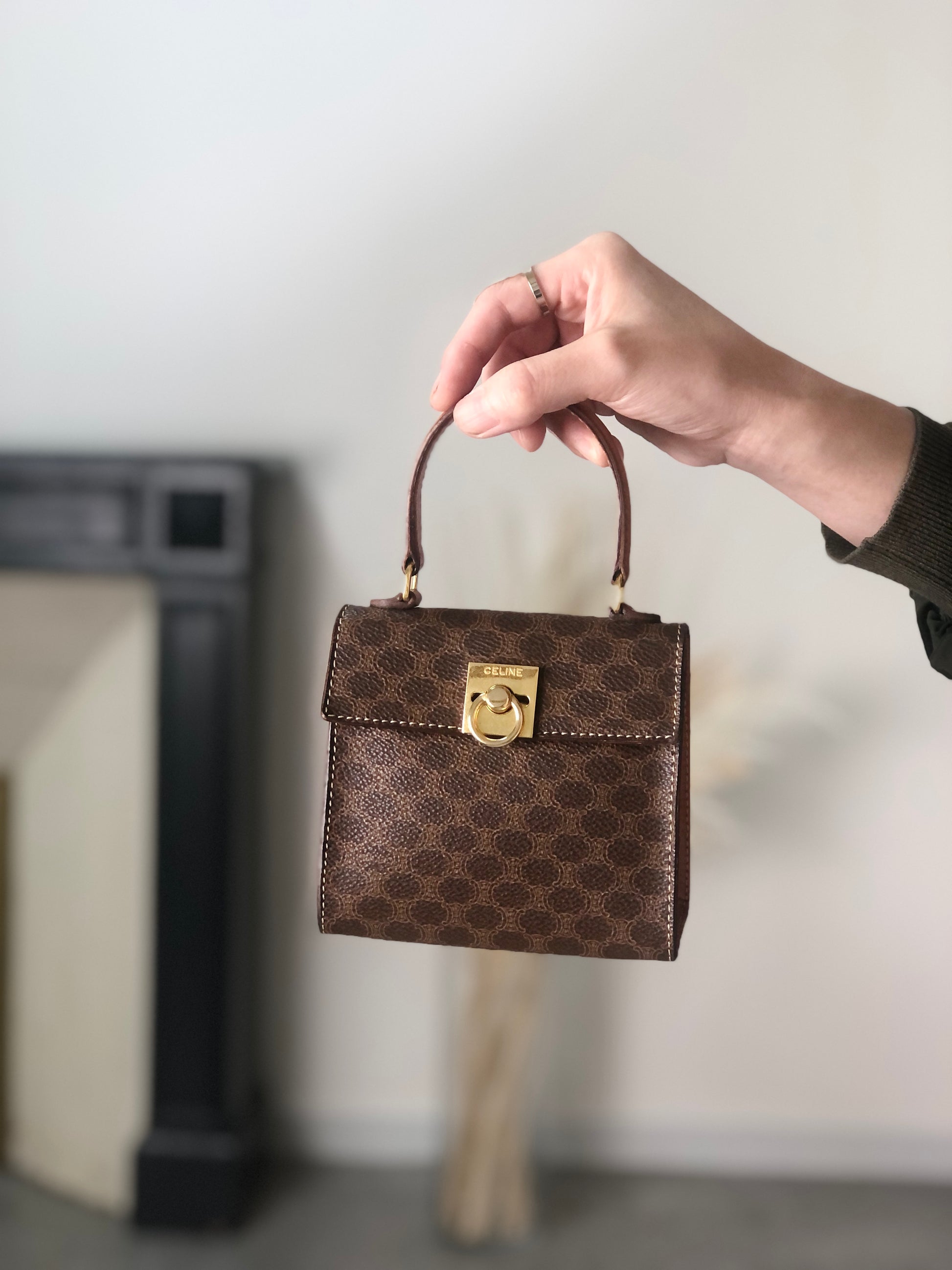 CELINE Macadam Gancini Two-way Small Handbag Shoulder bag Brown Vintage 7xvdb2