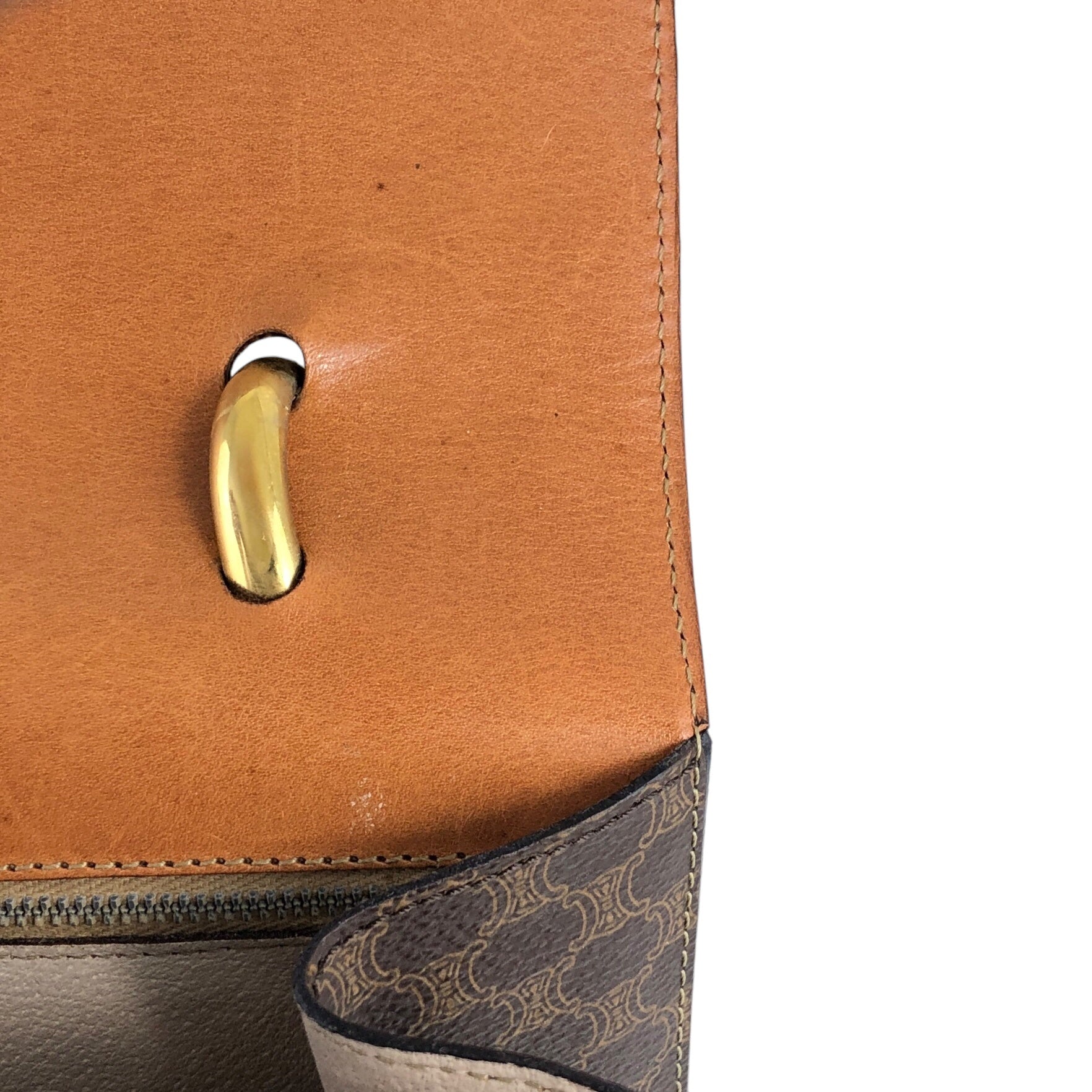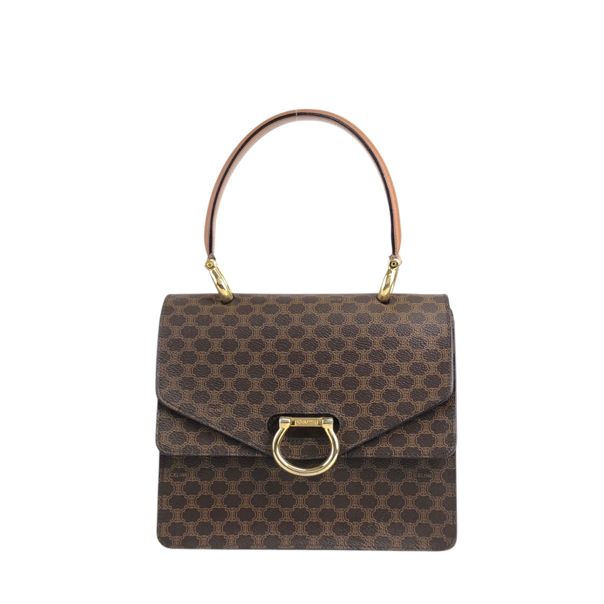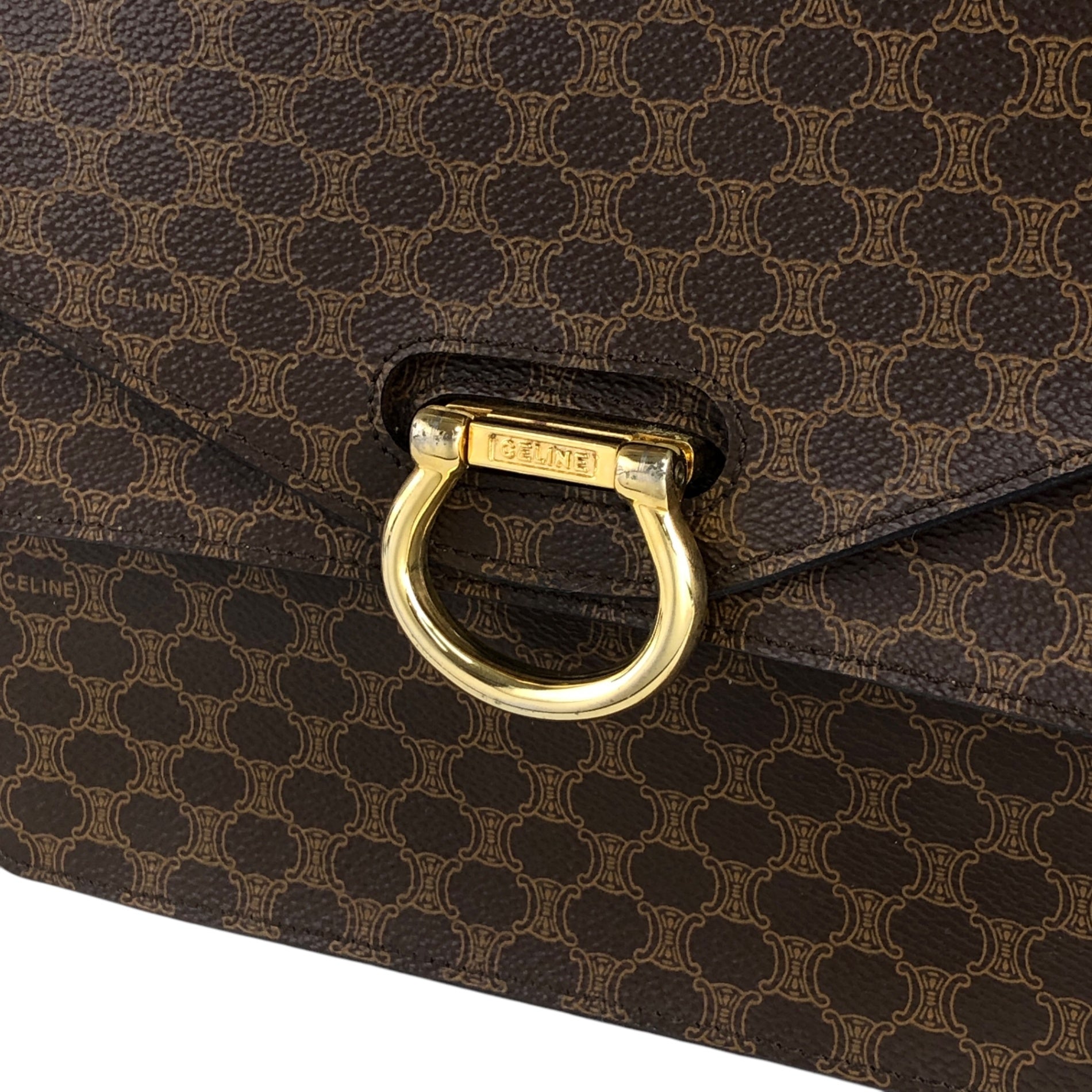 CELINE Macadam Horse Bit Double Flap Top Handle Handbag Brown Vintage 6caaii