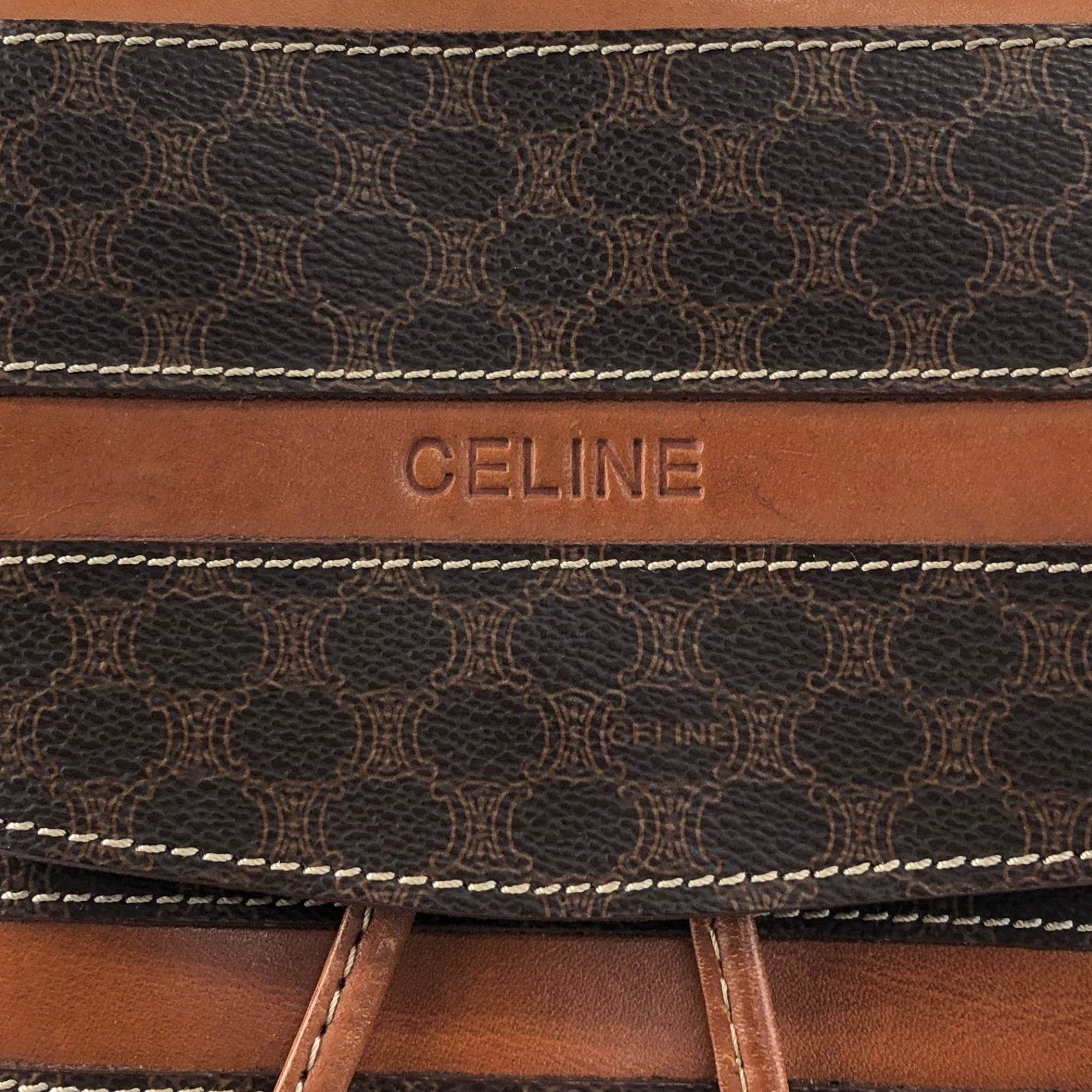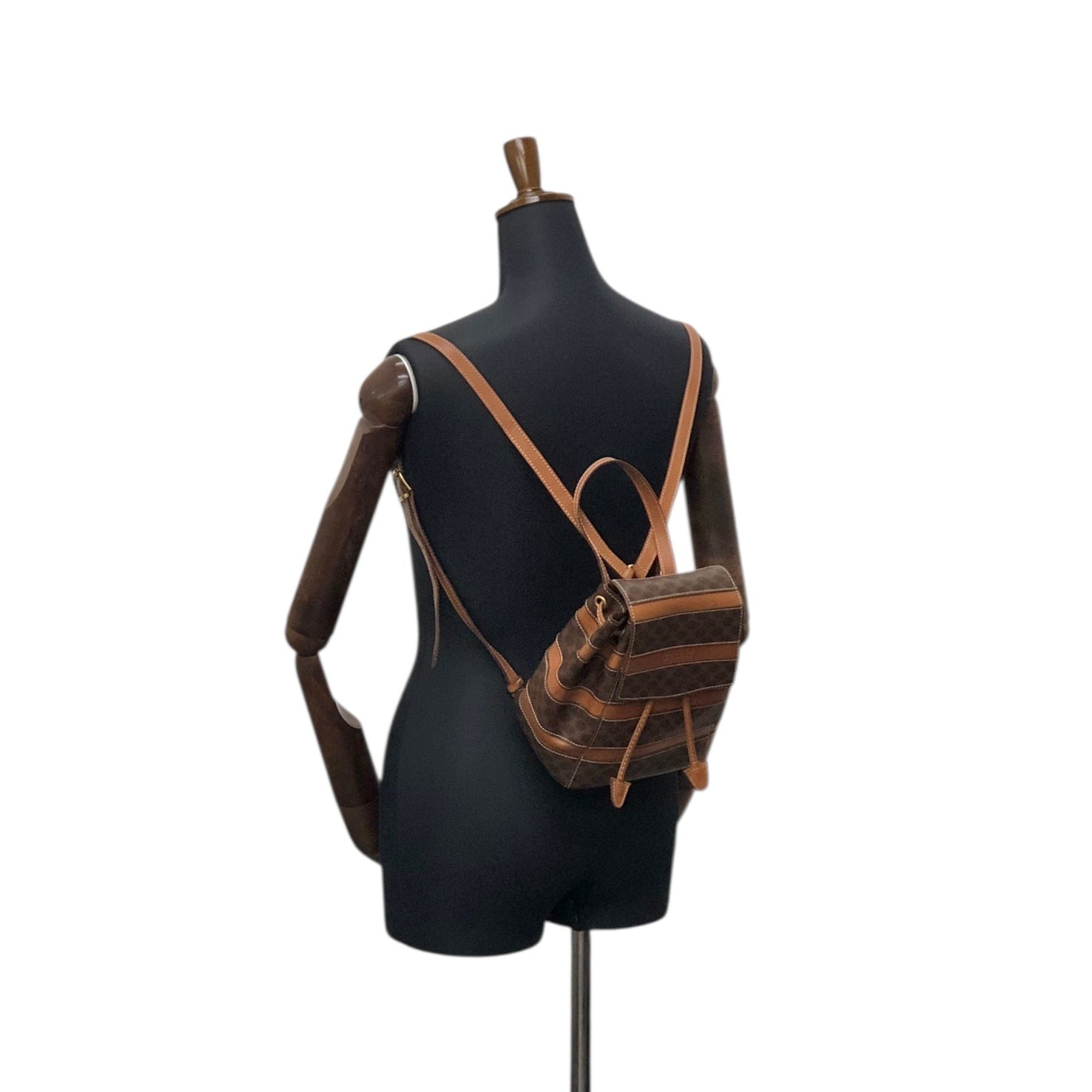CELINE Macadam Logo Embossed Backpack Brown Vintage fbhpns