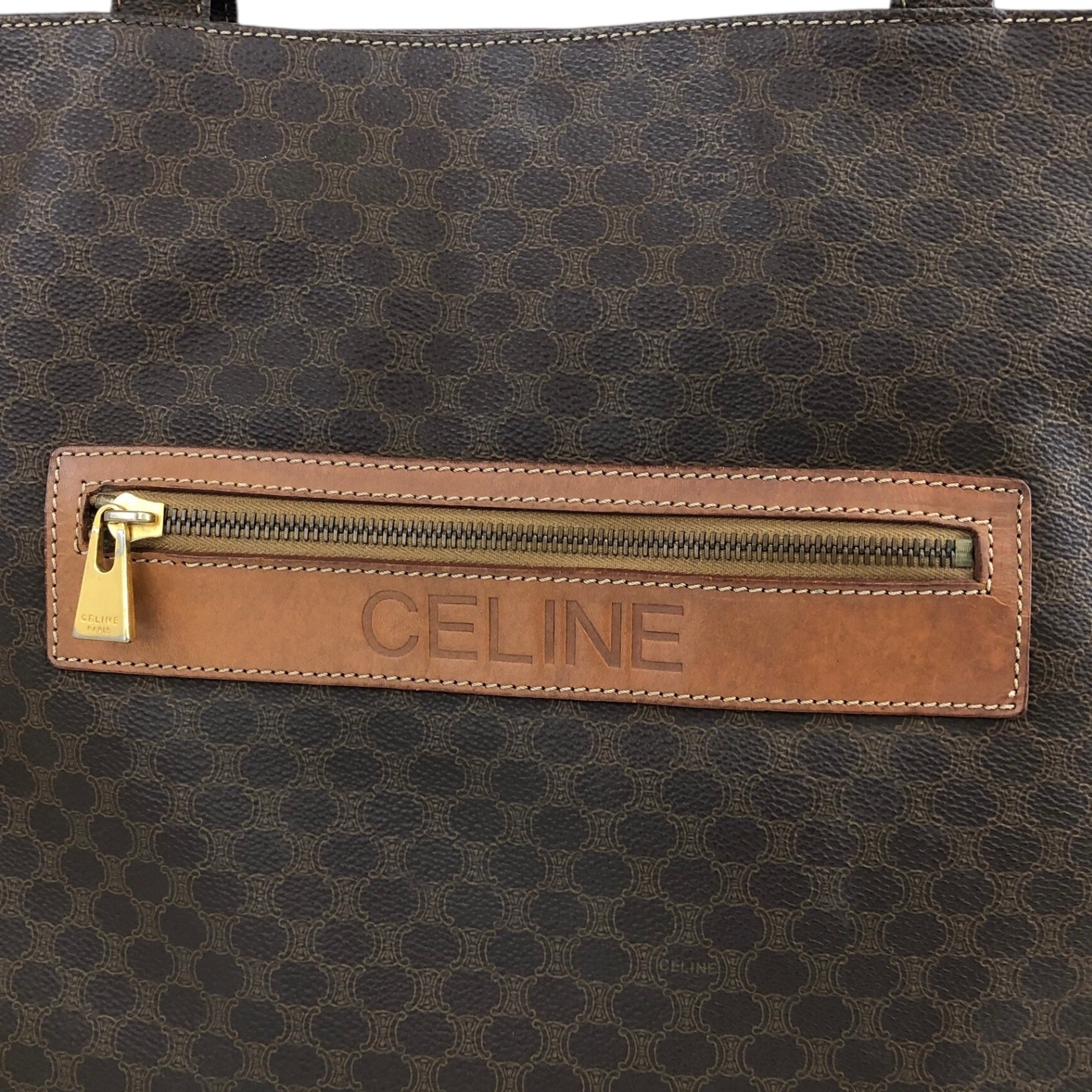 CELINE Macadam Logo Handbag Totebag Brown Vintage idxpny