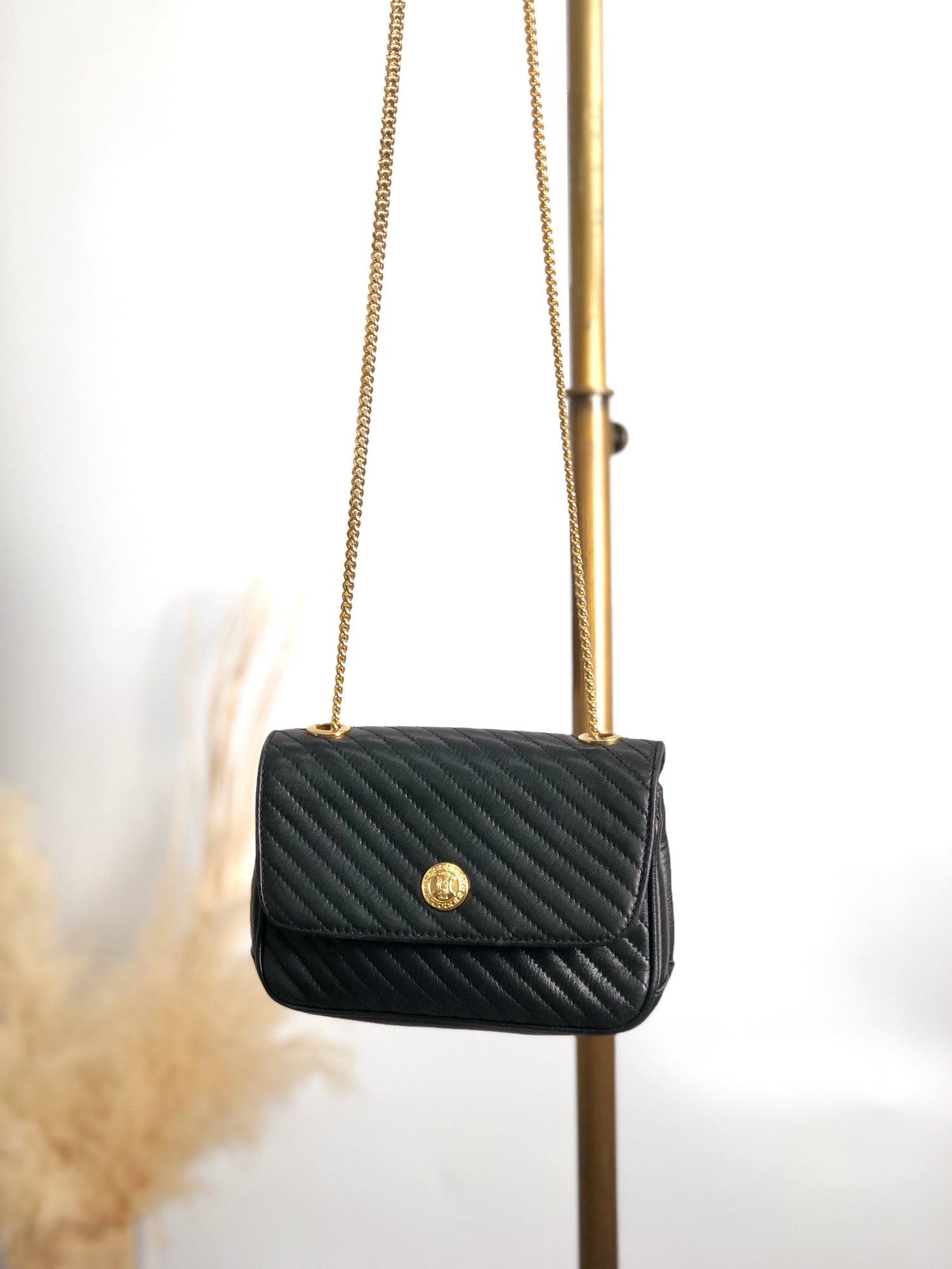 CELINE Triomphe Chain Shoulder bag Black Vintage pt5aps