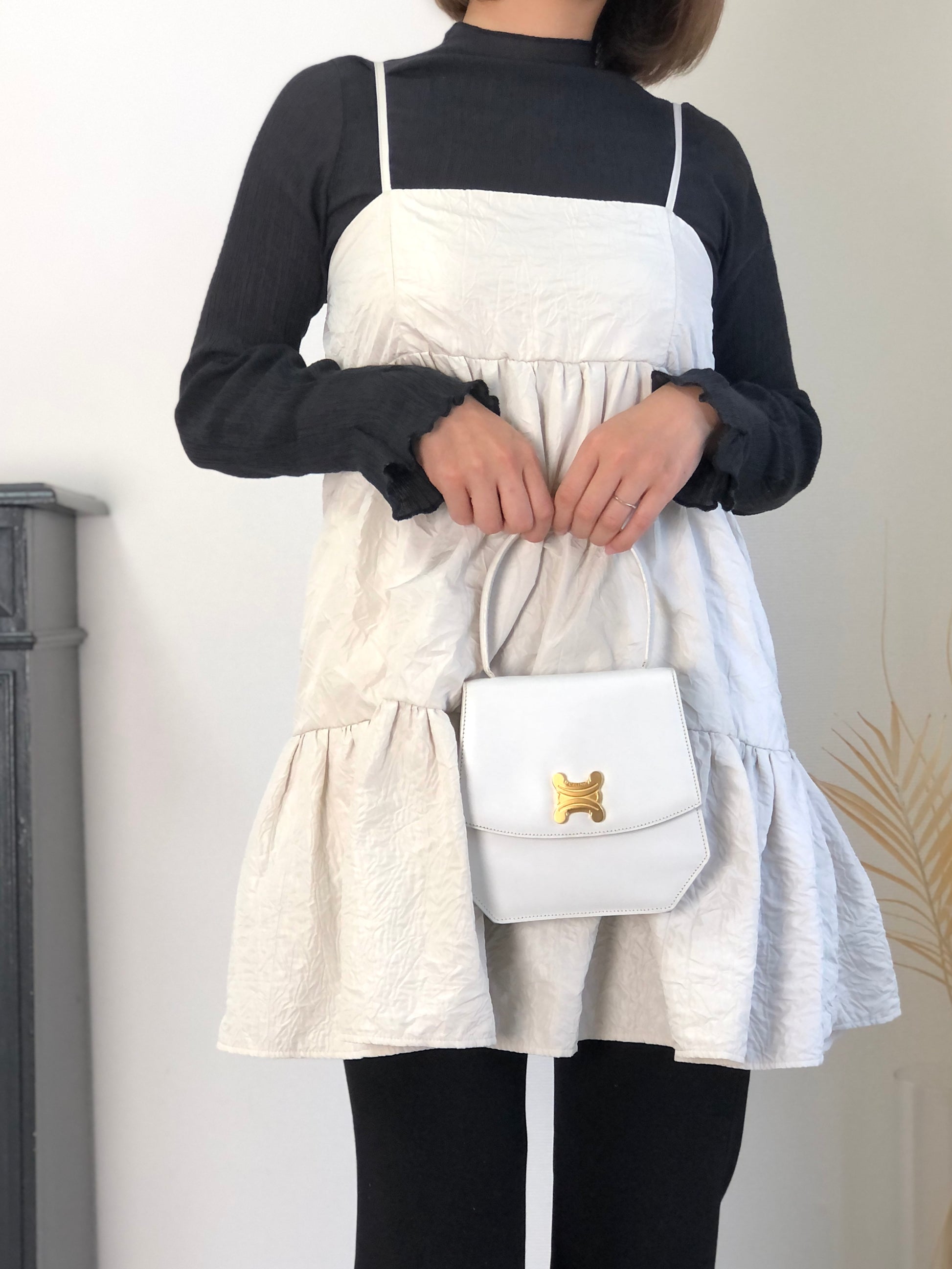 CELINE Triomphe Top Handle Handbag White Vintage 33tdem