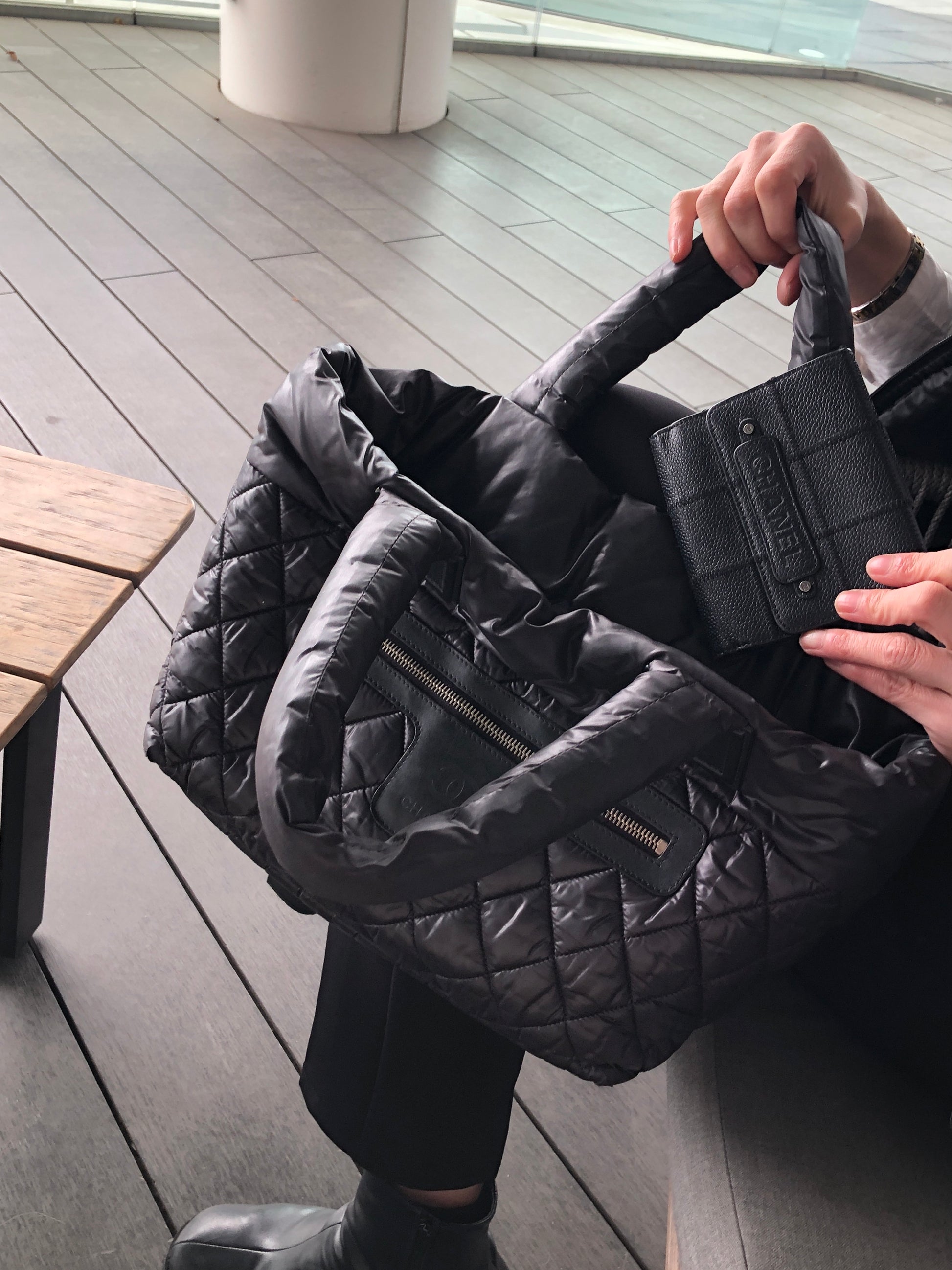 CHANEL Chocolate Bar Folded Wallet Black Vintage 2r56zg