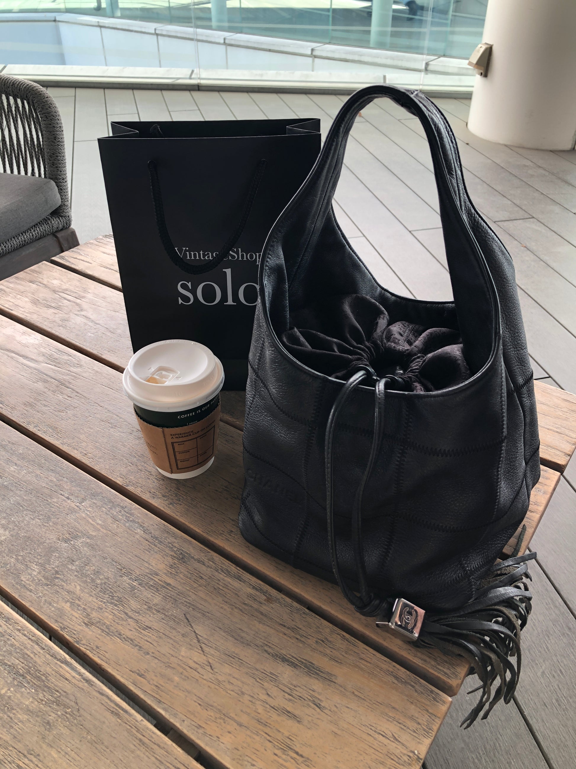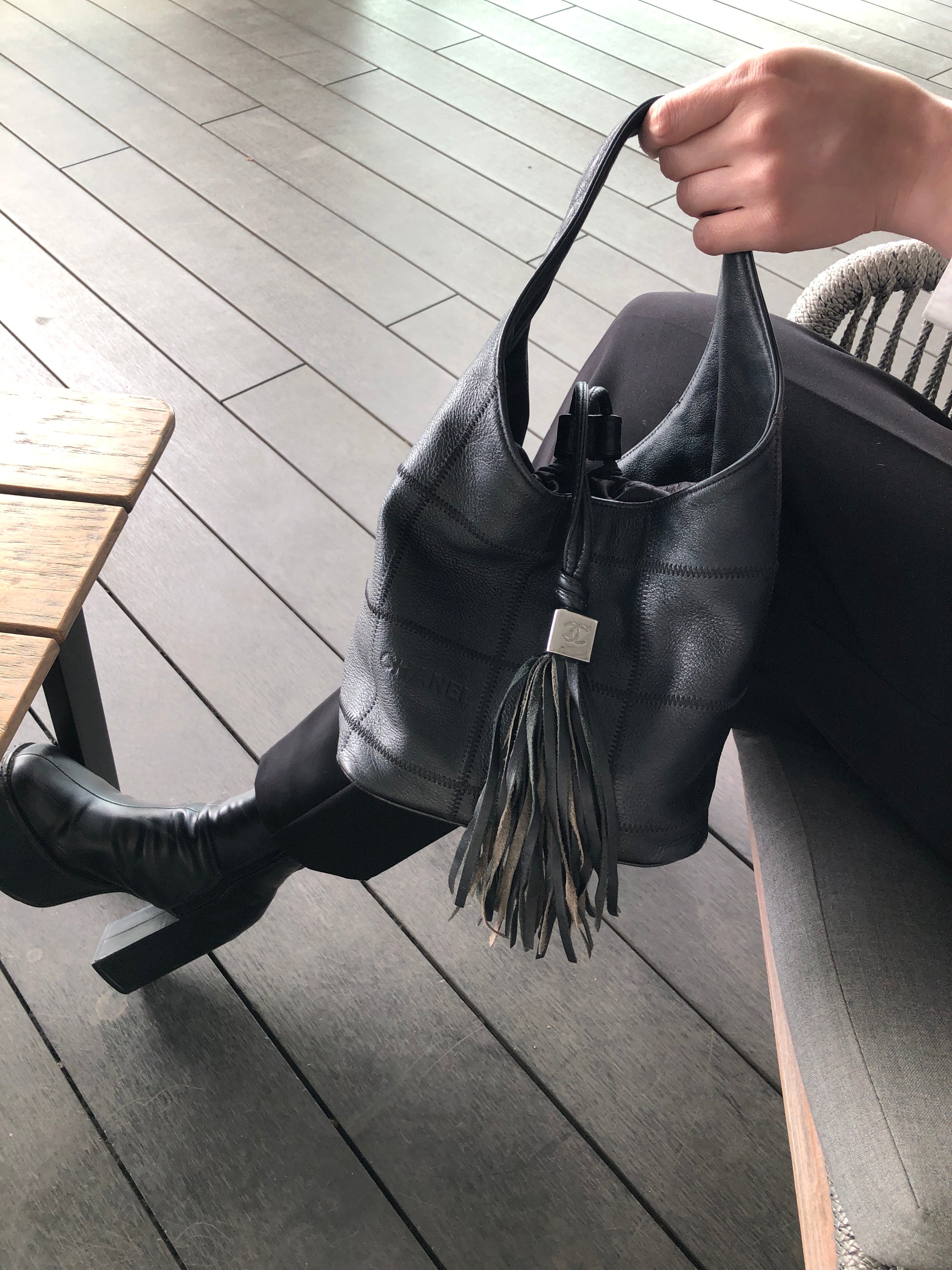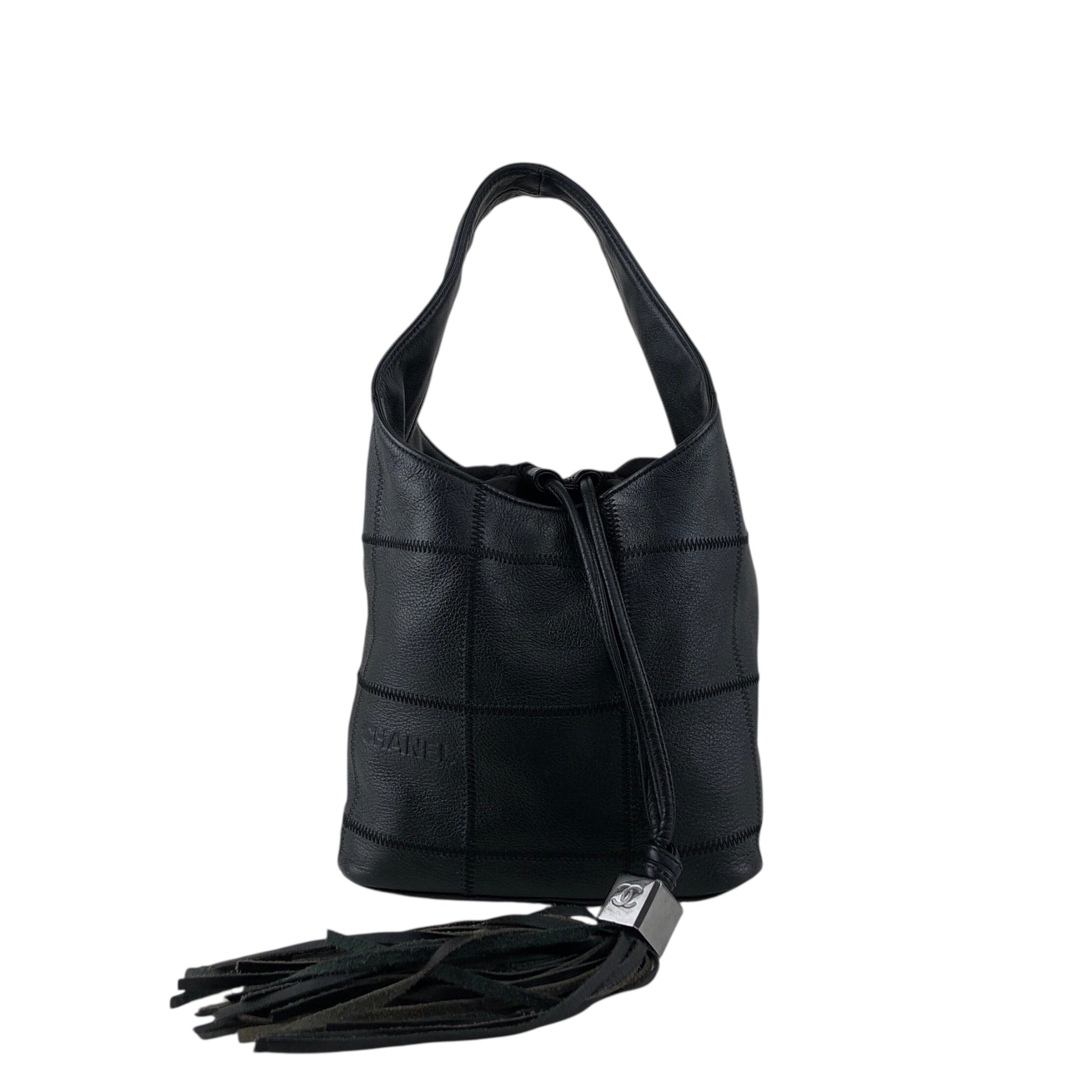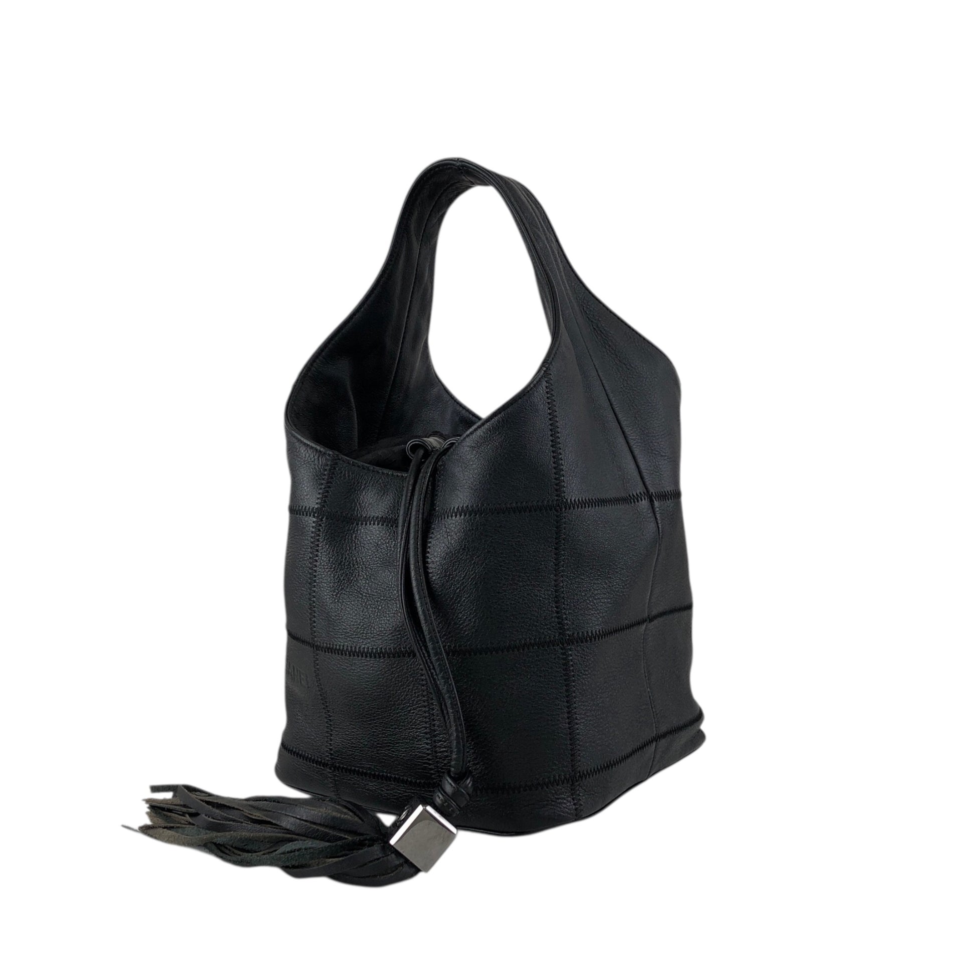 CHANEL Chocolate Bar Tassel Handbag Black A19981 Vintage fxmceh