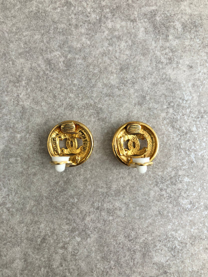 CHANEL Coco Mark Earrings Gold Vintage 2huxmb
