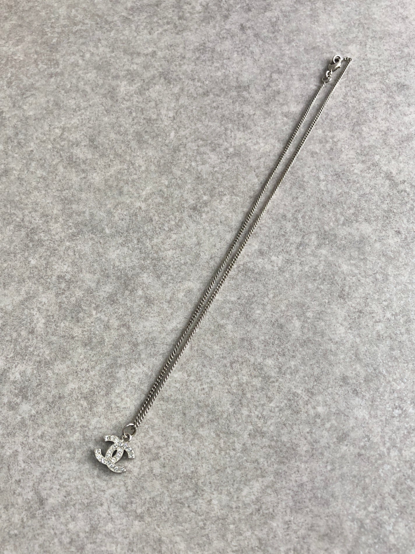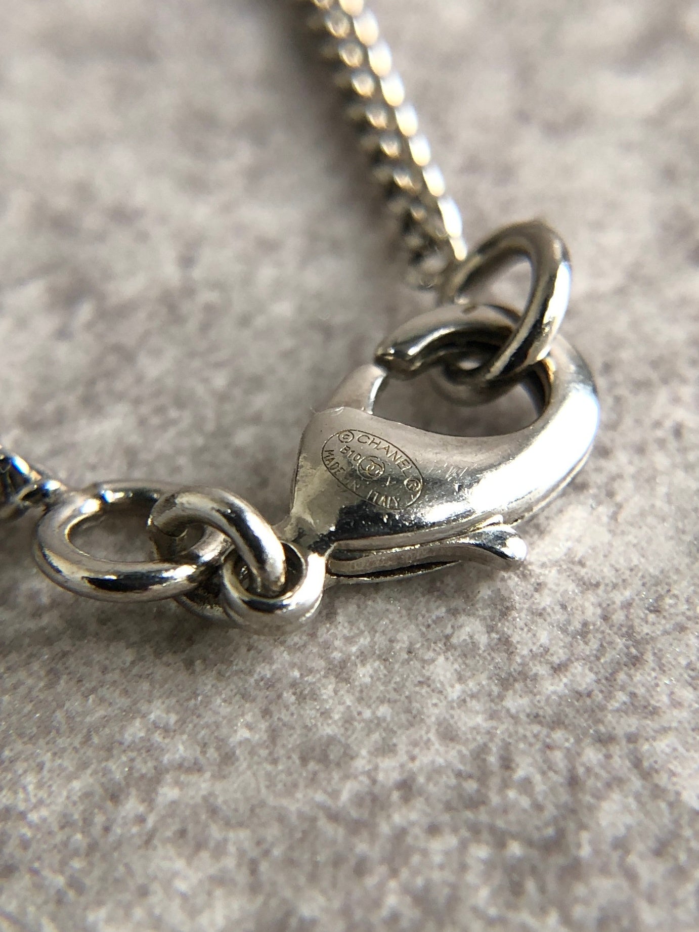 CHANEL Coco Mark Rhinestone Necklace Silver Vintage wsf6m8