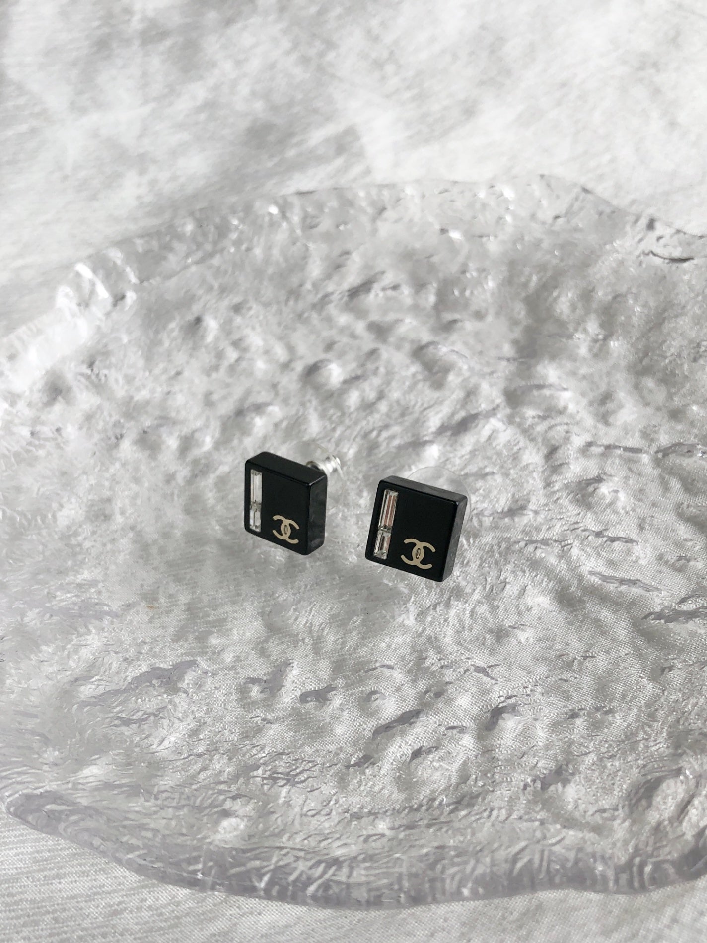 CHANEL Coco Mark Stone Pierced Black Vintage yg33jb