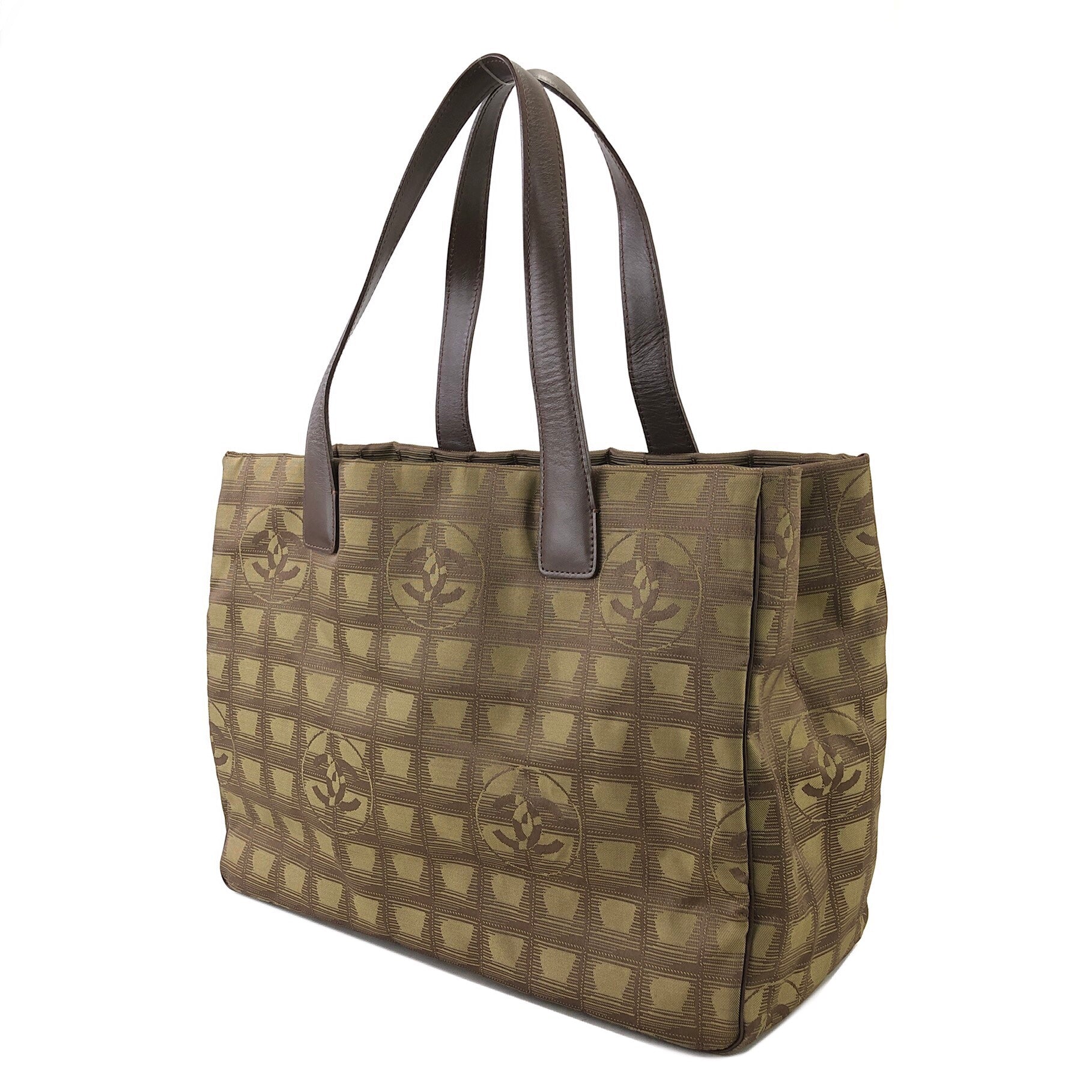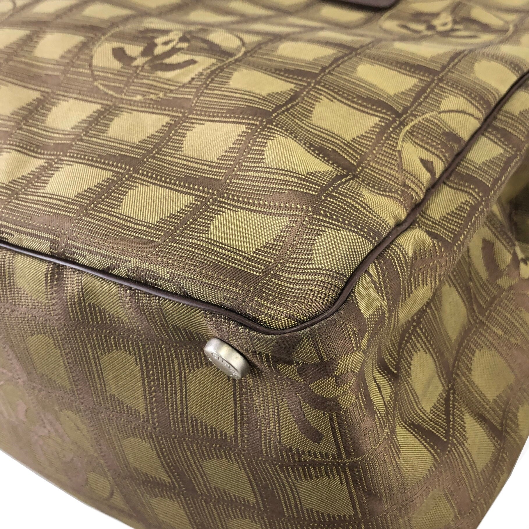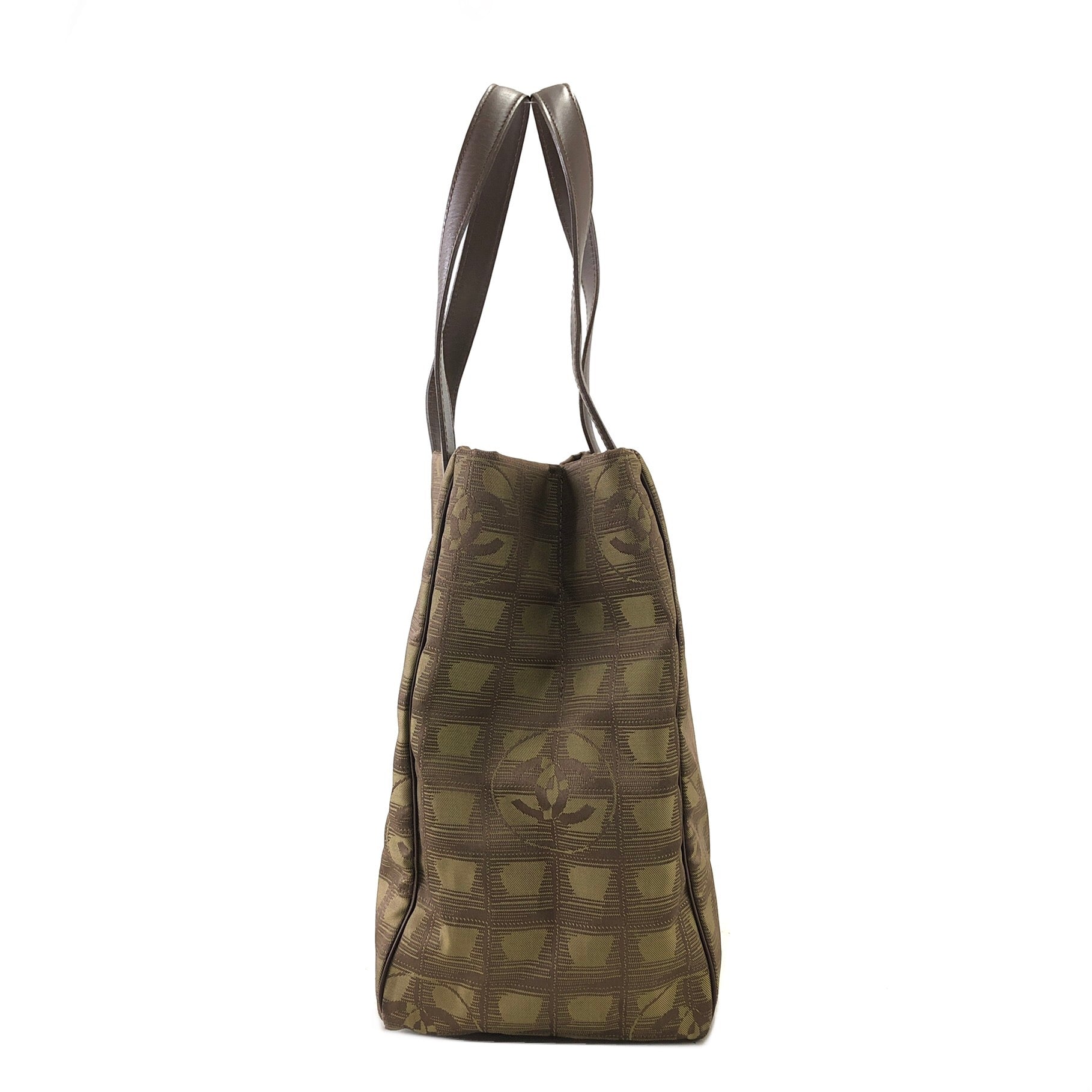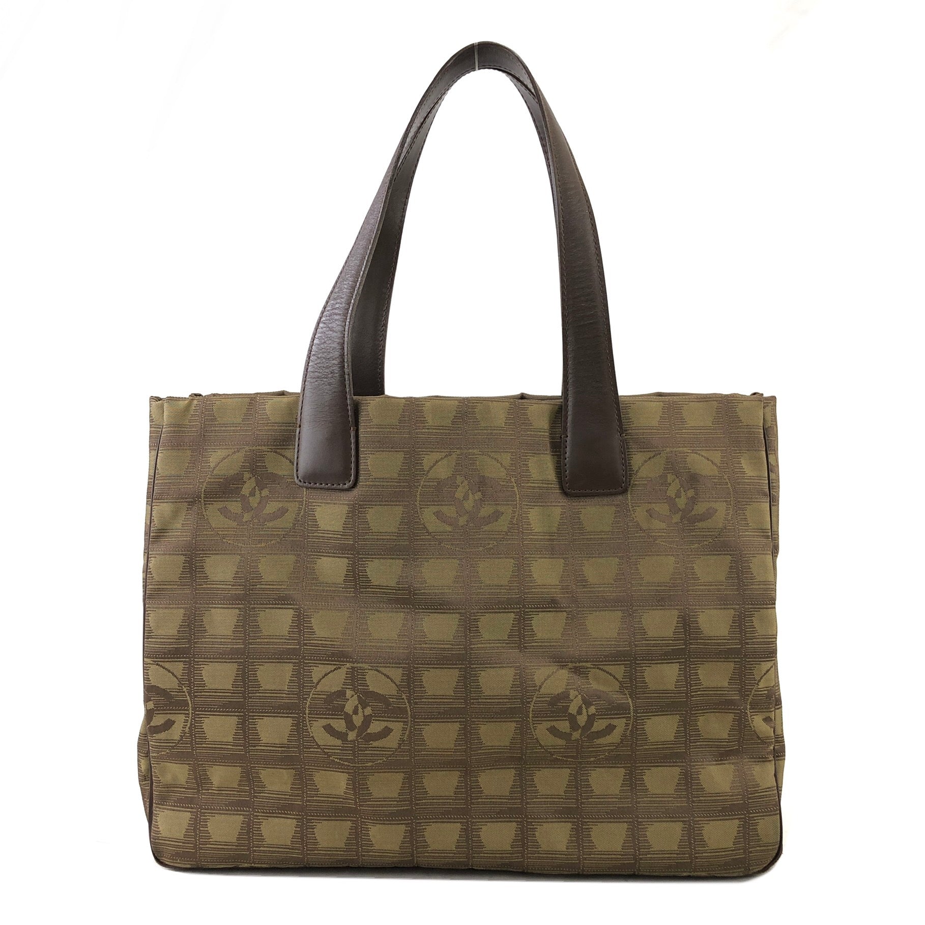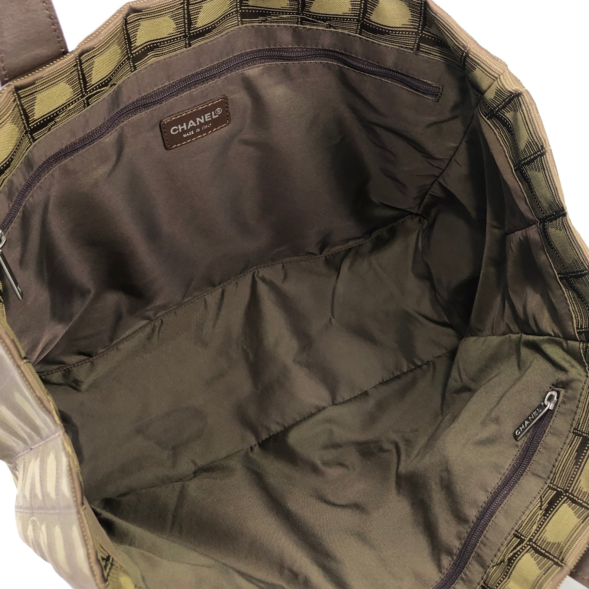 CHANEL New Travel Line Nylon Handbag Totebag Khaki Vintage hvx4g4