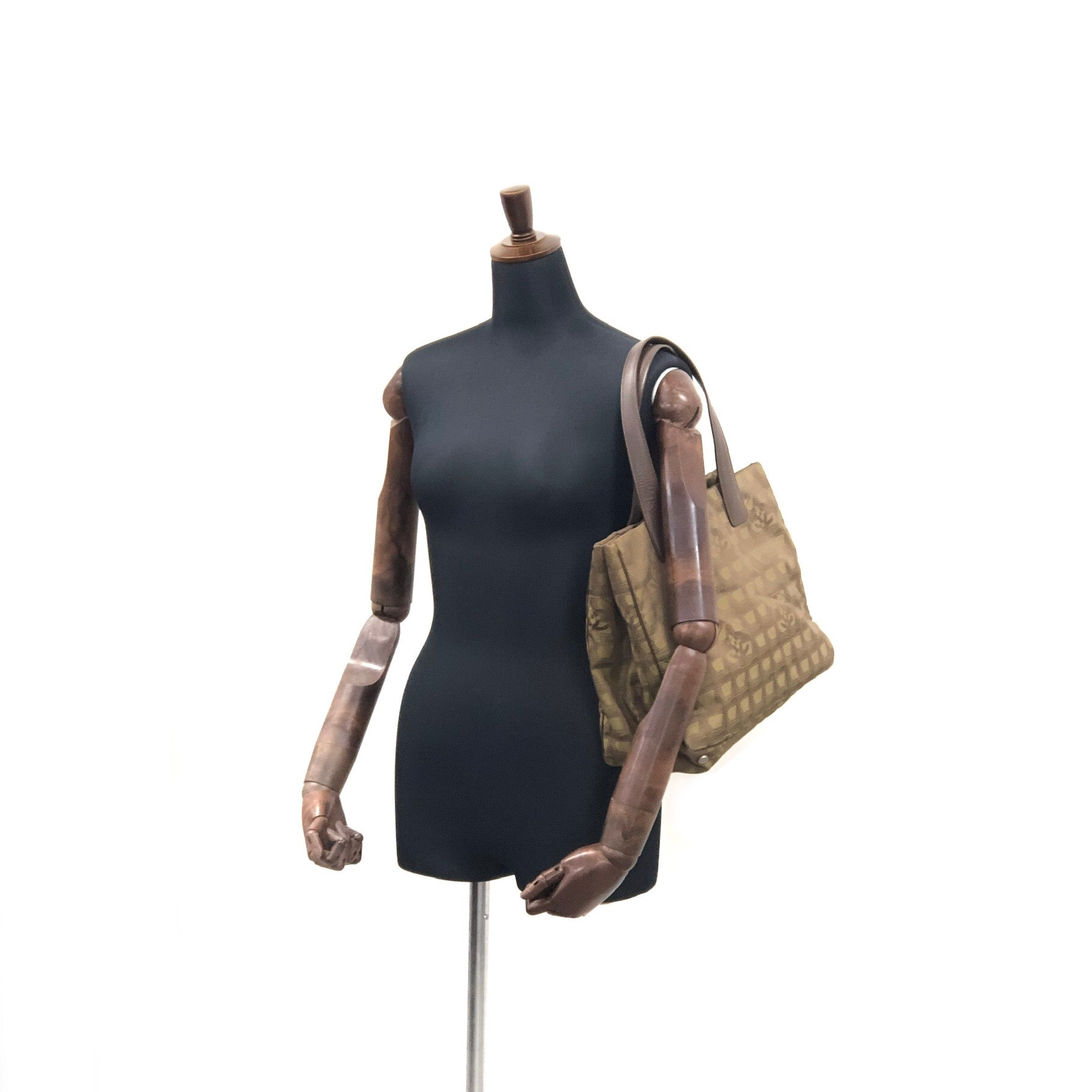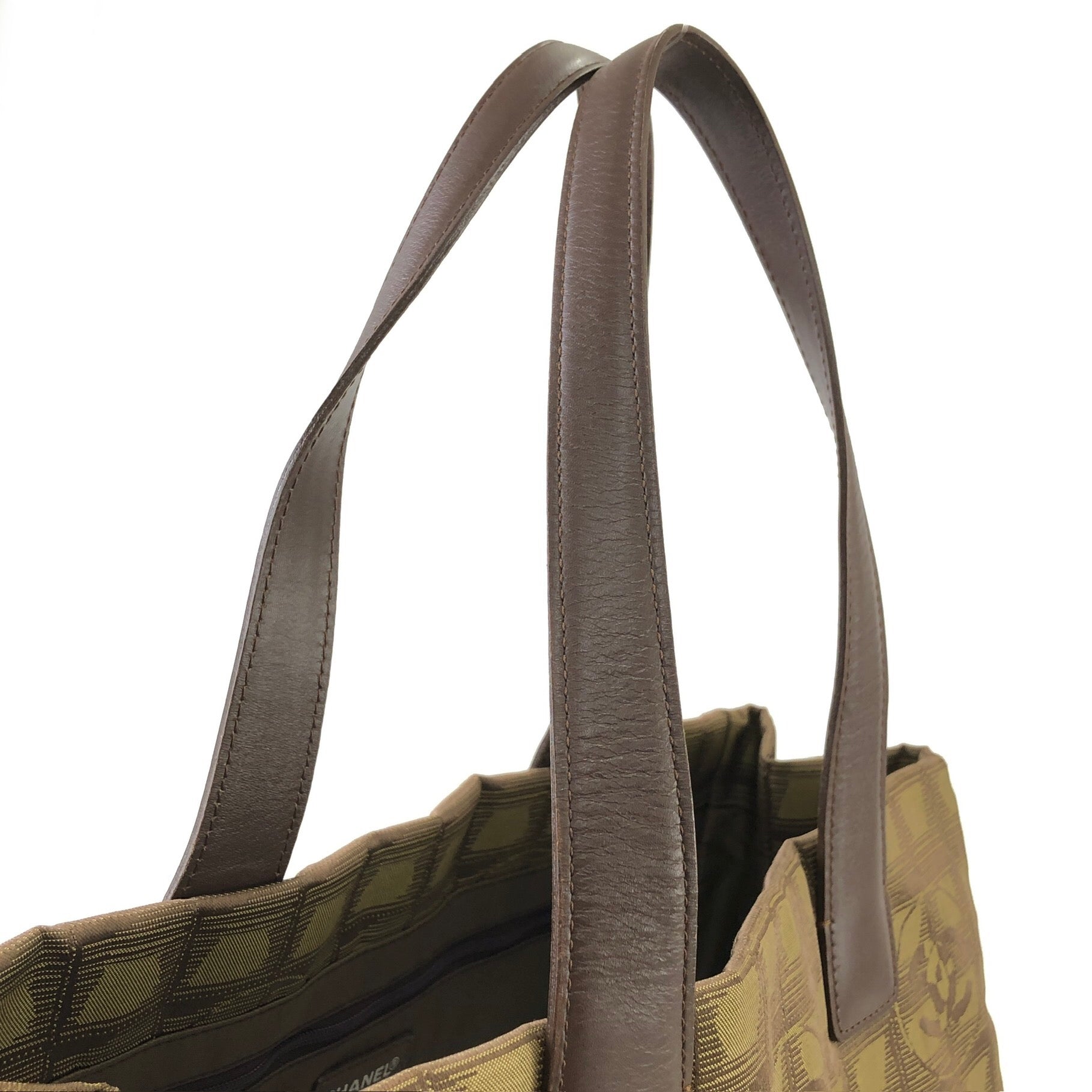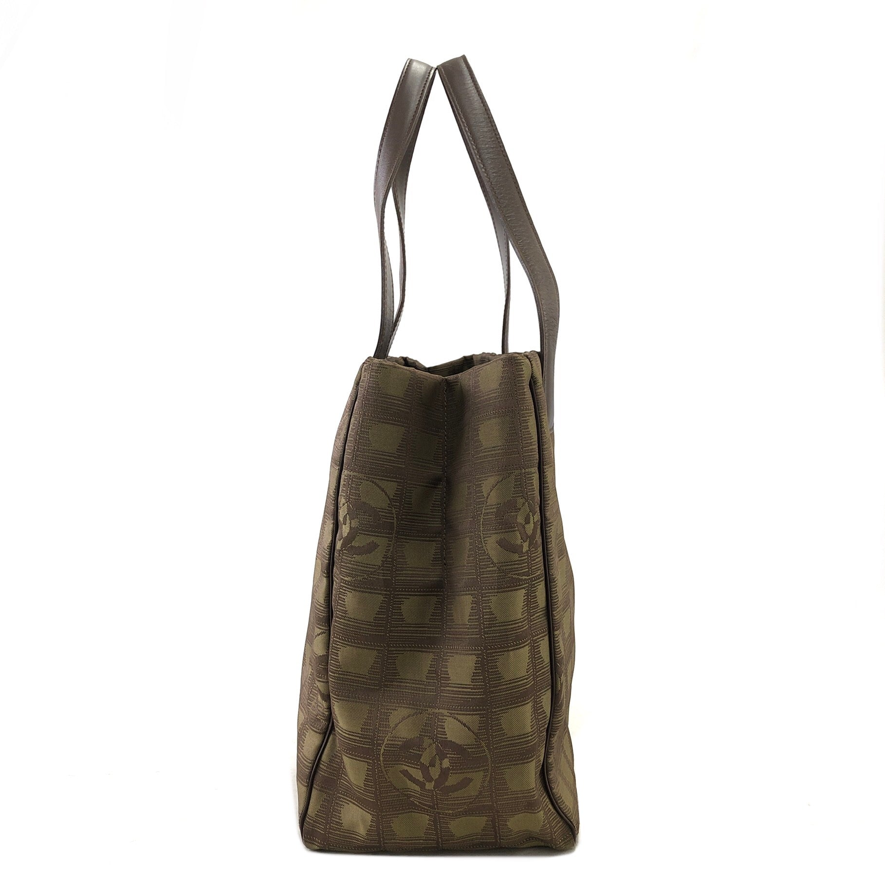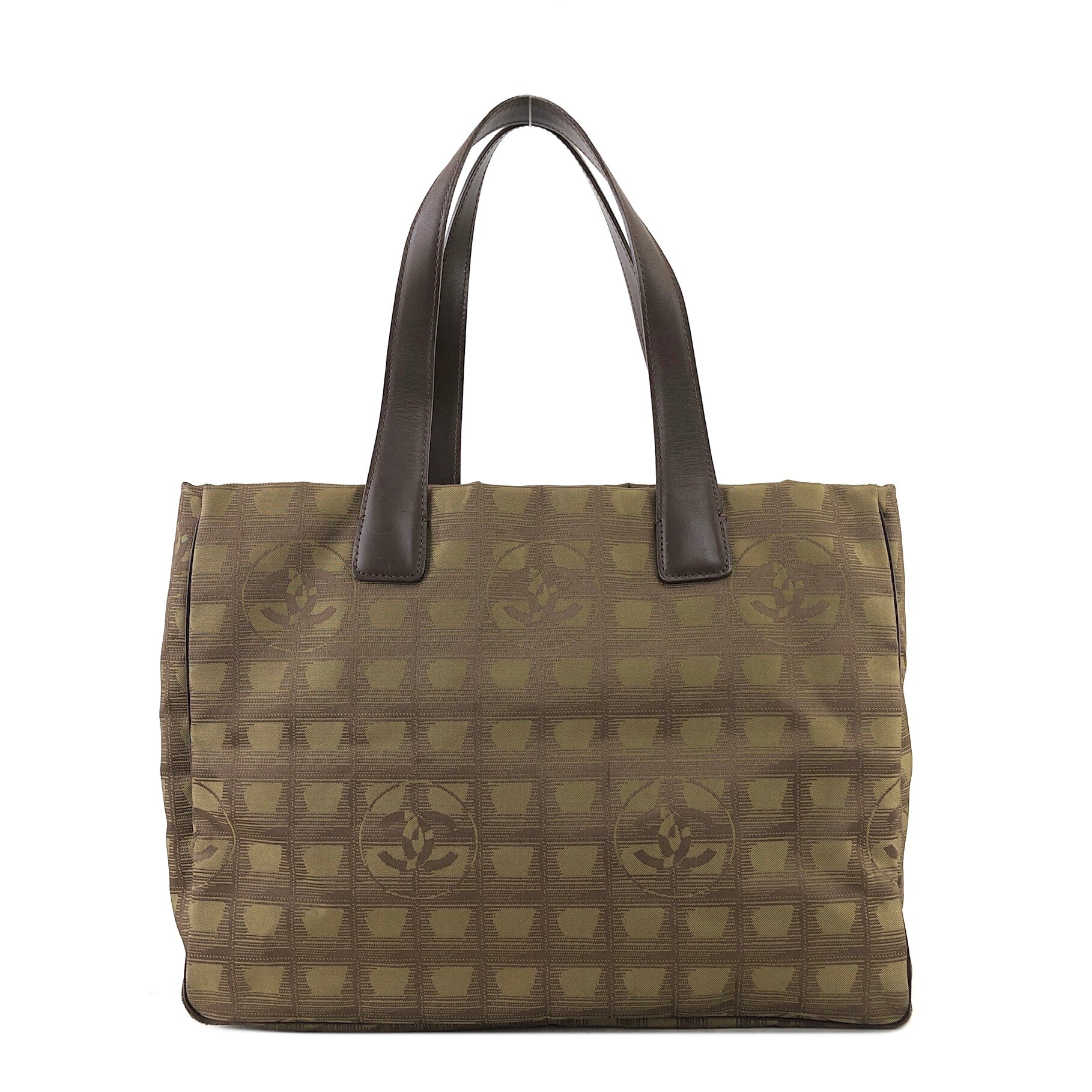 CHANEL New Travel Line Nylon Handbag Totebag Khaki Vintage hvx4g4