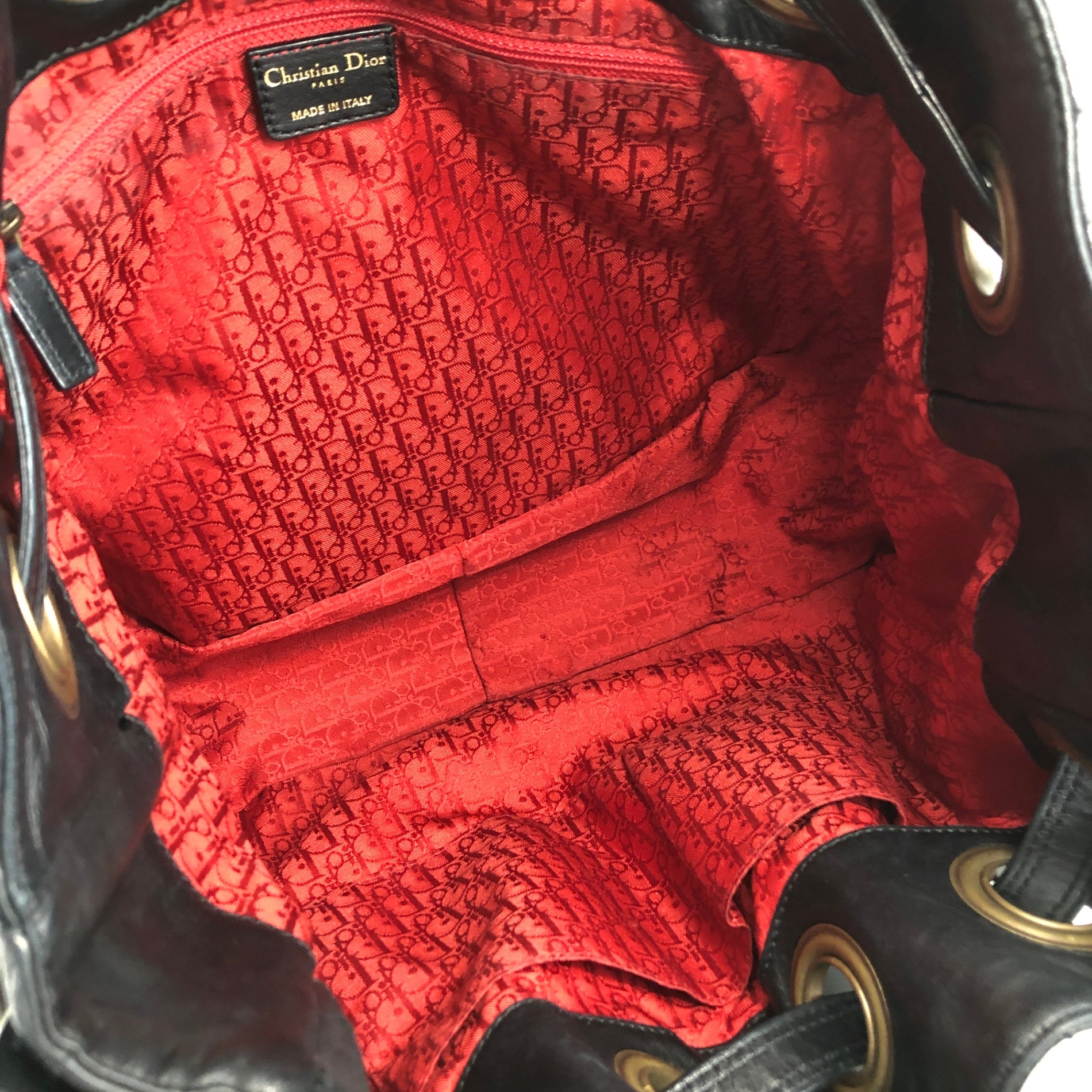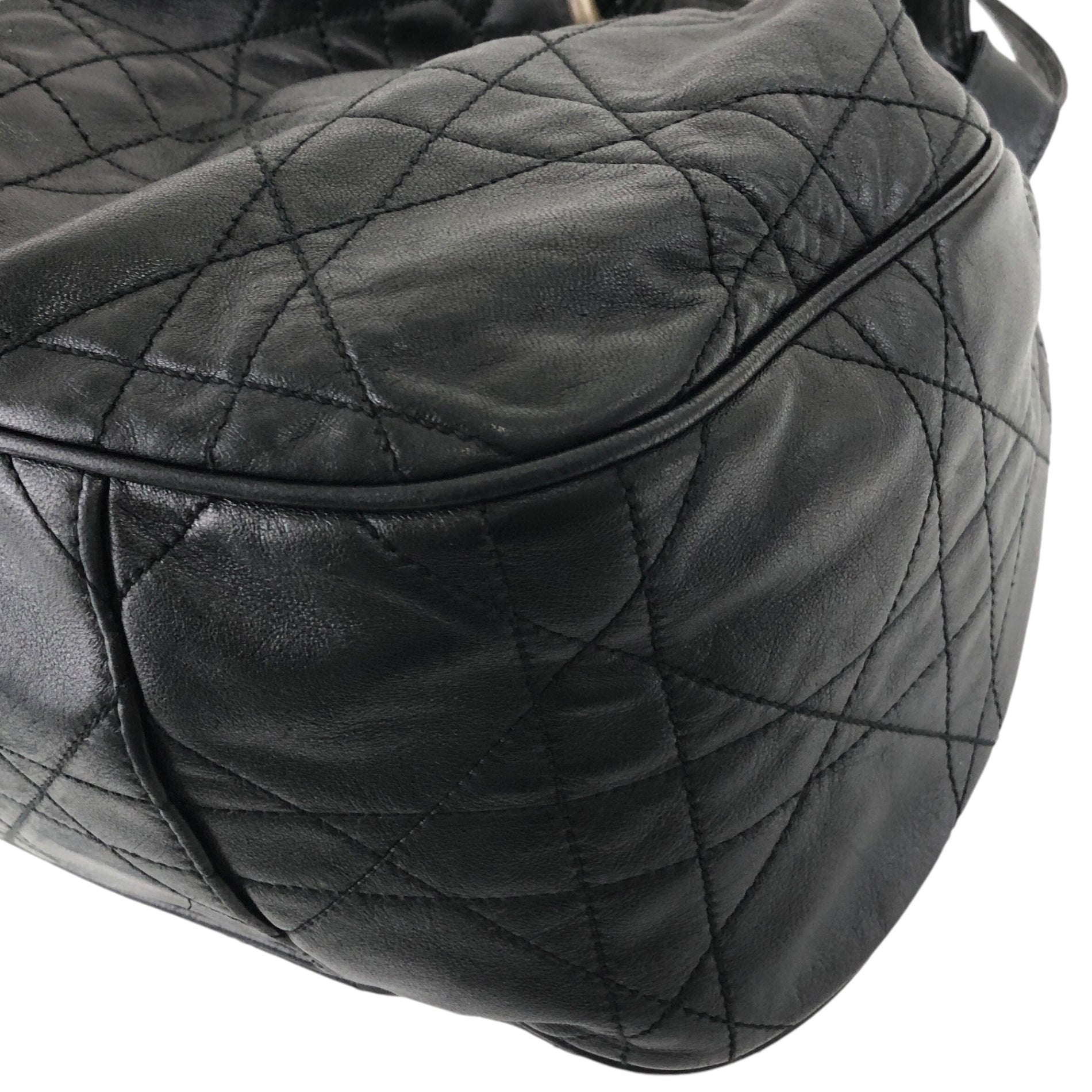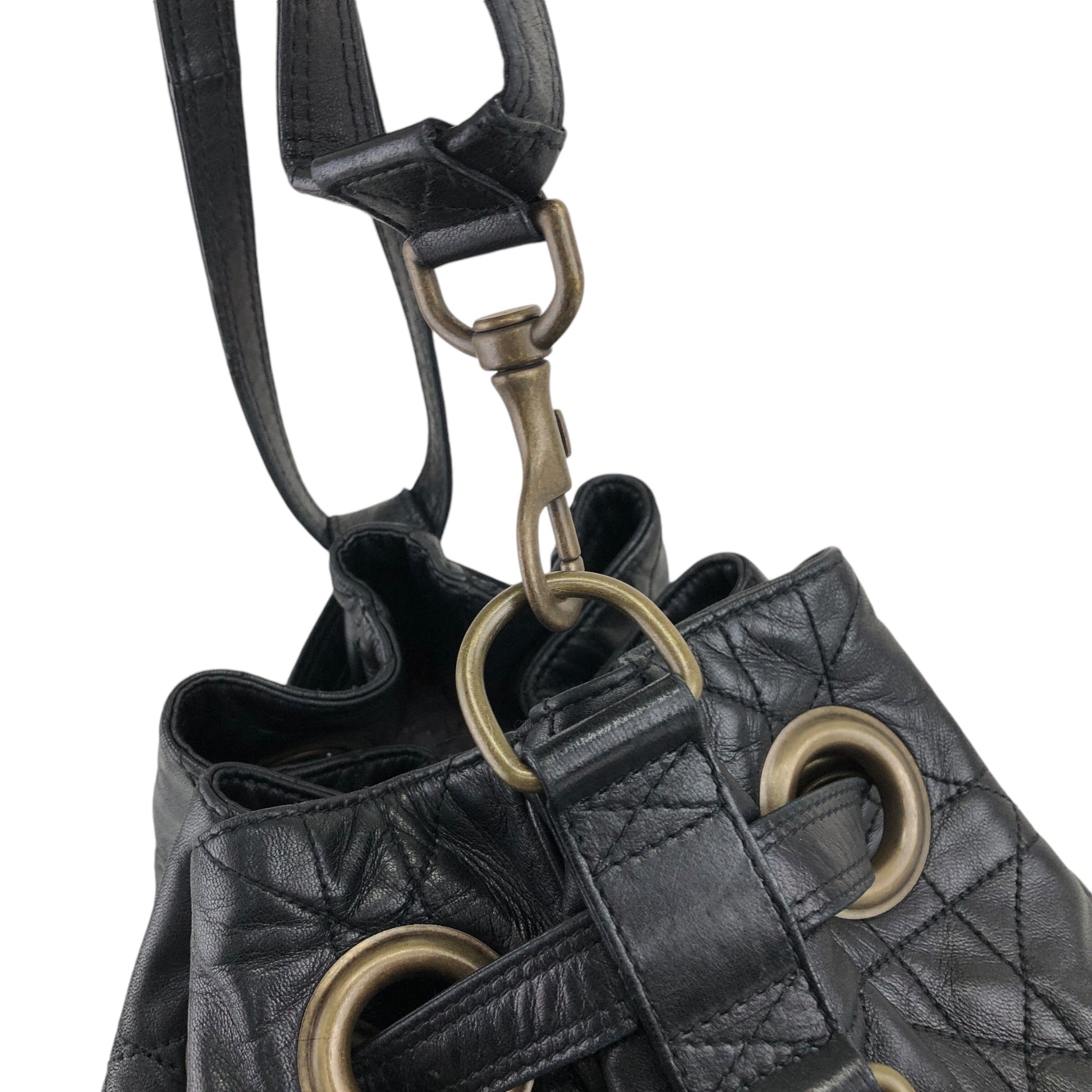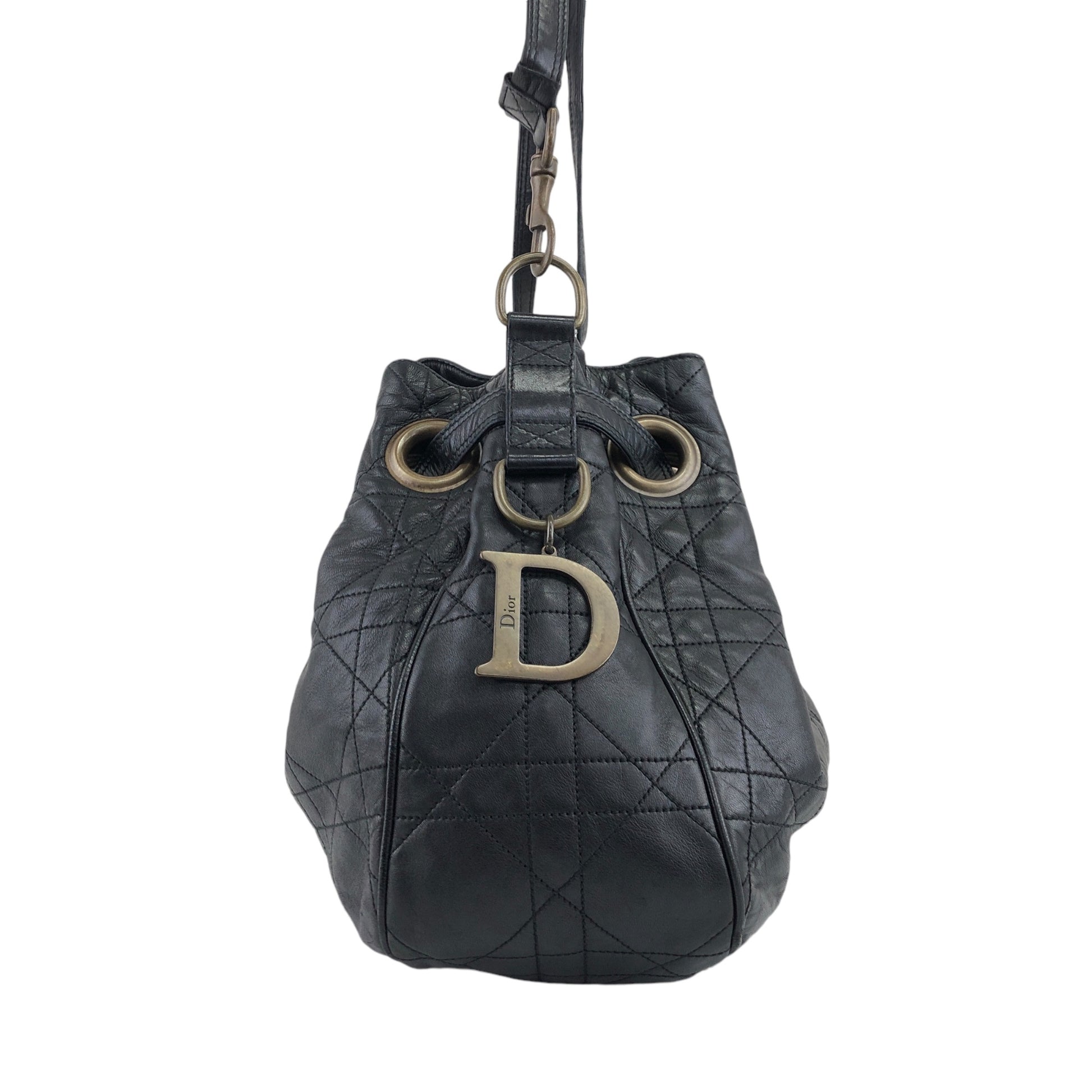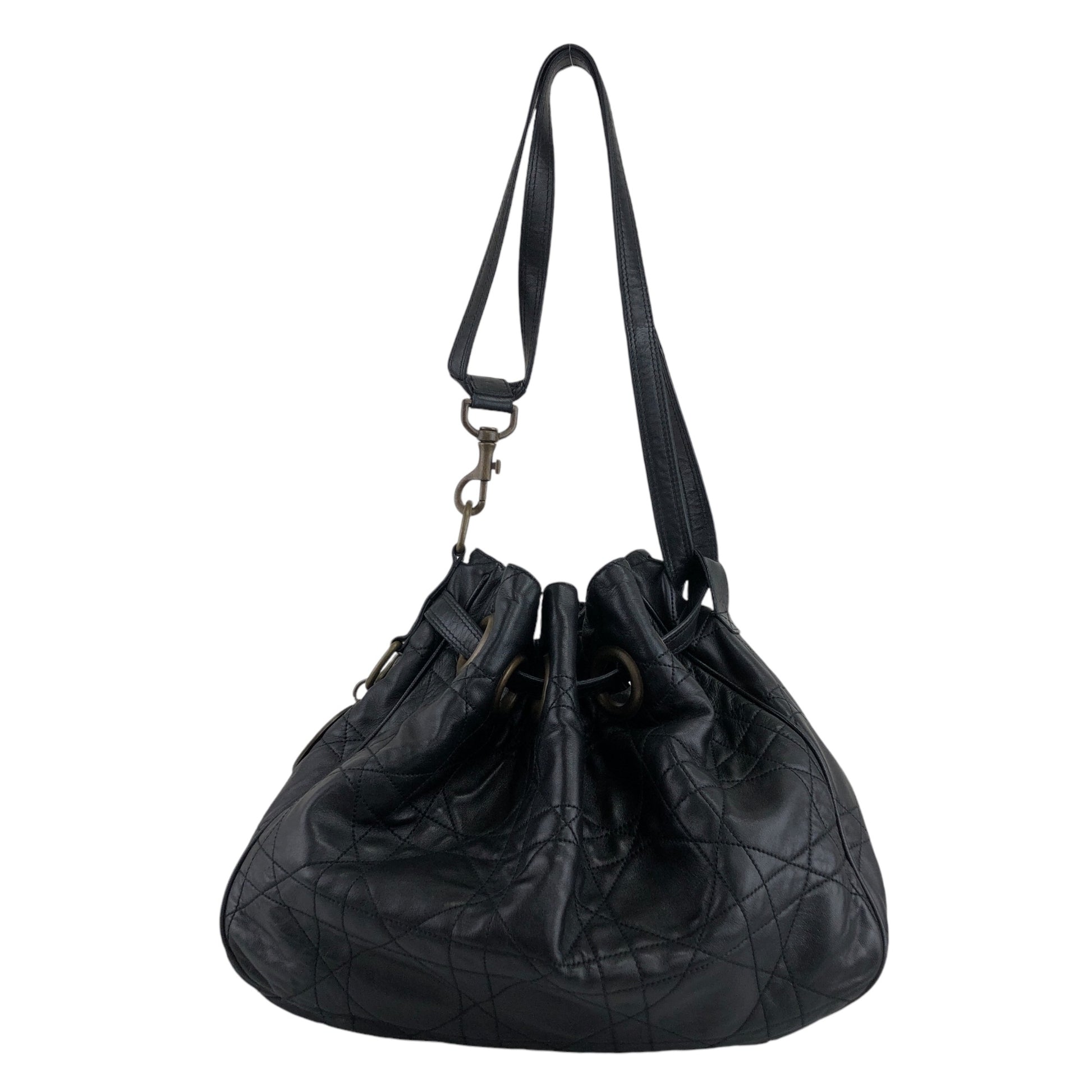 Christian Dior Cannage Logo Motif Drawstring Shoulder bag Black Vintage ryhx6x