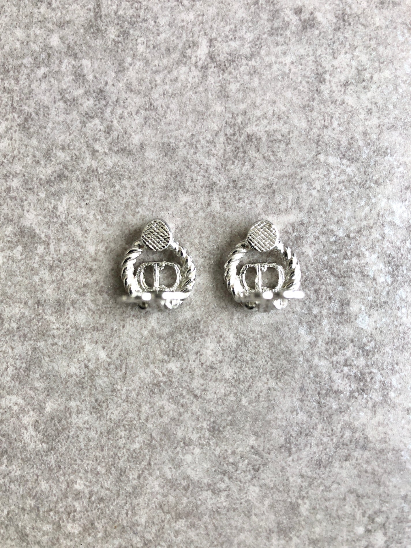 Christian Dior CD Logo Earrings Silver Vintage rfti6g