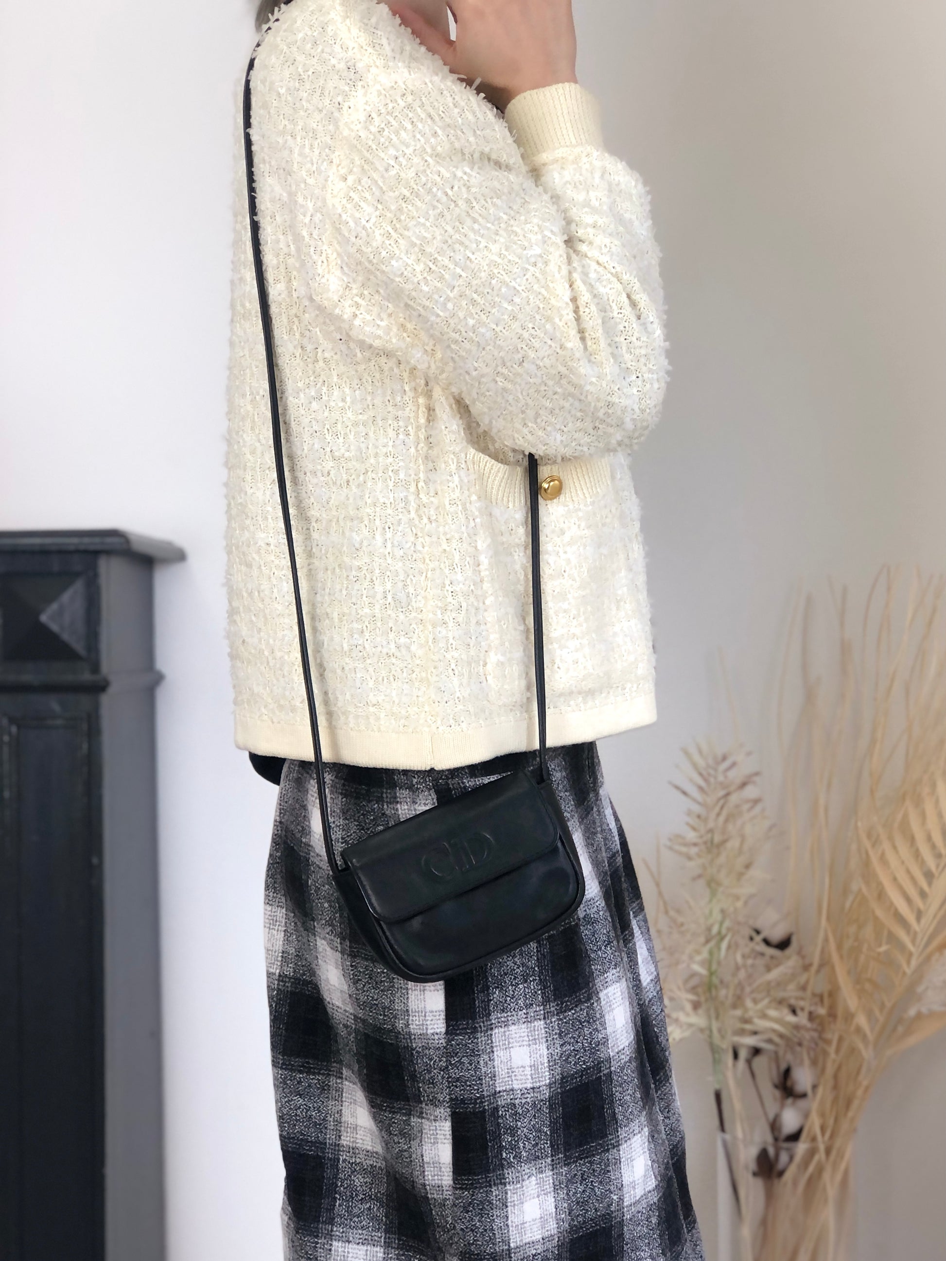 Christian Dior CD Logo Embossed Small Shoulder bag Black Vintage ee2nsk