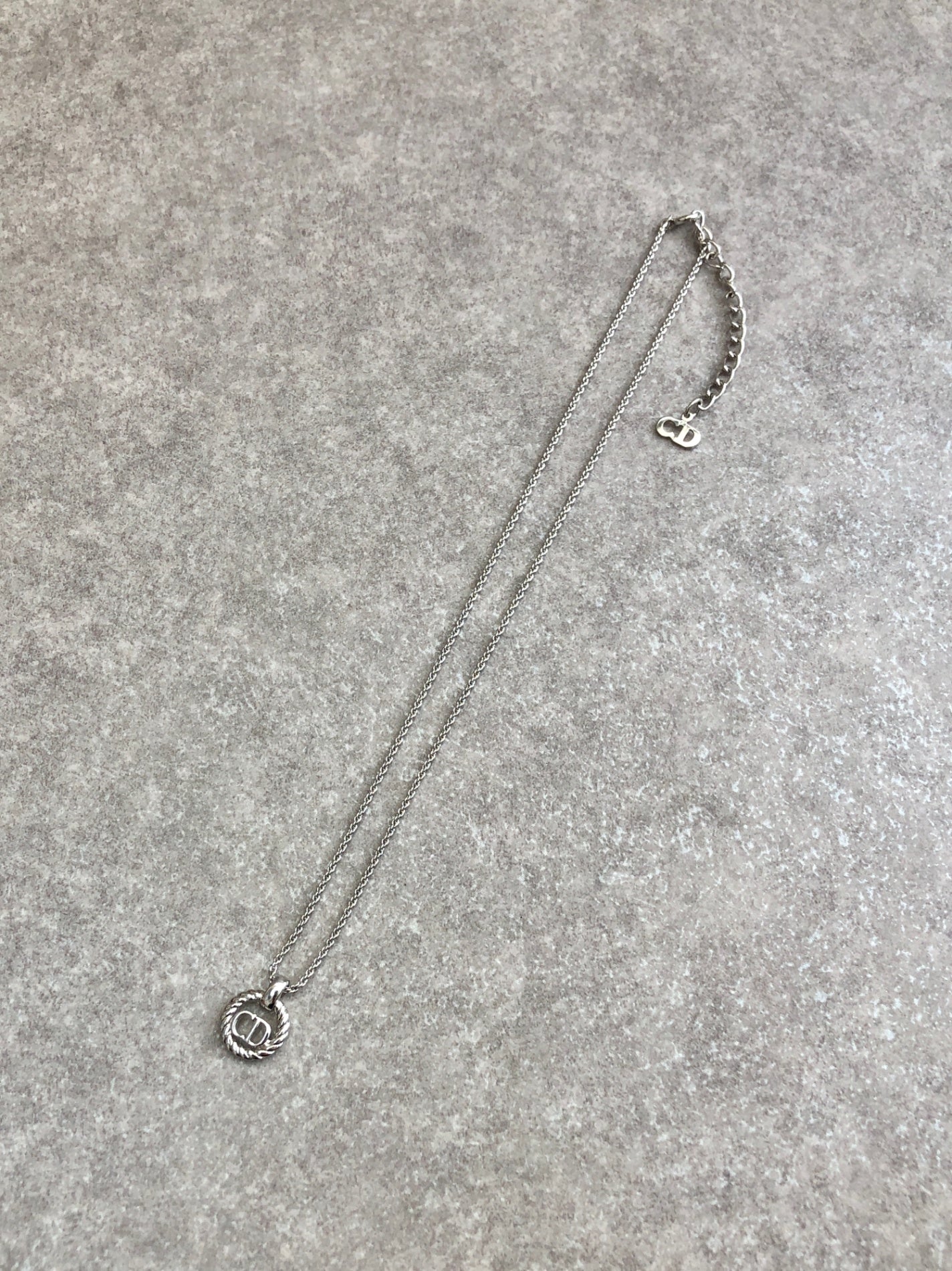 Christian Dior CD Logo Necklace Silver Vintage pshihx