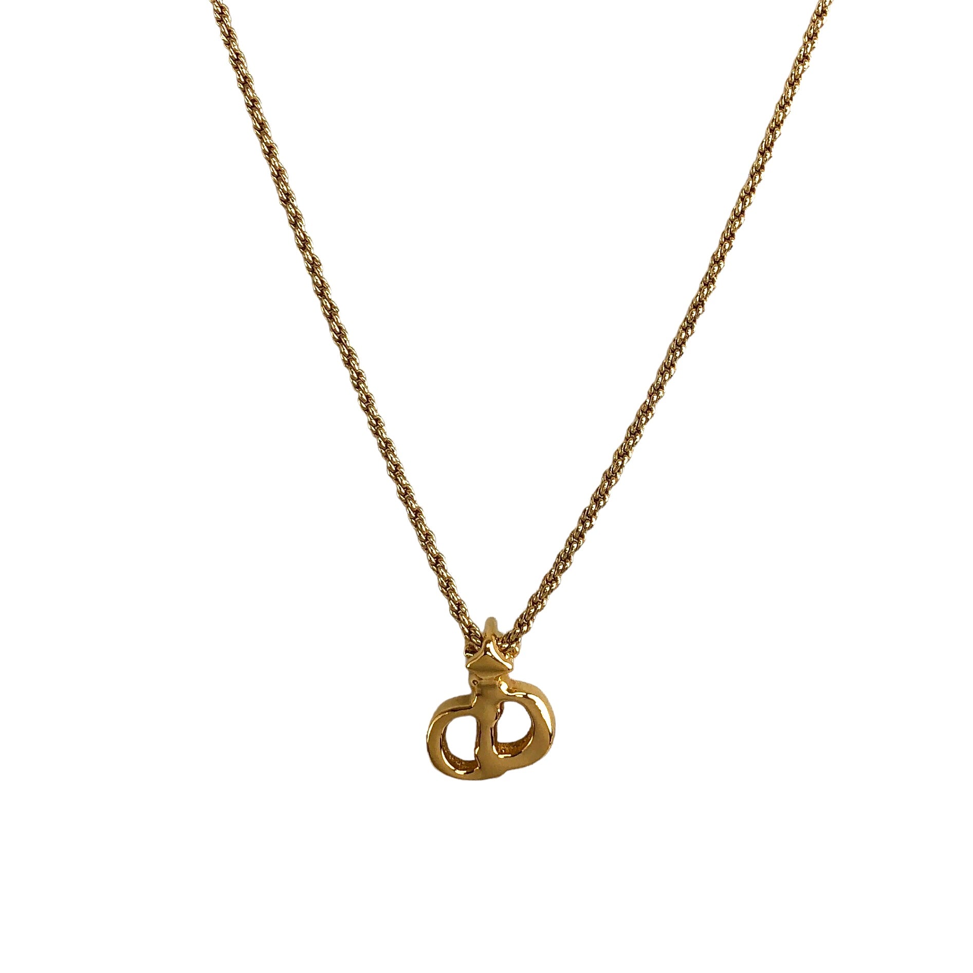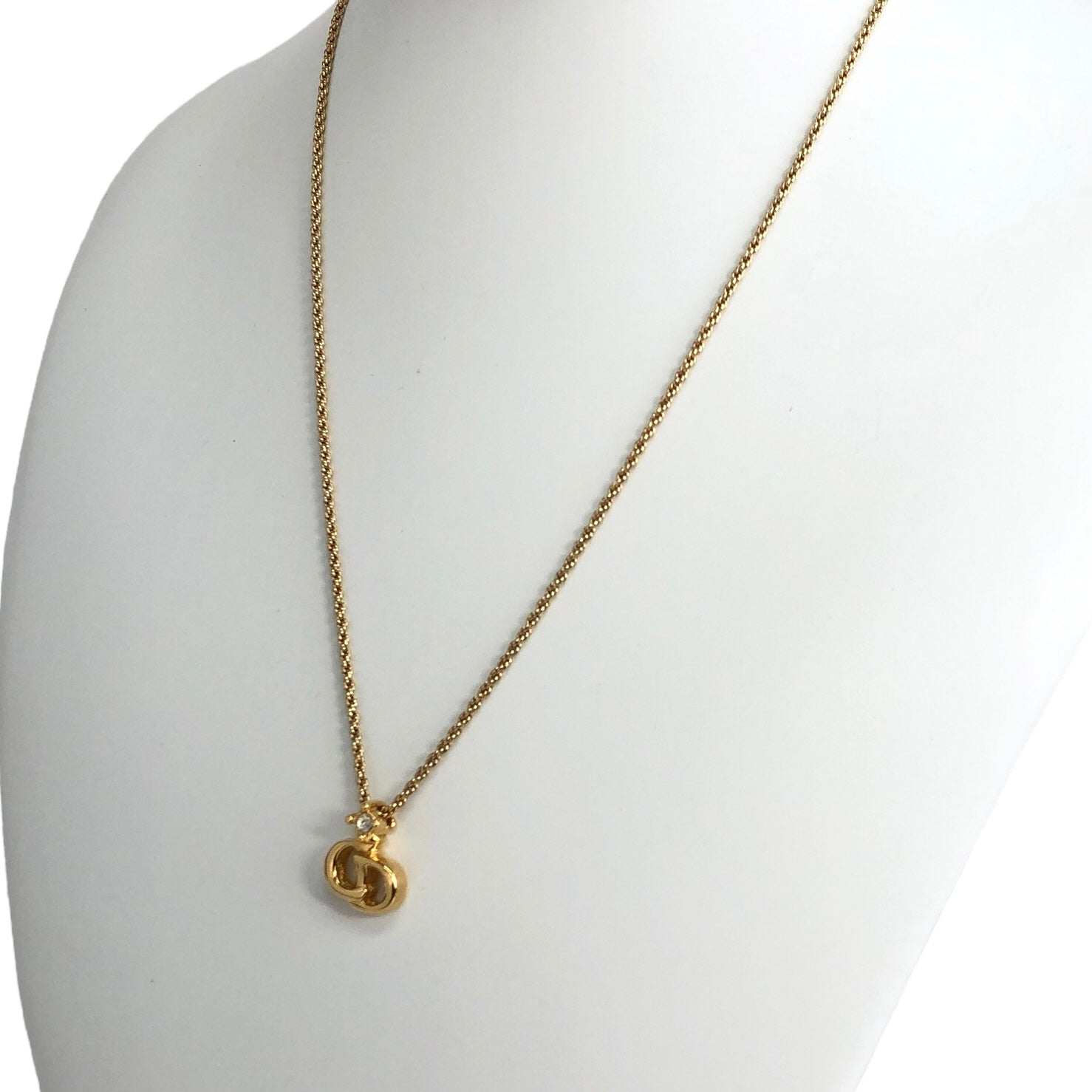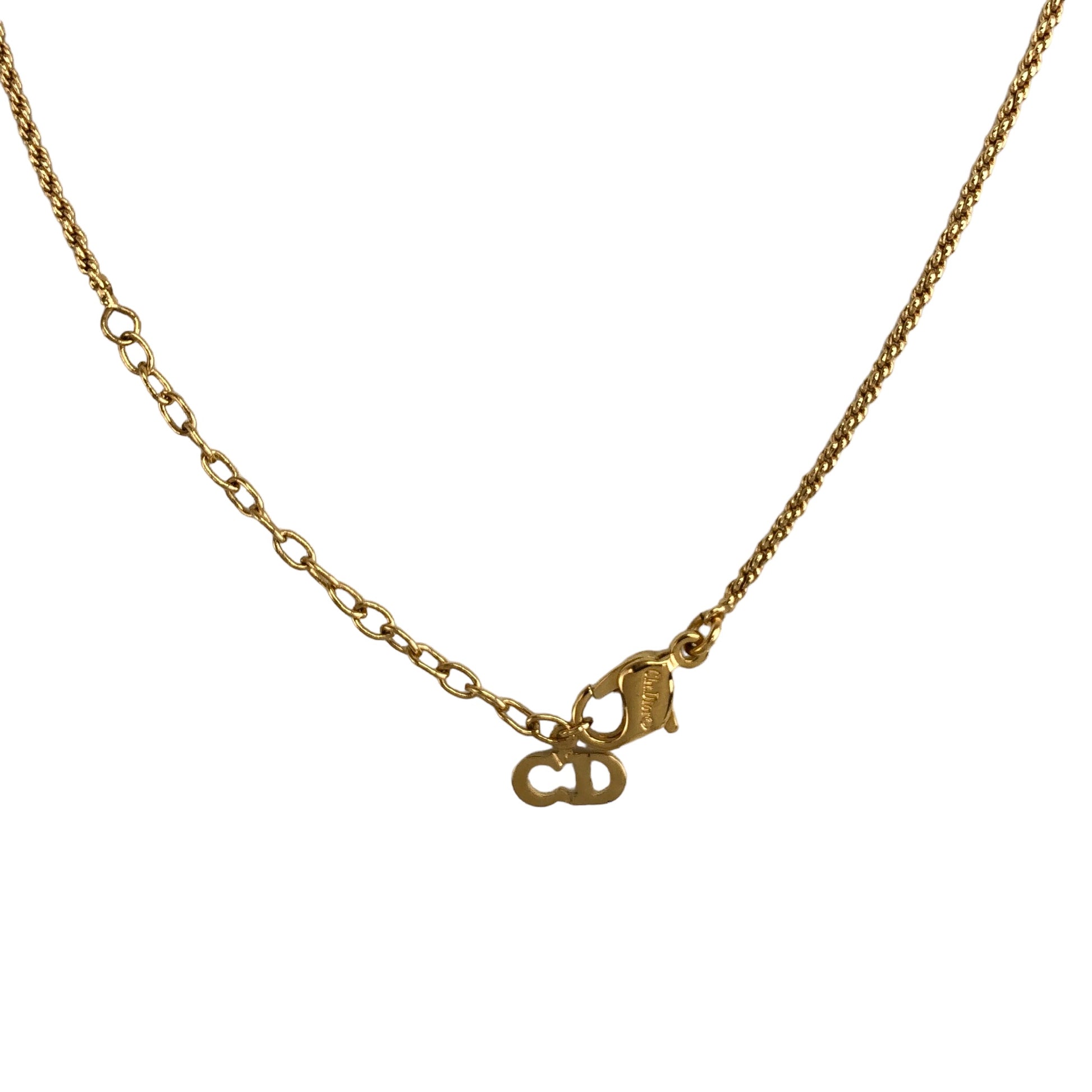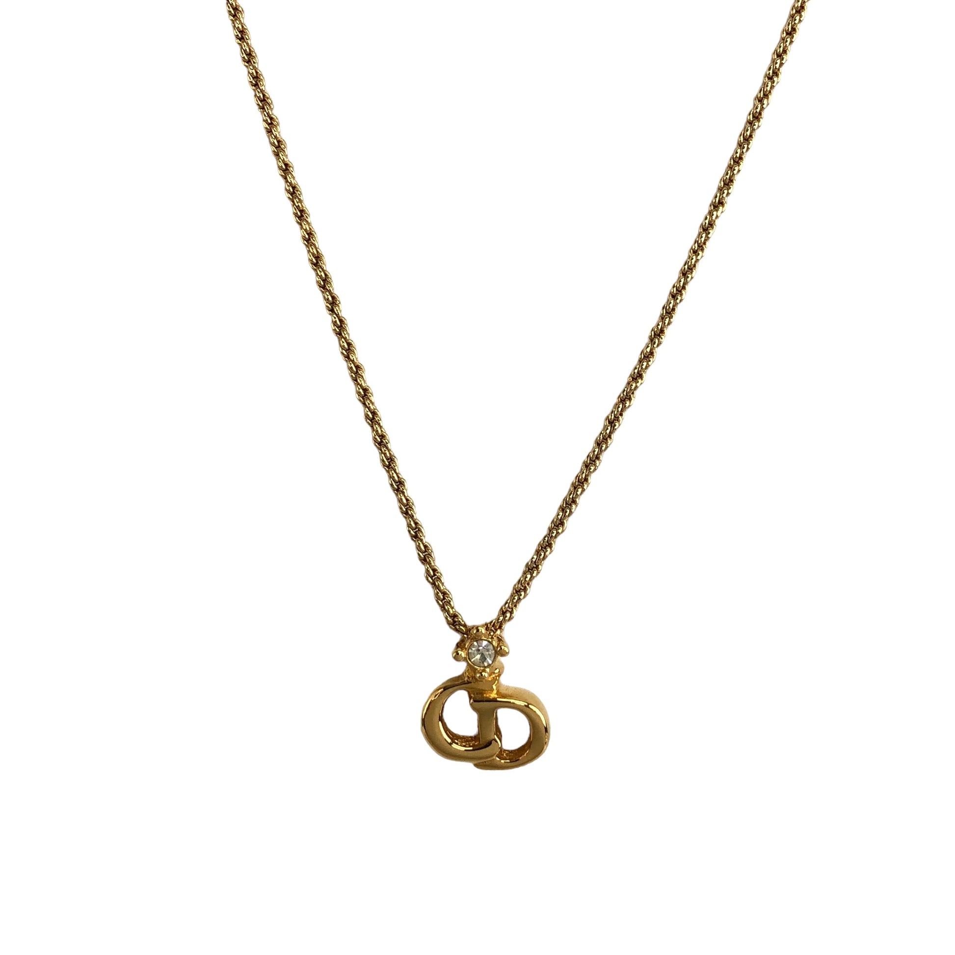 Christian Dior CD Logo Stone Necklace Gold Vintage snnhc8