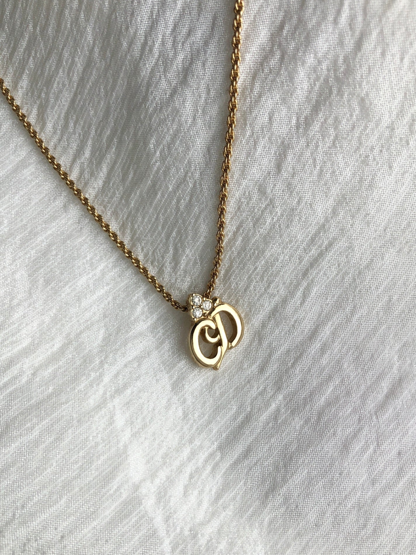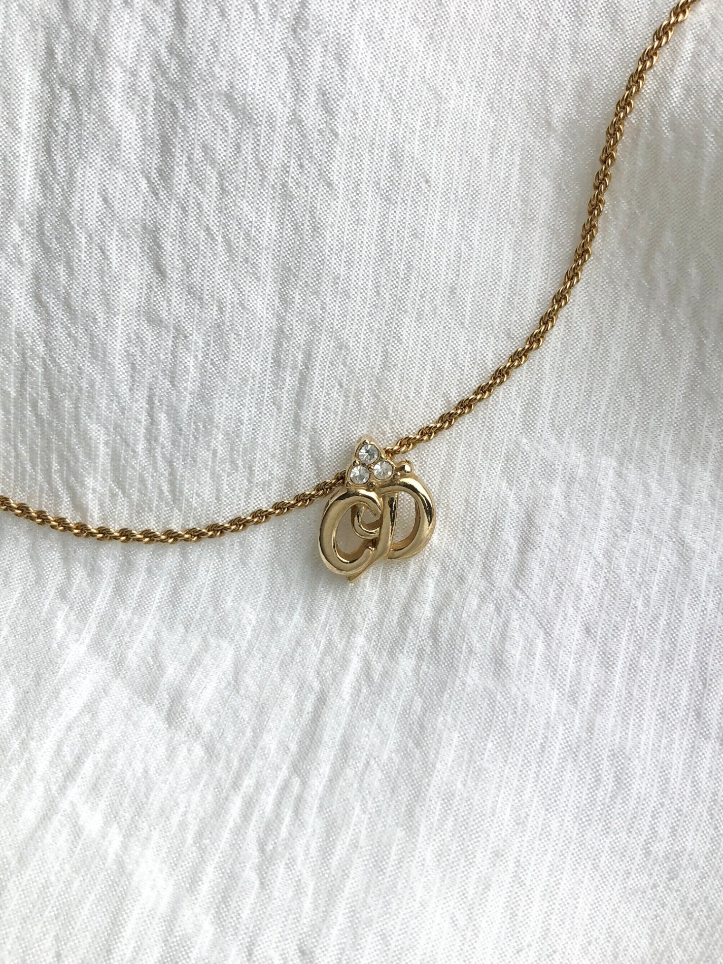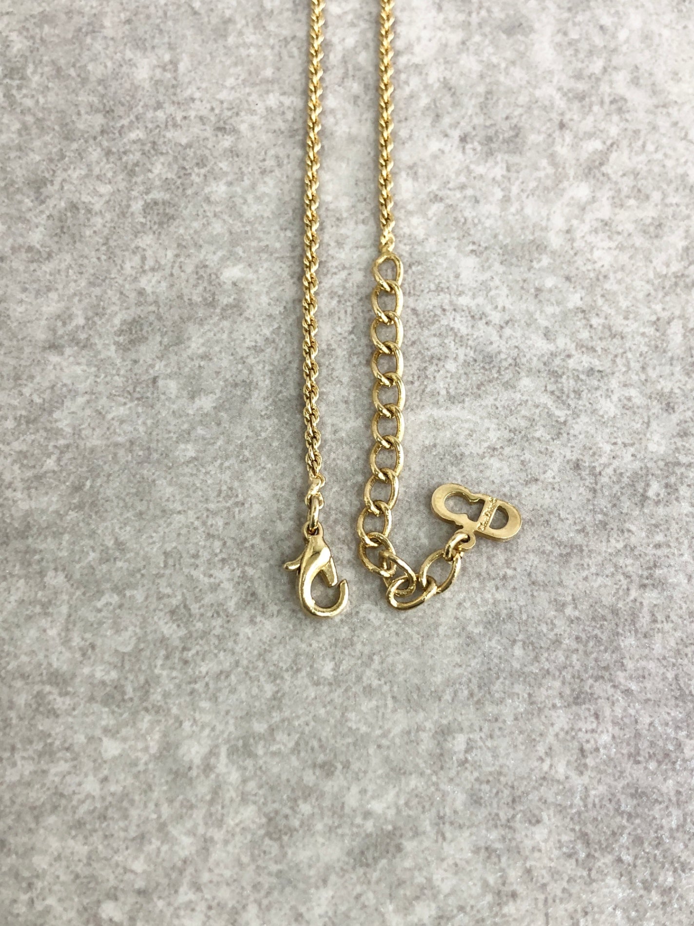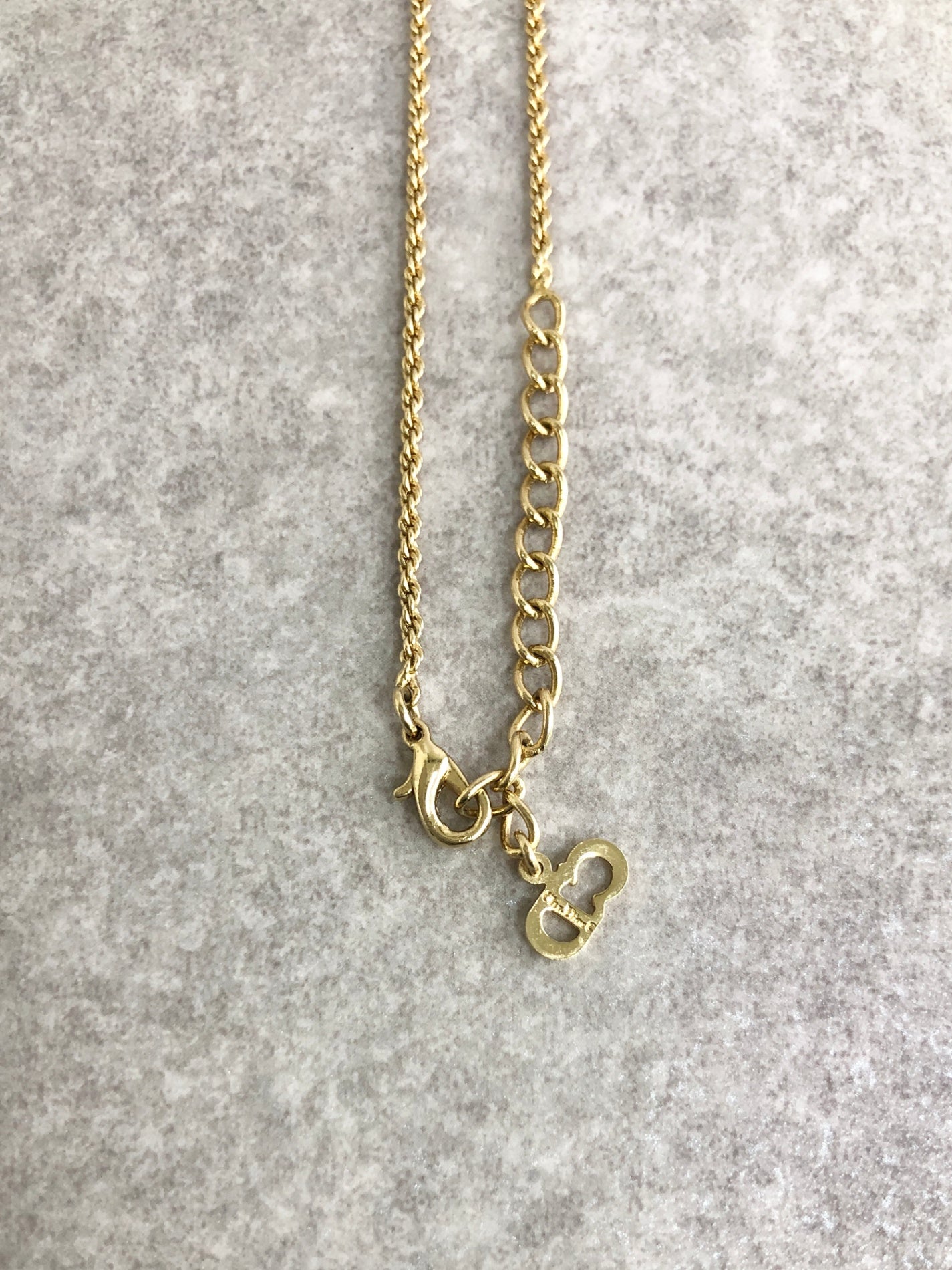 Christian Dior CD Logo Stone Necklace Gold Vintage y4muz6
