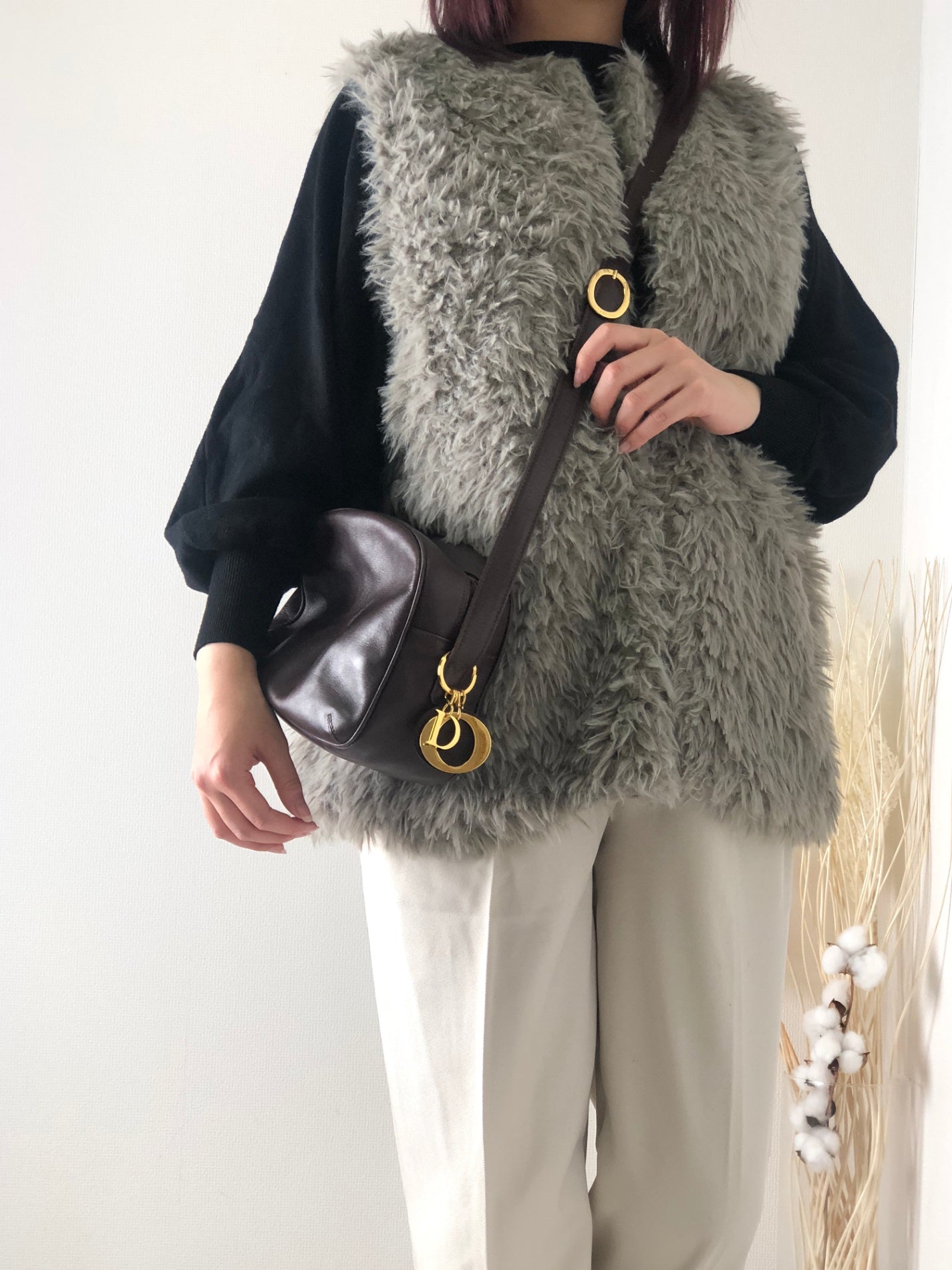 Christian Dior Dior Charm Leather Shoulder bag Brown Vintage nwbp3g