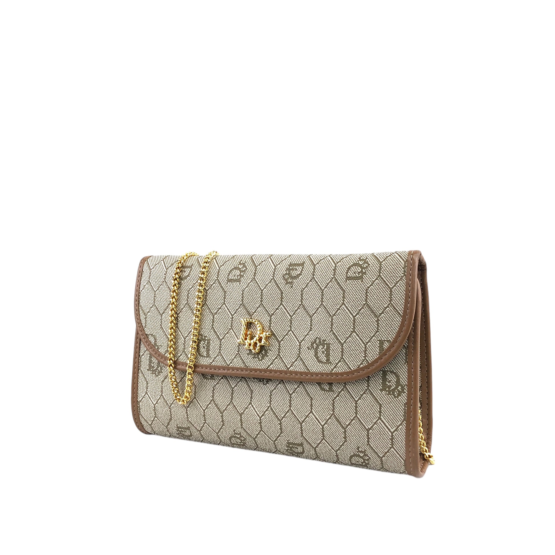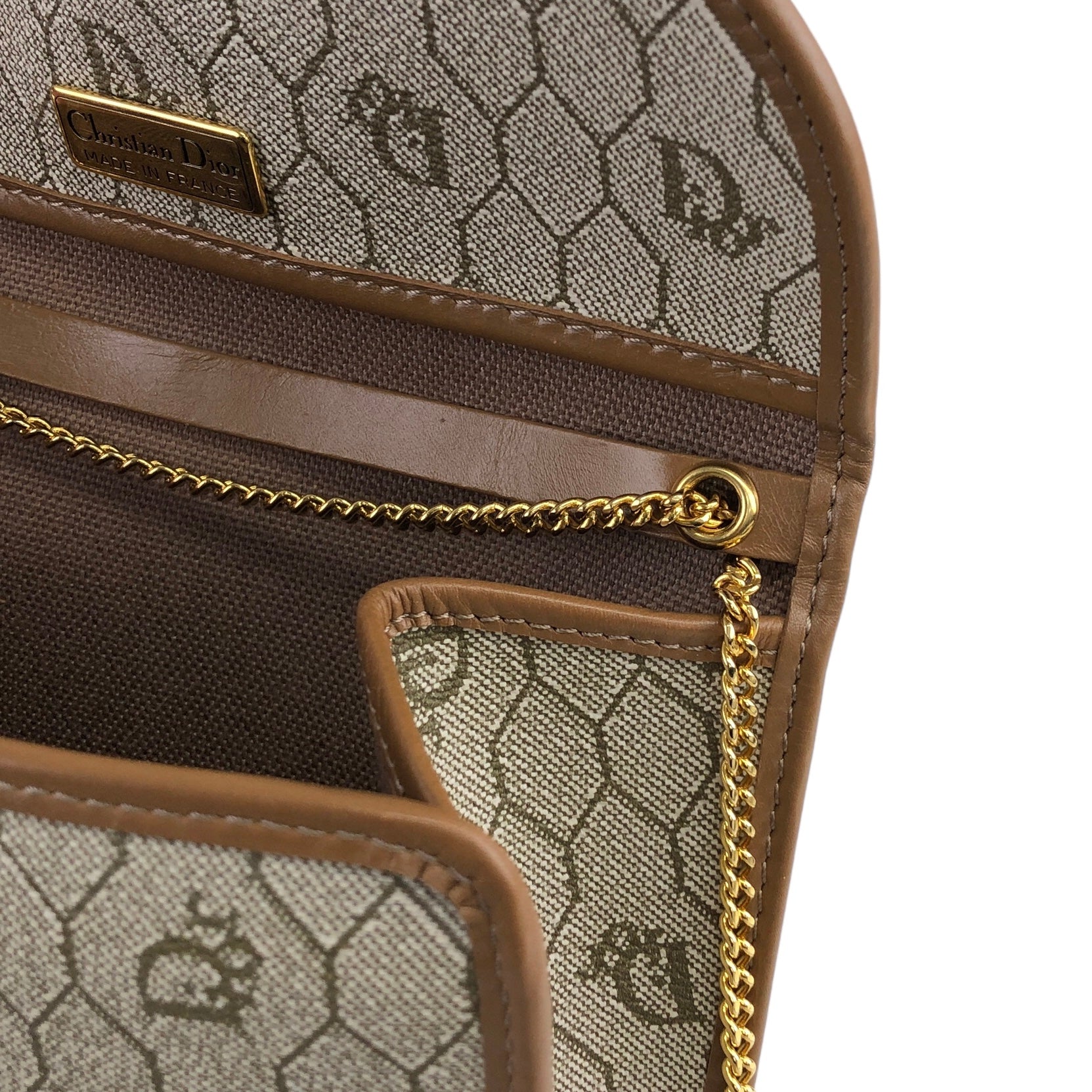 Christian Dior Honeycomb Pattern PVC Leather Chain Shoulder bag Beige Vintage kcpzag