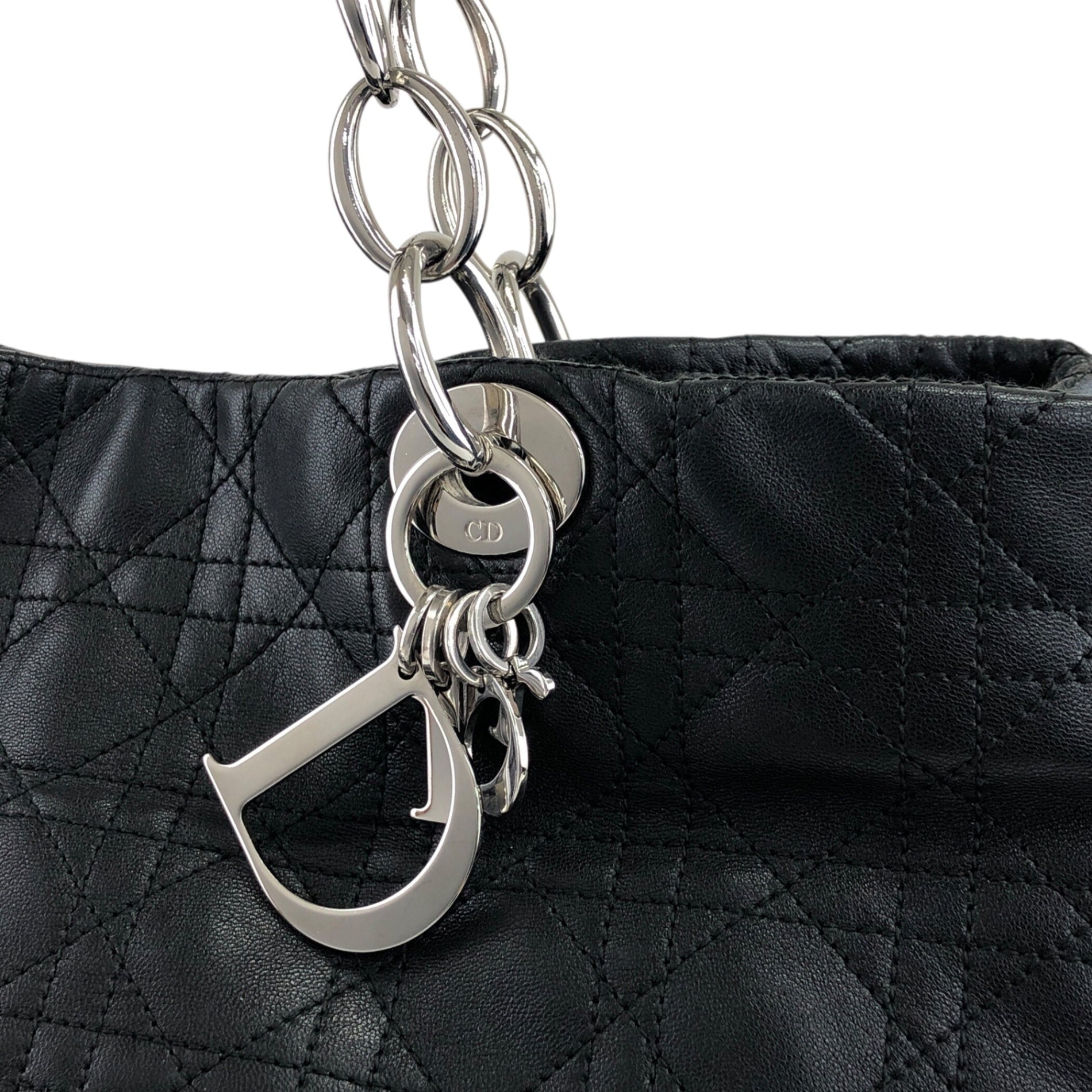 Christian Dior Lady Dior Cannage Charm Totebag Black Vintage niu5pt