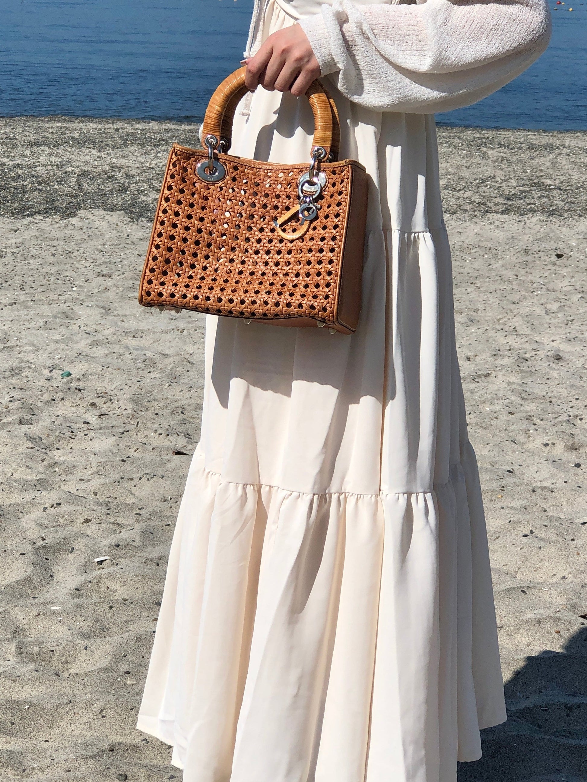 Christian Dior Lady Dior Cannage Rattan Mesh Handbag Brown Vintage 7p4yf7
