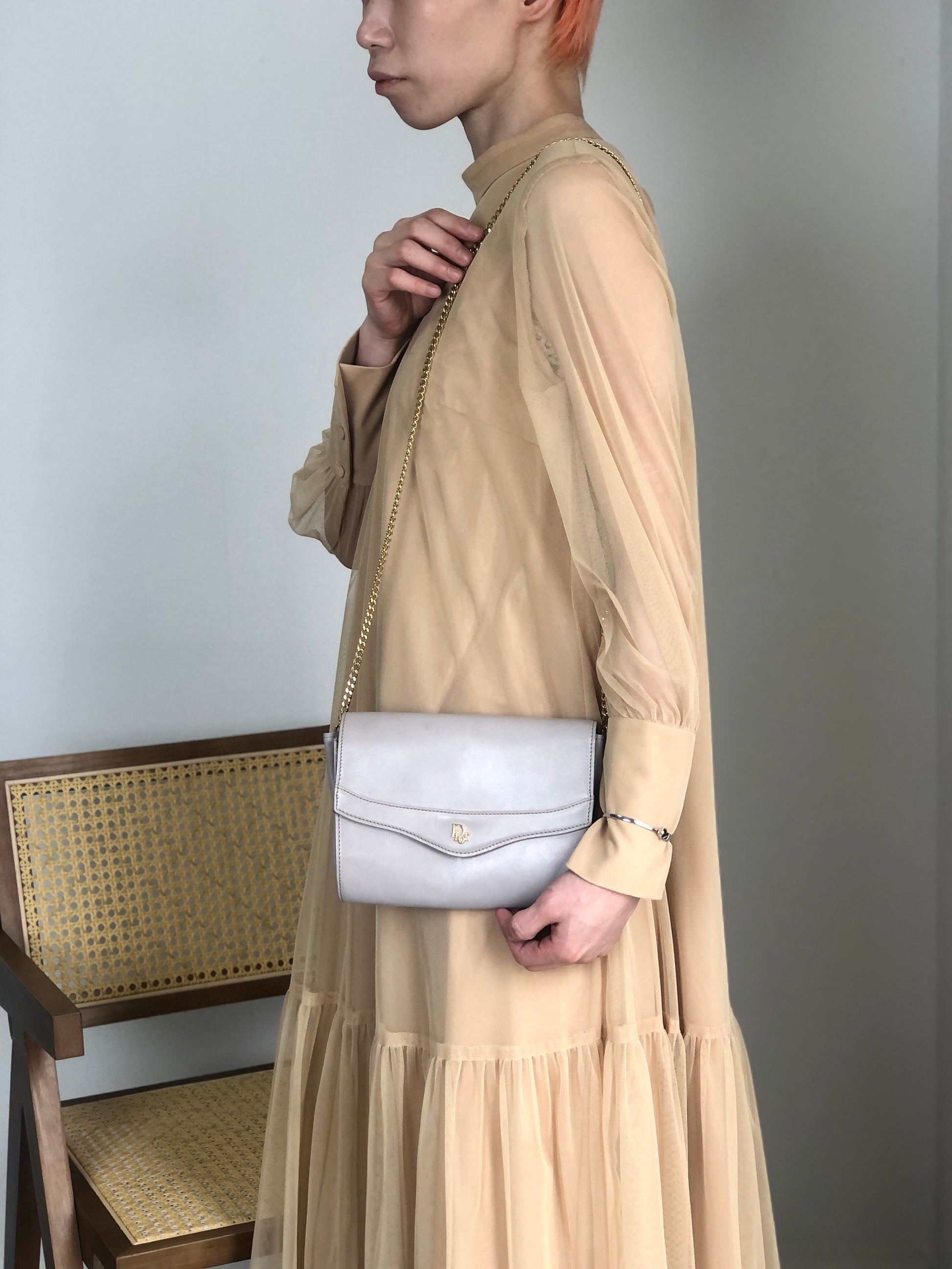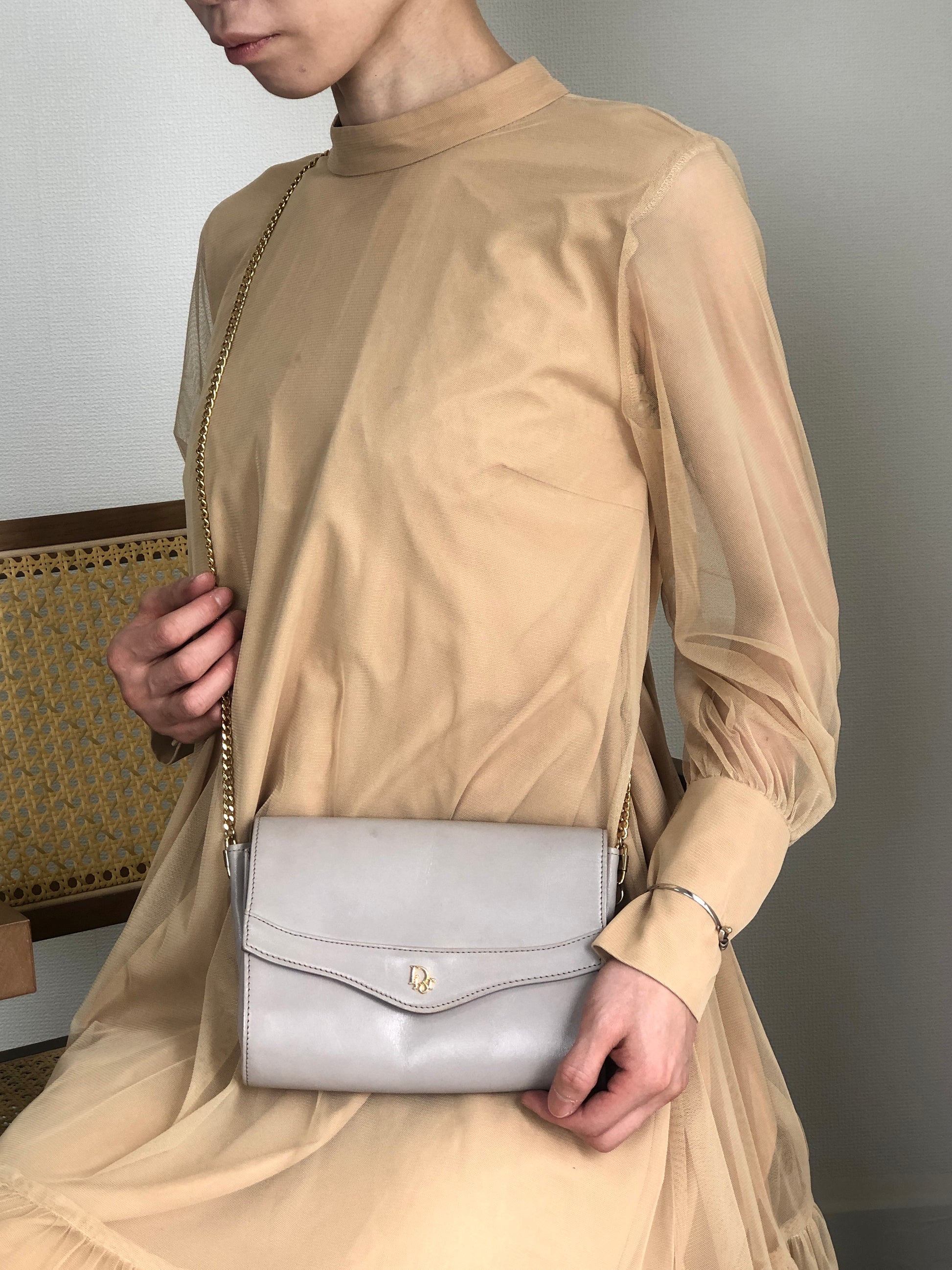 Christian Dior Logo Chain Shoulder bag Gray Vintage kynndd