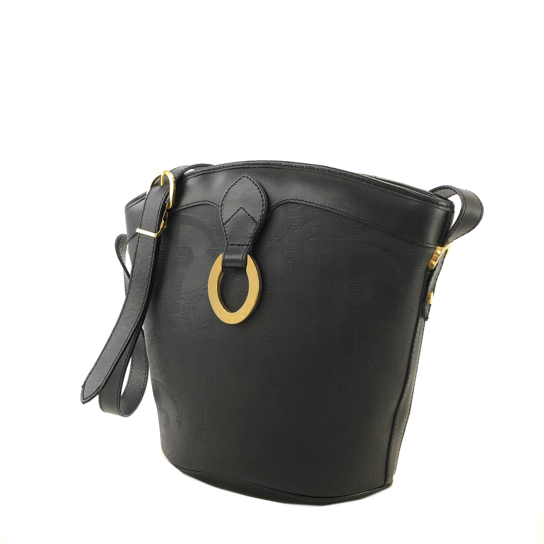 Christian Dior Logo Pattern Bucket Shoulder bag Black Vintage Old y42cbj